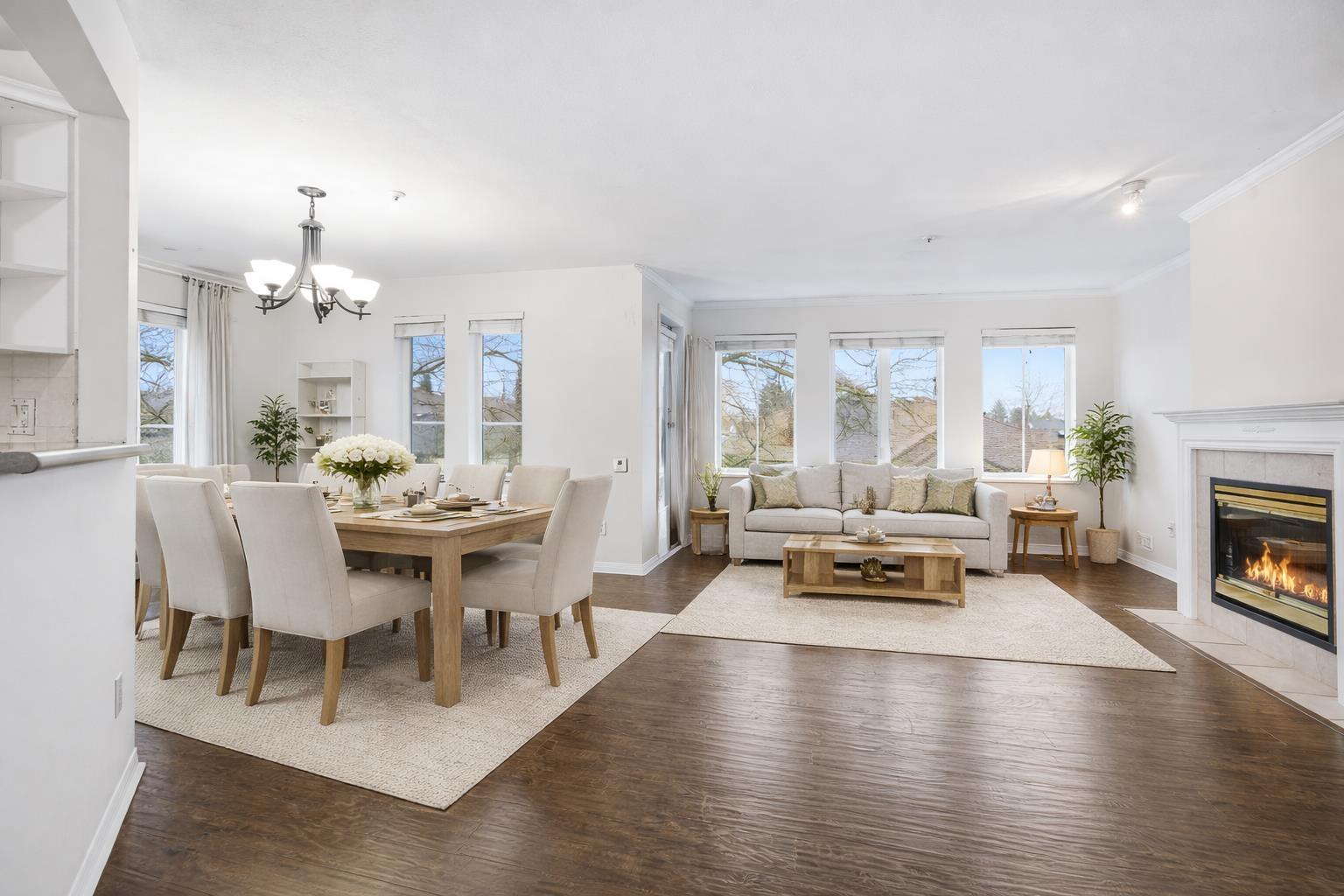 | Corner unit condo for sale in West Newton, Surrey - 2 bed, 2 bath, 1,476 sq ft at Strawberry Hill Estates. This east-facing unit offers radiant in-floor heating, an open living and dining layout, and two private decks ideal for entertaining. The primary bedroom includes a walk-through closet and full ensuite with deck access. Additional features include in-suite laundry, 2 secure underground parking stalls, and a dedicated storage locker. Gas is included in the strata fees - a real value-add. The well-managed 104-unit building is run by First Service Residential. Located steps from Strawberry Hill Shopping Centre, restaurants, transit, parks, and schools in the heart of West Newton. Pets and rentals allowed with restrictions. A rare oversized corner unit combining space, comfort, and an unbeatable location. Buy this home and enjoy 1-Year Buyer Satisfaction Guarantee! (id:5347) | |||
