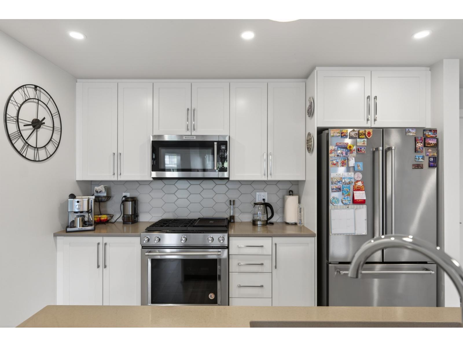 | Welcome to Mill District! This 2-bedroom, 2-bathroom home offers a bright and spacious layout with 9-foot ceilings and thoughtful upgrades throughout. The modern kitchen features granite countertops, full-size appliances, a gas cooktop, and a generous pantry. Comfort is ensured year-round with air conditioning and updated laminate flooring. Both bedrooms have walk-in closets and their own ensuite bathrooms. Enjoy outdoor living on the 113 sq ft patio, complete with a gas hookup for your BBQ with gas included in strata. The home also comes with two parking stalls and one underground storage locker. Located just steps from Mill Lake Park, and close to excellent shopping and dining, this home offers the perfect blend of comfort, convenience, and lifestyle. (id:5347) | |||