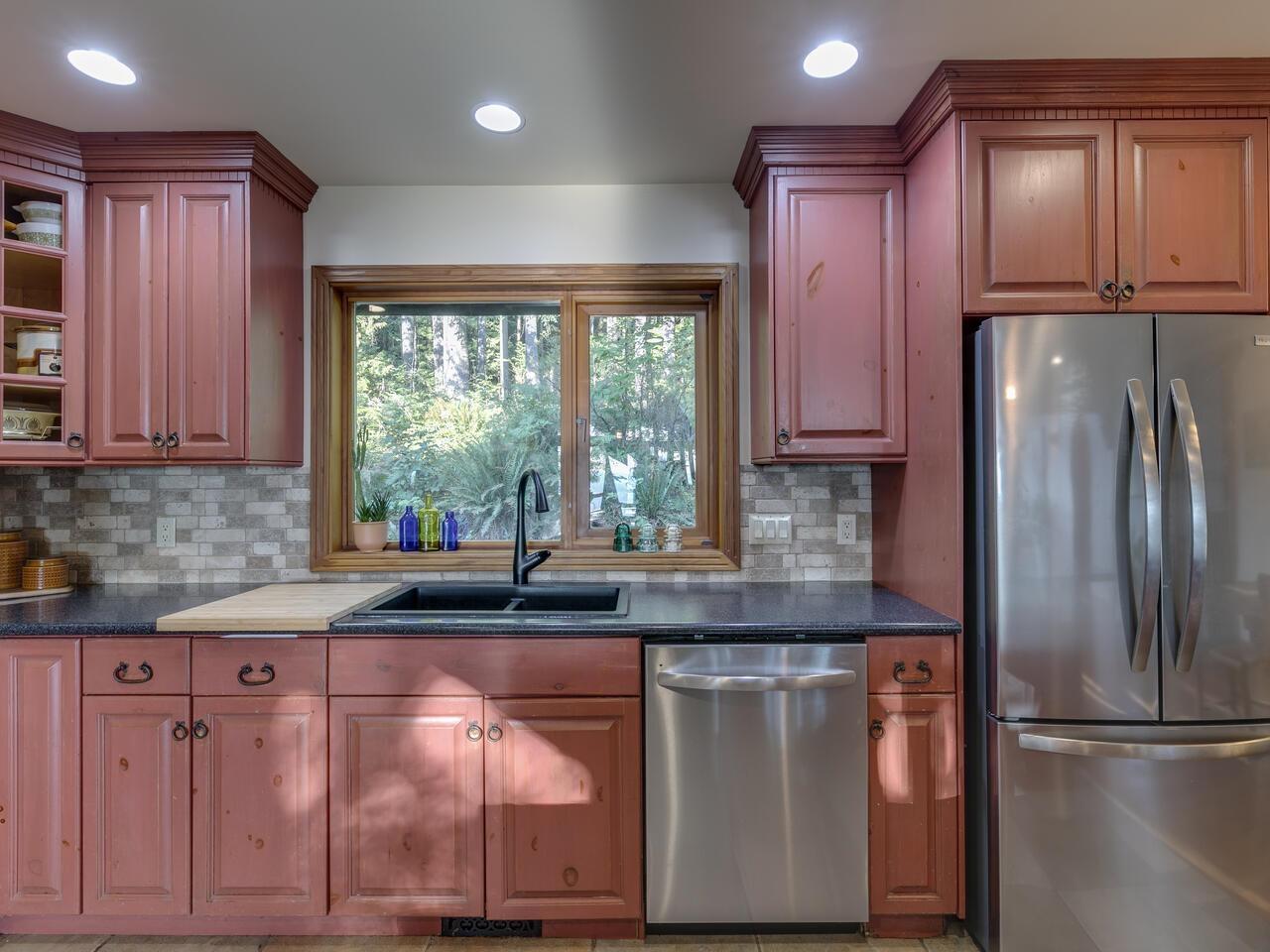 | Private acreage with VIEWS! This 4-bedroom, 2.5-bathroom home offers a perfect blend of rustic charm and modern comfort, featuring a dramatic A-frame design and floor-to-ceiling windows that fill the living spaces with natural light and frame serene forest views. Warm wood ceilings, exposed beams and hardwood floors create an inviting atmosphere, complemented by both a grand great room and a cozy family room with a wood stove. The kitchen blends farmhouse character with modern updates, featuring custom cabinetry, stone backsplash and S/S appliances, while the bathrooms showcase timeless tile and stylish finishes. Outside, a large wrap-around deck is ideal for peaceful mornings or sunsets, and the property includes a 25x39 shop, adding incredible functionality to this stunning retreat! (id:5347) | |||