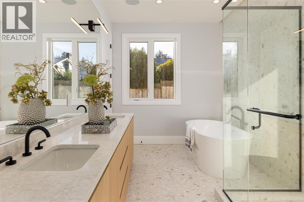 | Tucked along a quiet street in prestigious Pebble Hill, this brand-new contemporary residence offers beautiful mountain and water views and over 5,100 sq.ft. of refined living on a 7,218 sq.ft. lot. A grand foyer with soaring ceilings opens to bright, open living spaces filled with natural light and hardwood floors throughout. The gourmet kitchen features premium appliances, custom cabinetry, a large stone island, and separate wok kitchen. Offering 7 bedrooms and an open den, including a serene primary suite with spa-inspired ensuite. Legal 2-bedroom suite with private entrance adds flexibility for extended family or mortgage helper. Radiant in-floor heating, A/C, HRV and media room. Ideally located close to top schools, parks, beaches and everyday amenities. (id:5347) | |||