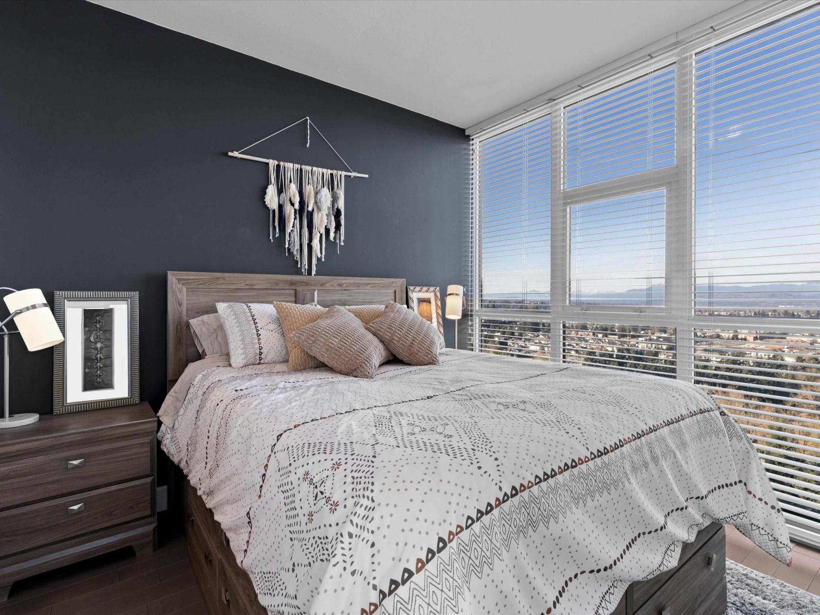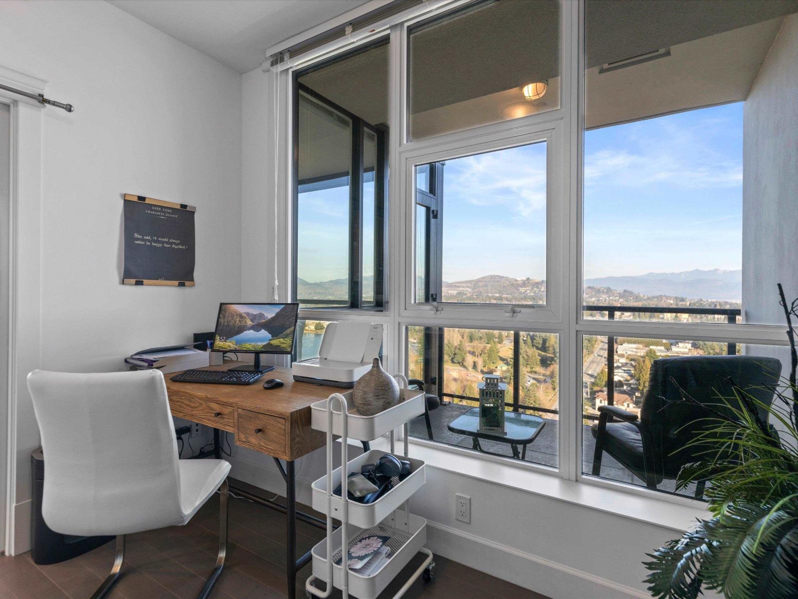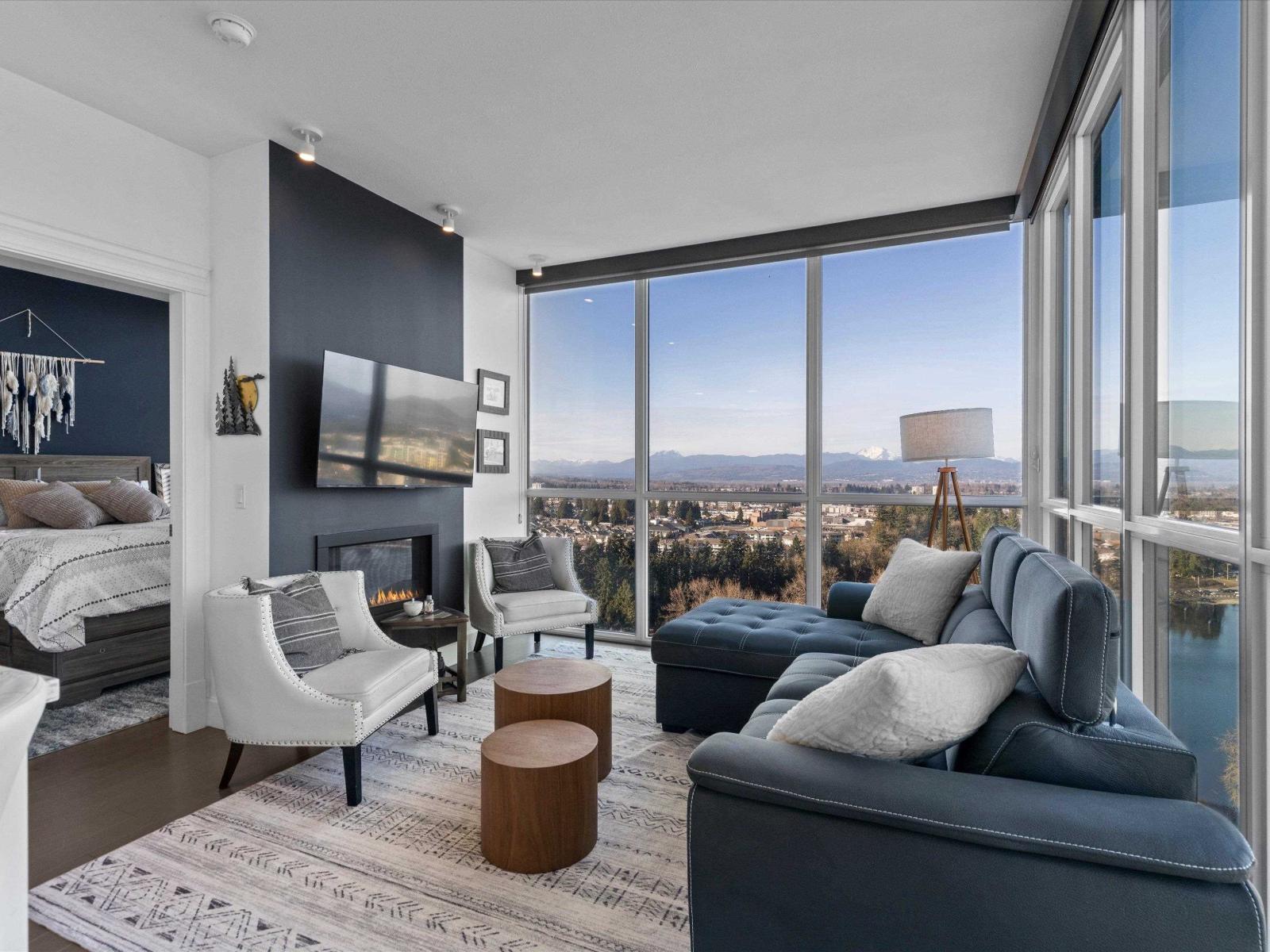 | Perched high on the 23rd floor of The Mahogany, this exceptional 2 bedroom, 2 full bathroom residence offers breathtaking panoramic views rarely found anywhere in the Fraser Valley. From the white snow-capped peak of Mount Baker to the shimmering reflections off Mill Lake and the valley stretching beyond, the scenery is truly remarkable. Step onto your private balcony to take in the ever-changing landscape that is perfect for morning coffee or evening sunsets. Inside features stainless steel appliances and efficient geo heating and cooling for year-round comfort. Enjoy resort-style amenities including an indoor pool, hot tub, fitness centre, resident lounge, 2 guest suites, and secure parking, all steps from Mill Lake Park, the hospital, shopping, restaurants, and quick highway access. (id:5347) | |||