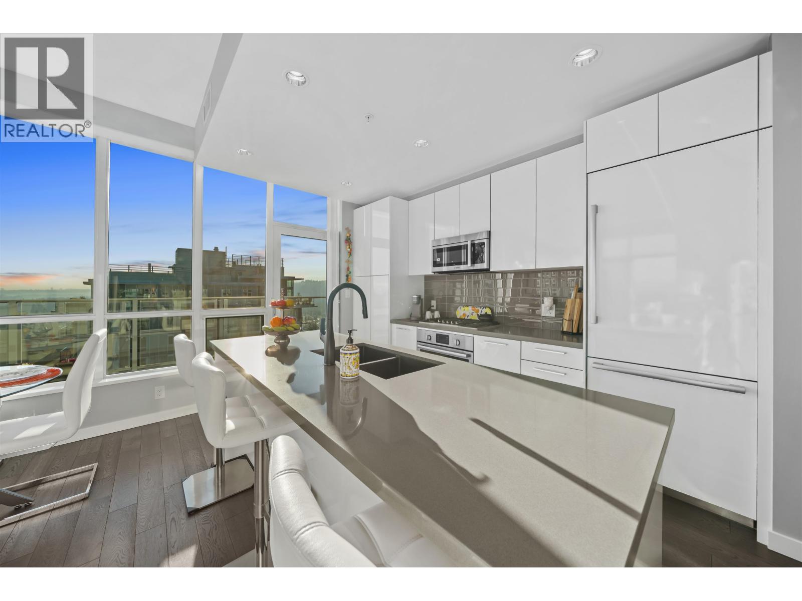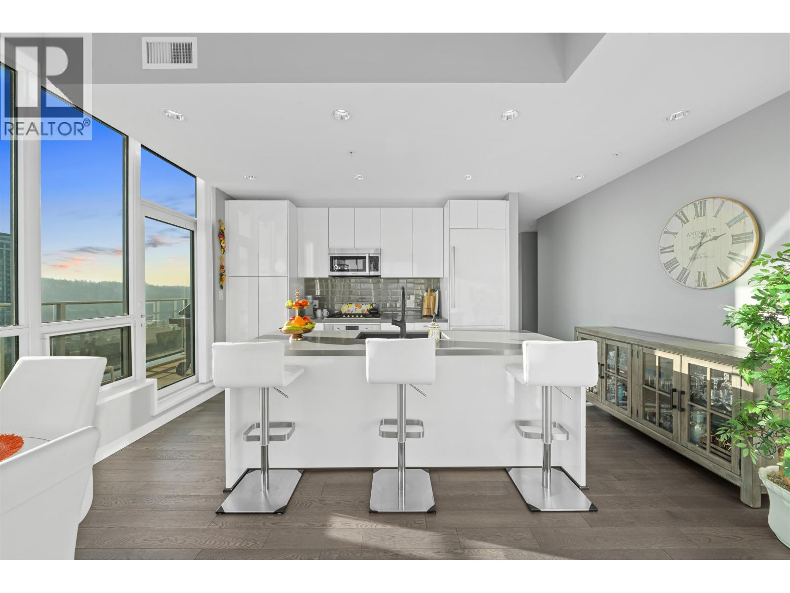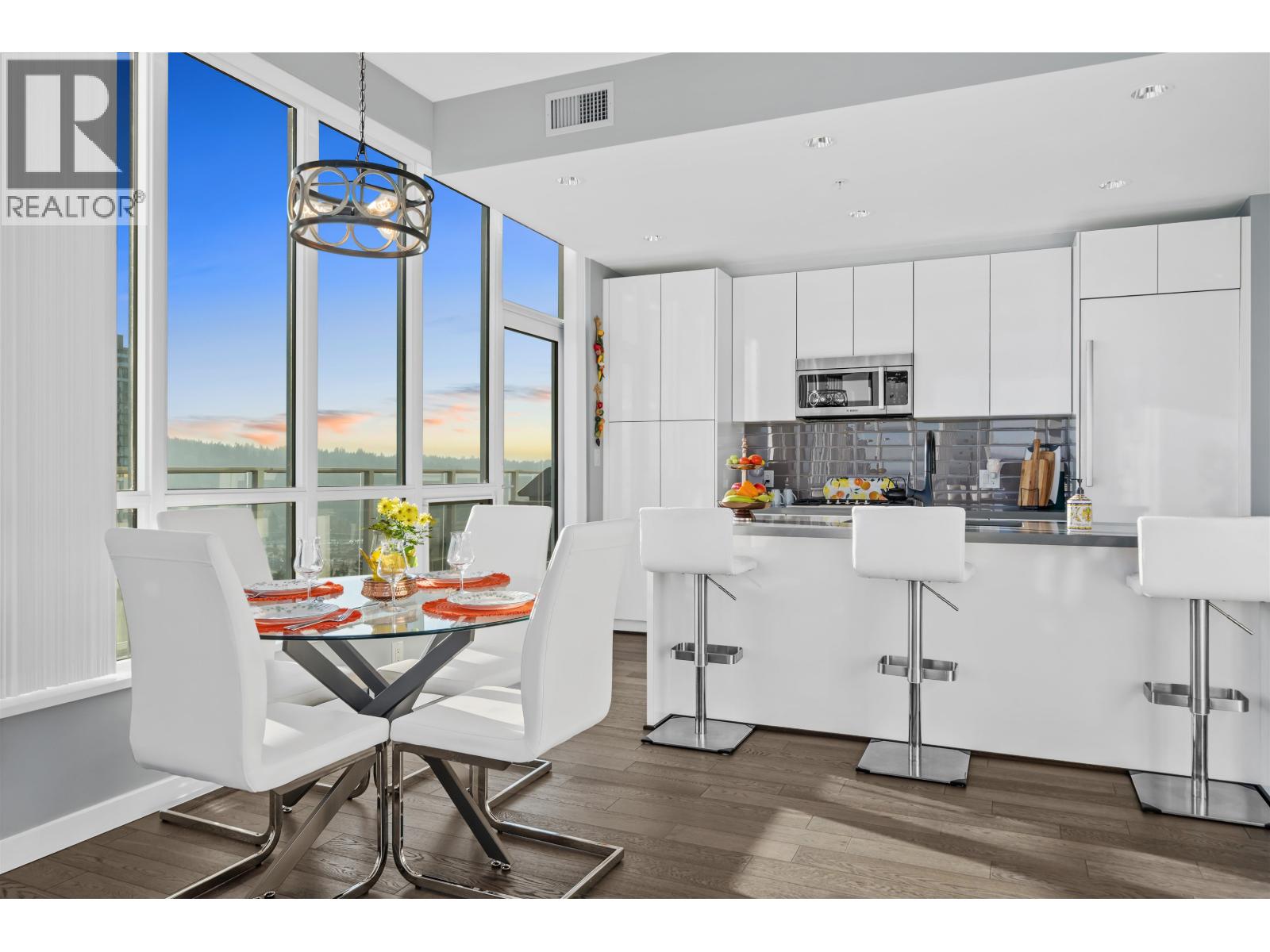 | Exclusive Top-Floor Penthouse with an over 400sq. ft. wrap-around balcony offering south & east exposure & breathtaking sunrise views from the Golden Ears Mt. to Mt. Baker, the Fraser River, Port Mann Bridge, & SFU Burnaby Mt. This residence features, A/C, gourmet kitchen, gas stove & full Bosch appliance package, engineered hardwood flooring, 2 bdrms, 2 bathrooms plus den, separate laundry room, & ample storage. Includes 2 parking stalls & 2 storage lockers. Enjoy access to an exclusive private community recreation centre Nakoma Club, featuring a theatre room, executive meeting rooms, basketball/volleyball court, pool & games room, ping pong tables, swimming pool with Jacuzzi, guest suite, and banquet facilities. Great location walking distance to Skytrain & Lafarge lake. (id:5347) | |||