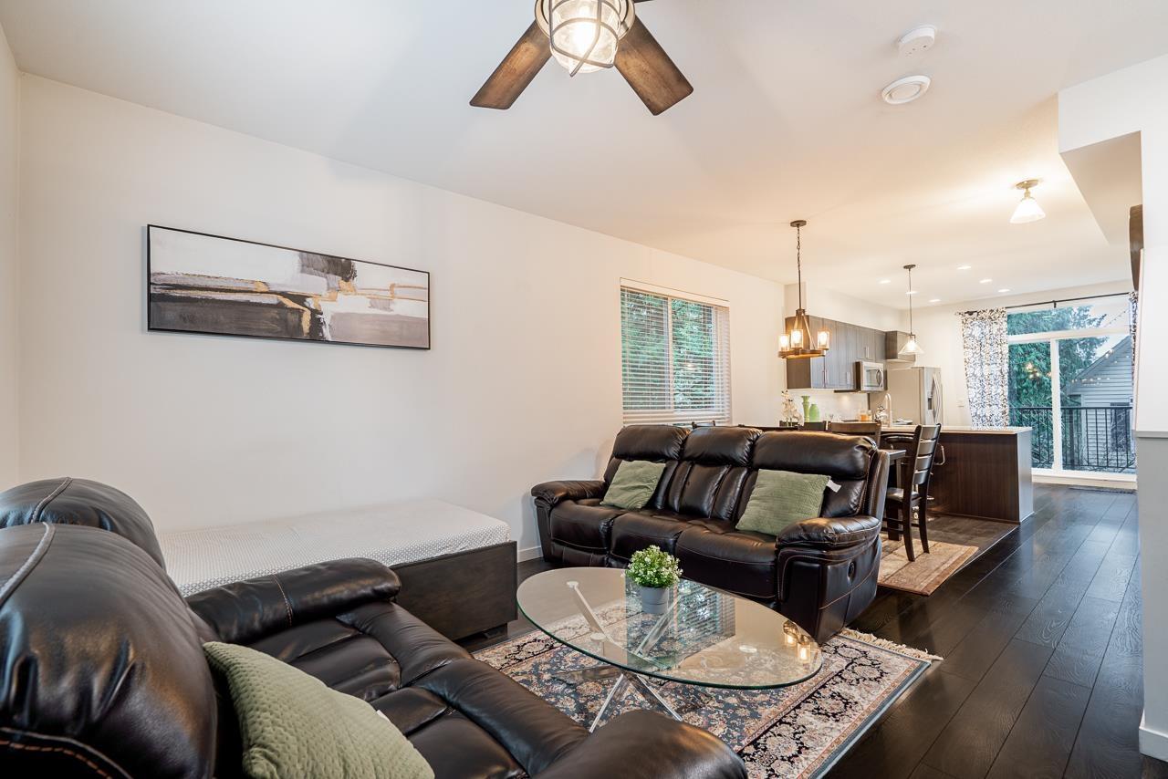 | Rarely available corner end unit offering 2 bedrooms and 2.5 baths, beautifully positioned beside mature trees and a tranquil creek. Sun-soaked deck and private yard-perfect for relaxing or entertaining.The main level features an open-concept layout with laminated hardwood flooring, a bright living and dining area, and a stylish kitchen complete with quartz countertops, stainless steel appliances, and direct access to the yard. Thoughtful upgrades include built-in vacuum, custom dark wood closet shelving.Located in a well-maintained complex with low strata fees, this home is within walking distance to T.E. Scott Elementary and Sullivan Heights Secondary, and offers a central location with easy access to transit and Highway 10. Sync offers abundant visitor parking, playgrounds. (id:5347) | |||