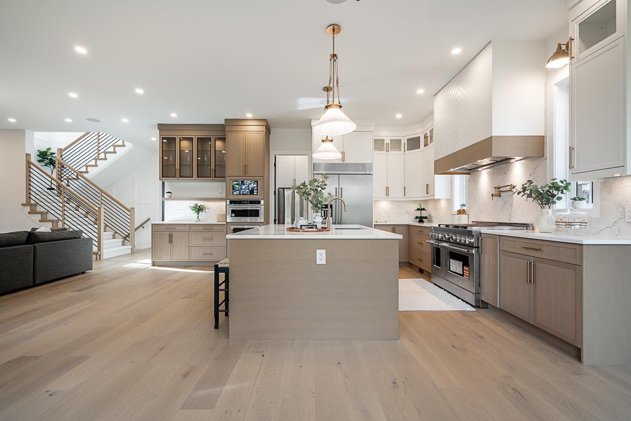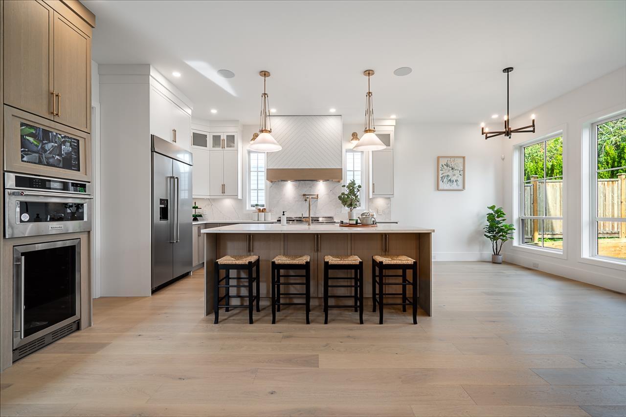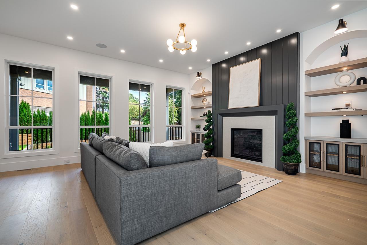 | This breathtaking designer home blends Craftsman architecture with Farmhouse elegance, offering 5,560 sq ft of luxurious living in sought-after West Cloverdale. Bright, airy interiors feature expansive windows with automatic blinds, exquisite millwork, and premium flooring. The showstopping great room centers around a stunning fireplace and a custom two-tone white oak kitchen with top-tier appliances, a spice kitchen, and walk-in pantry. Upstairs boasts 4 vaulted bedrooms including a dreamy primary suite, plus a main-level bedroom. The lower level features a 2-bed legal suite, media room with wet bar, 3-pc bath, storage, and mudroom. Enjoy central A/C, smart home features, and the 2/5/10 New Home Warranty-a perfect blend of sophistication, comfort, and functionality. (id:5347) | |||