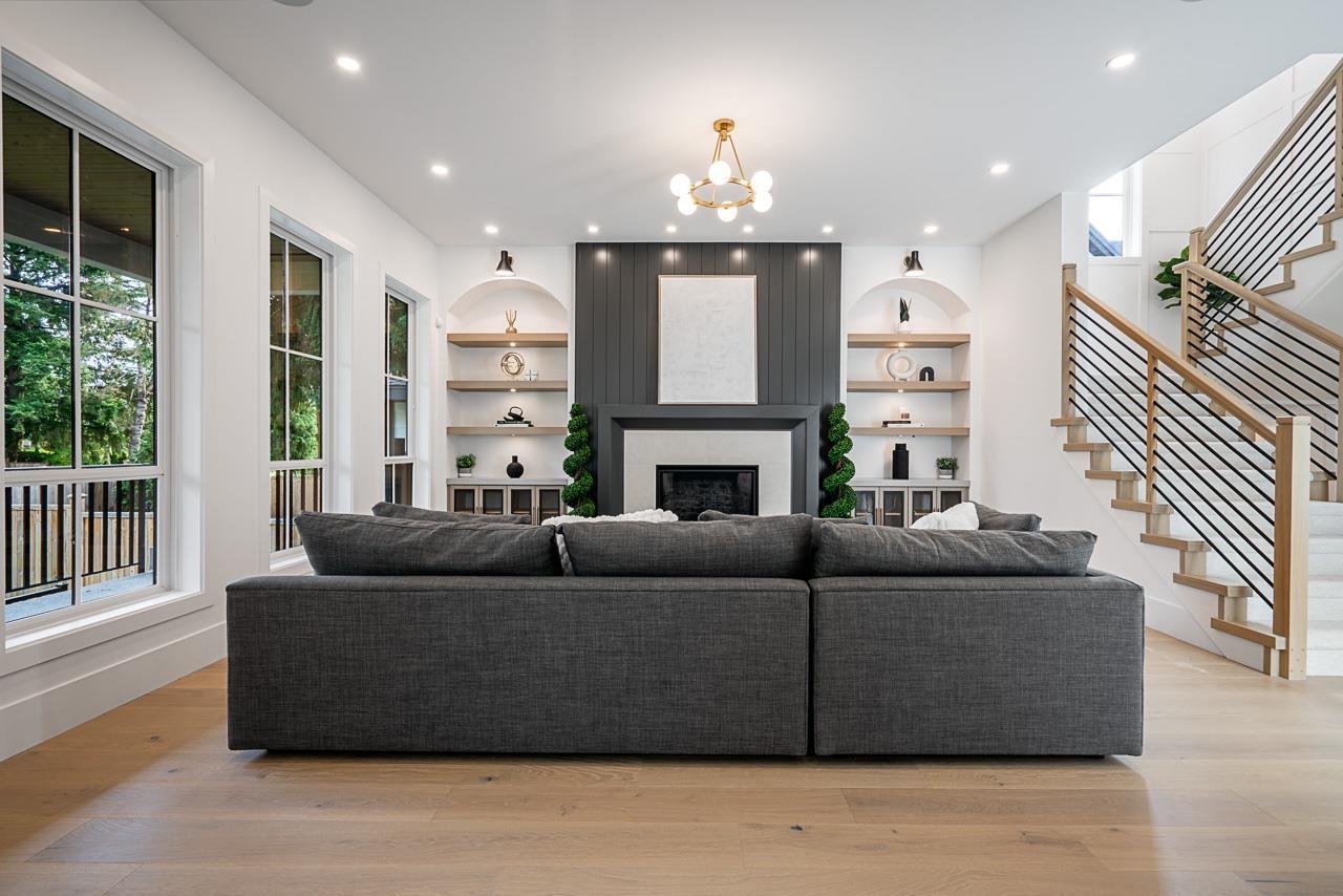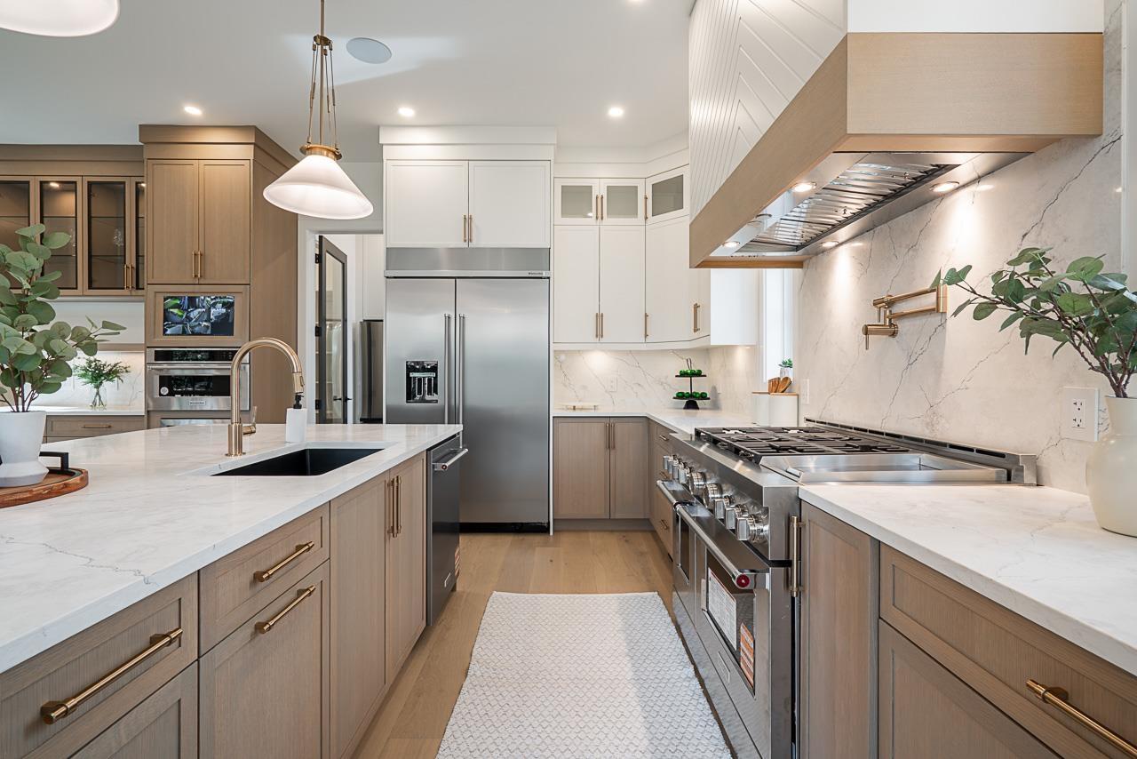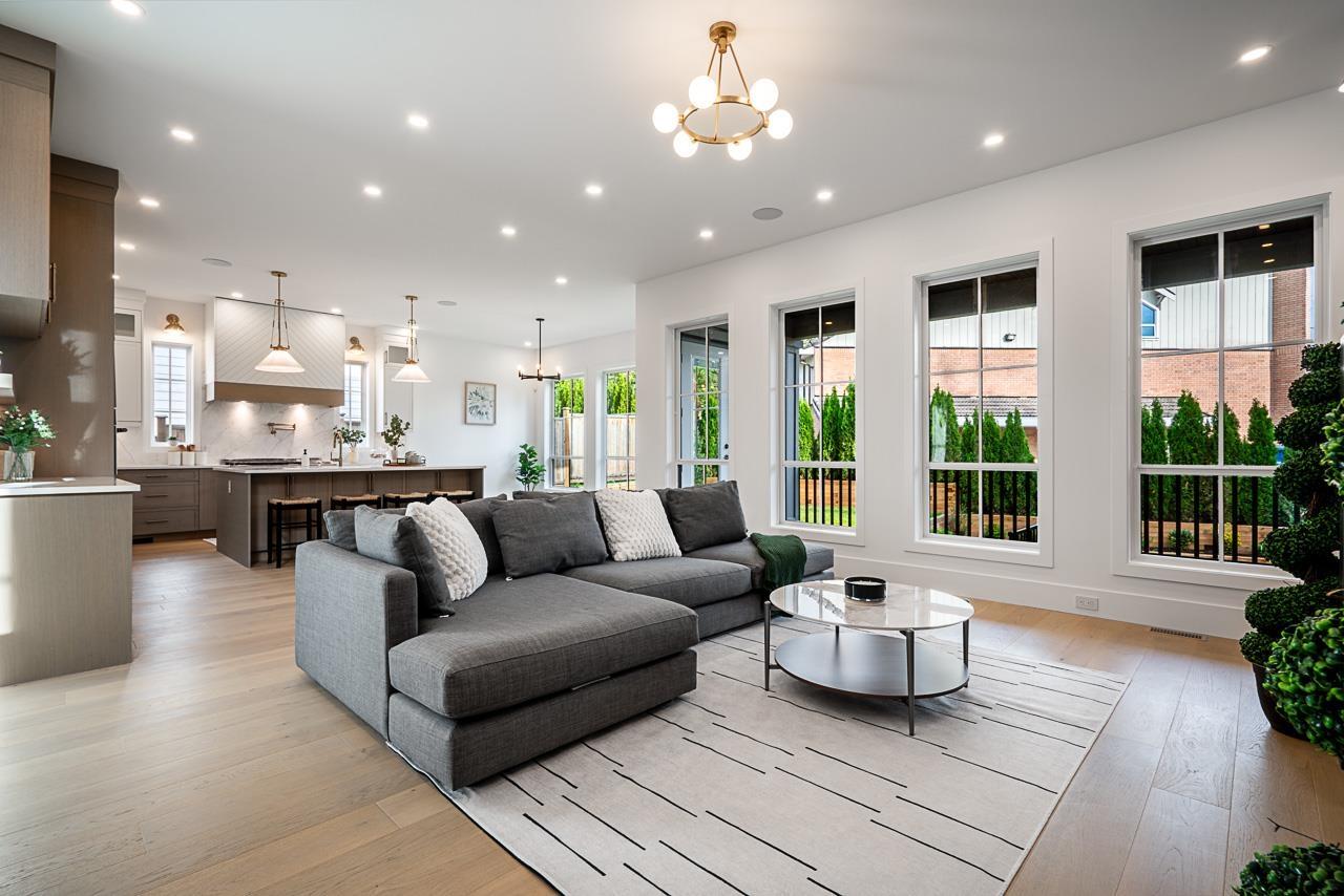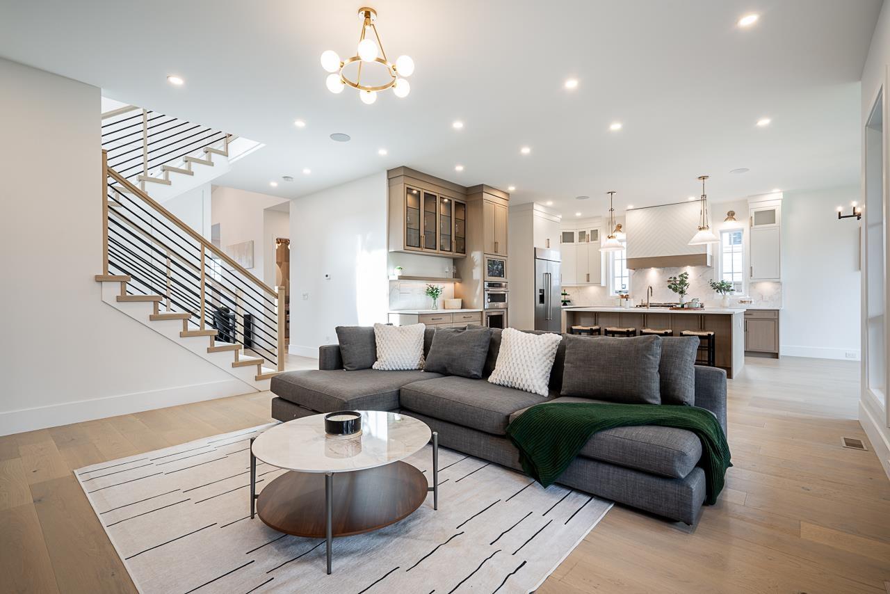 | This breathtaking designer home blends Craftsman architecture with Farmhouse elegance, offering 5,560 sq ft of luxurious living in sought-after West Cloverdale. Bright, airy interiors feature expansive windows with automatic blinds, exquisite millwork, and premium flooring. The showstopping great room centers around a stunning fireplace and a custom two-tone white oak kitchen with top-tier appliances, a spice kitchen, and walk-in pantry. Upstairs boasts 4 vaulted bedrooms including a dreamy primary suite, plus a main-level bedroom. The lower level features a 2-bed legal suite, media room with wet bar, 3-pc bath, storage, and mudroom. Enjoy central A/C, smart home features, and the 2/5/10 New Home Warranty-a perfect blend of sophistication, comfort, and functionality. (id:5347) | |||