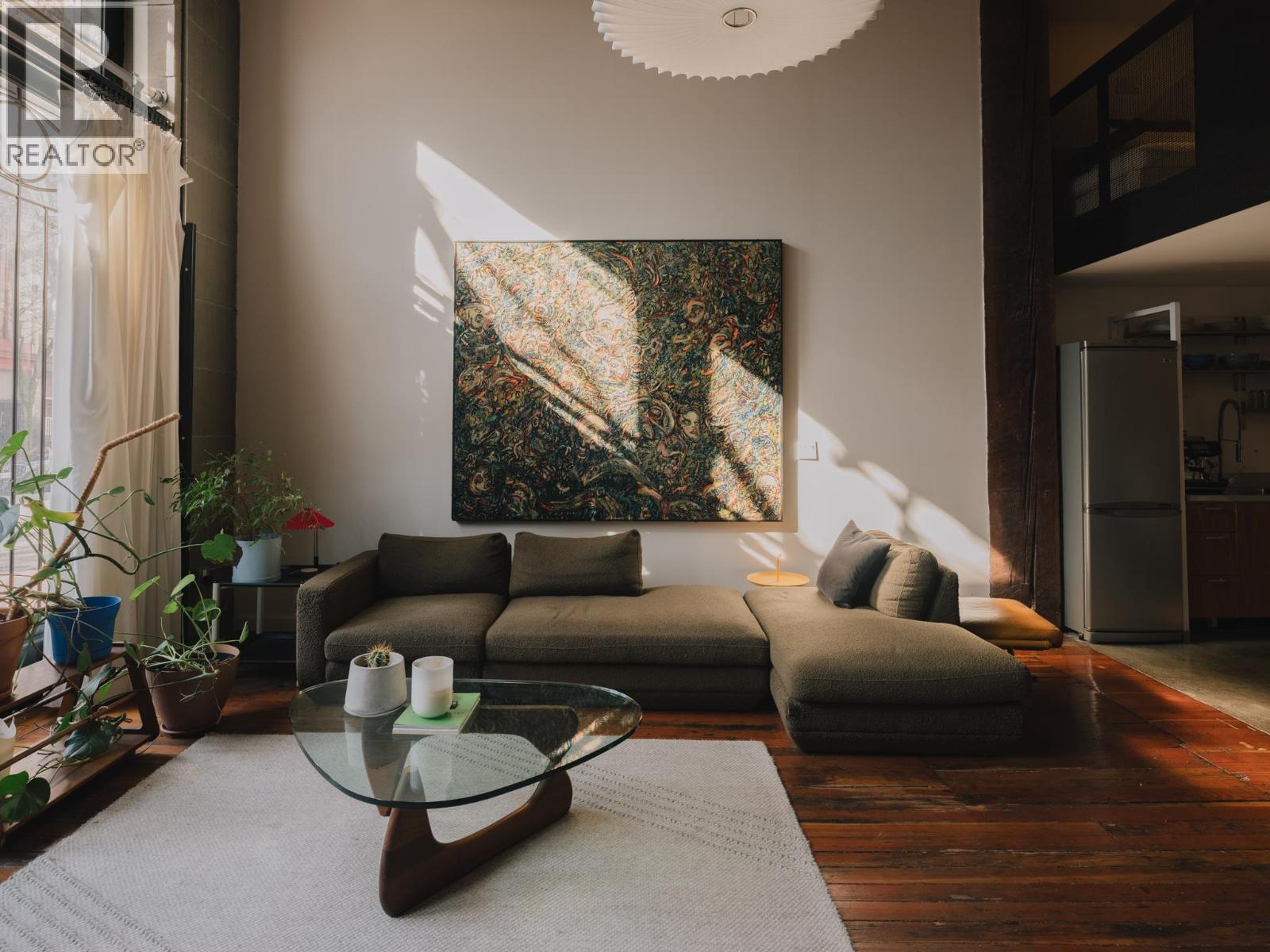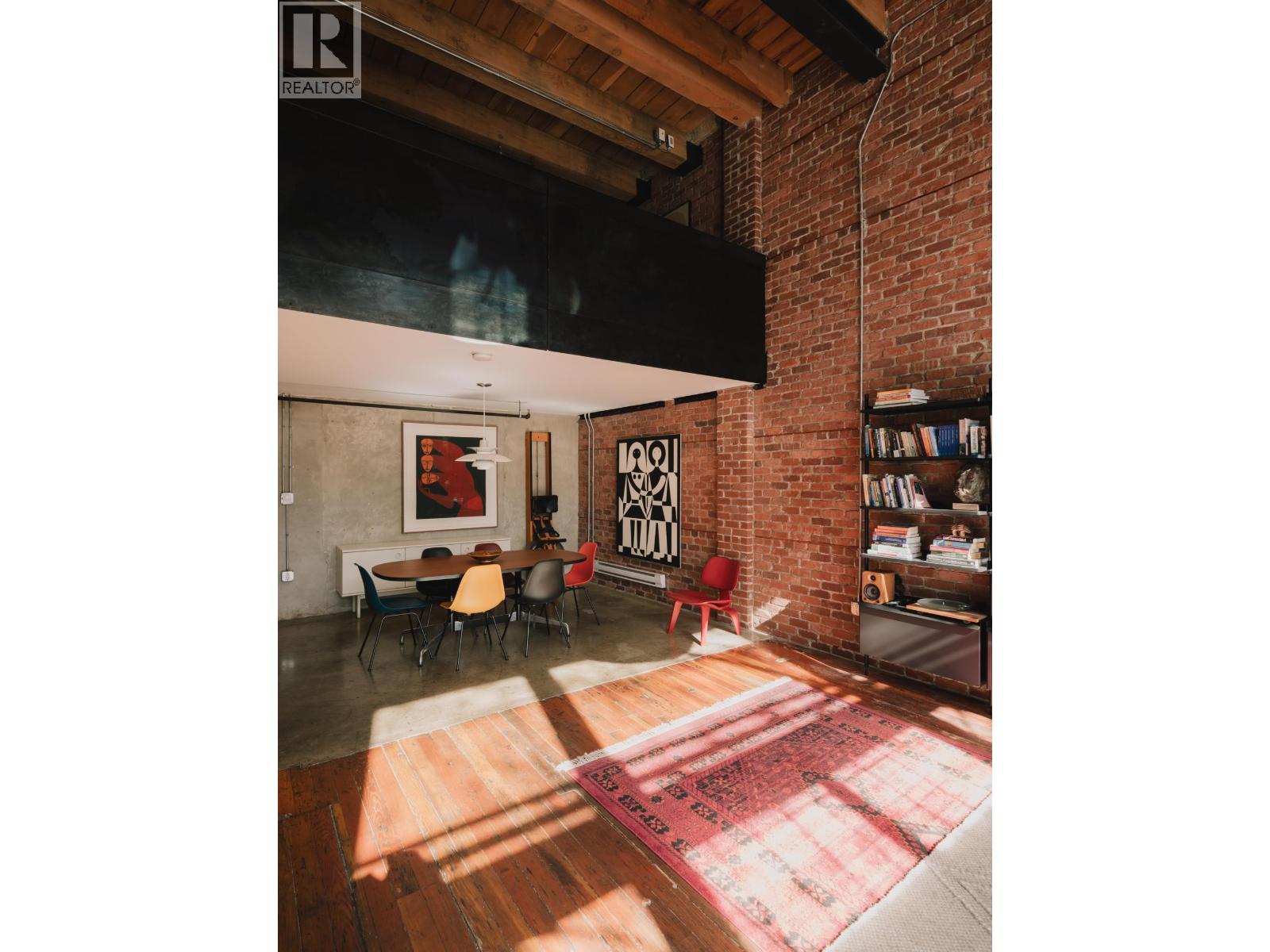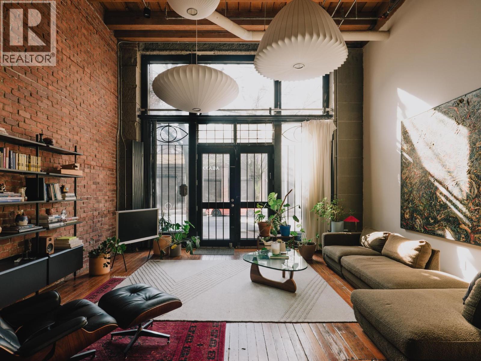 The Artist Loft - a century old warehouse where old-growth timber, masonry, and concrete richly compose an expansive 1753sf at ground level - among the largest in Koret Lofts. 2 storey south-facing storefront windows frame a dynamic live/work space, complete with original Alda Pereira kitchen/millwork and Duravit ensuite. Security and privacy are offered by custom Architectural metalwork throughout, with warm feature lighting by Herman Miller, Louis Poulsen and Danese Milano. A truly unique floorplan balances openness with privacy over two levels - at a generous scale that is rarely seen on the market. Functionality is enhanced by two entrances, ample storage, secure underground parking, short-term rental approval and commercial opportunity. The Koret is Gastown´s premier loft building. (id:5347)