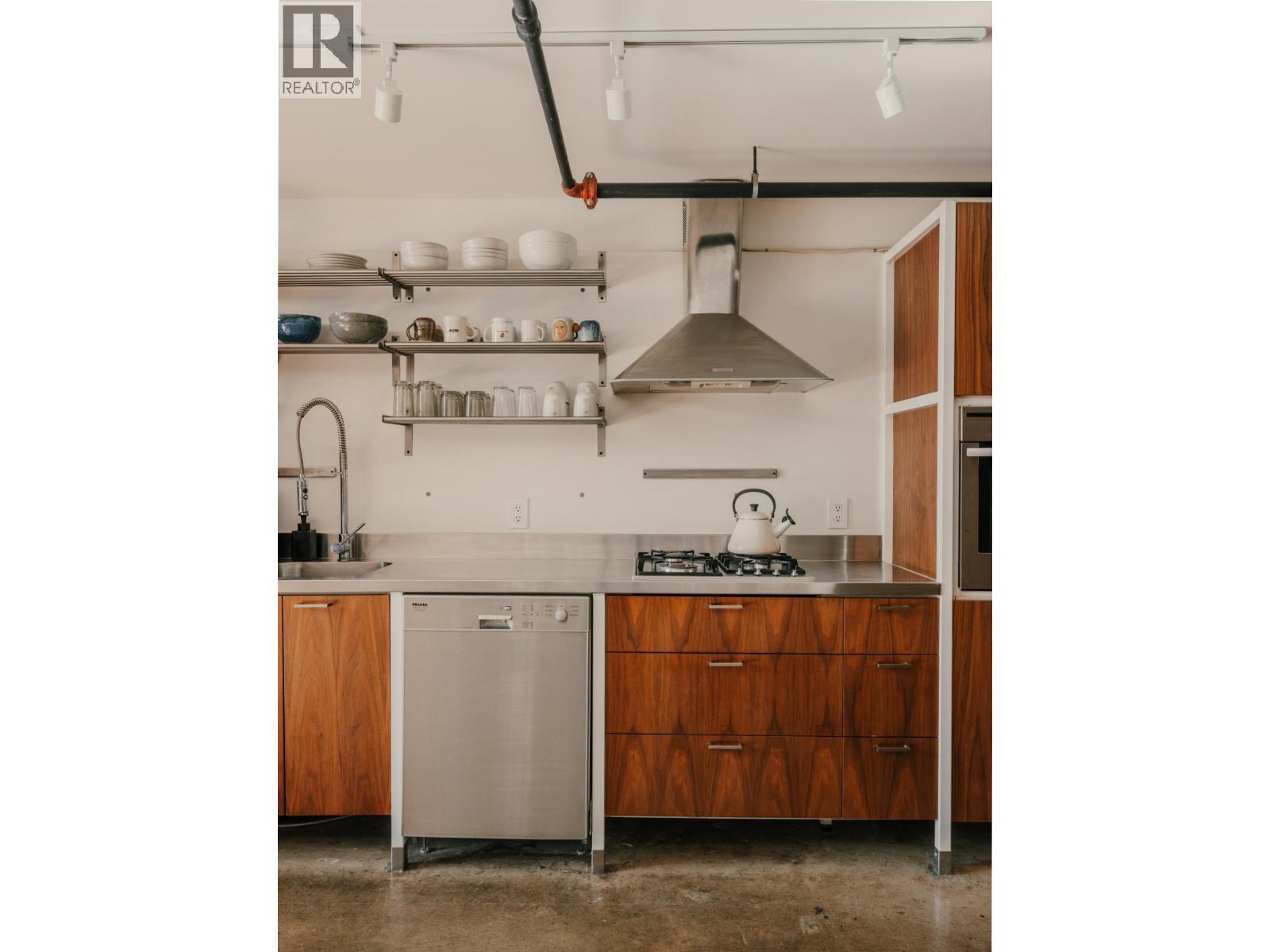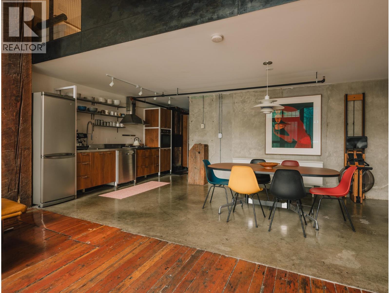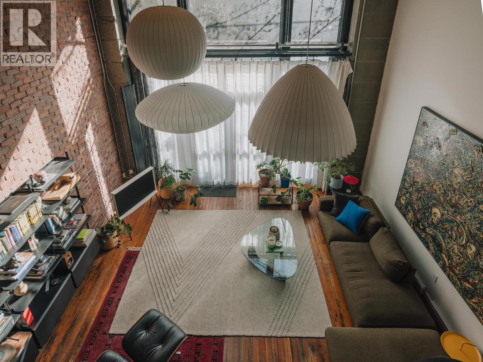 The Artist Loft - a century old warehouse where old-growth timber, masonry, and concrete richly compose an expansive 1753sf at ground level - among the largest in Koret Lofts. 2 storey south-facing storefront windows frame a dynamic live/work space, complete with original Alda Pereira kitchen/millwork and Duravit ensuite. Security and privacy are offered by custom Architectural metalwork throughout, with warm feature lighting by Herman Miller, Louis Poulsen and Danese Milano. A truly unique floorplan balances openness with privacy over two levels - at a generous scale that is rarely seen on the market. Functionality is enhanced by two entrances, ample storage, secure underground parking, short-term rental approval and commercial opportunity. The Koret is Gastown´s premier loft building. (id:5347)