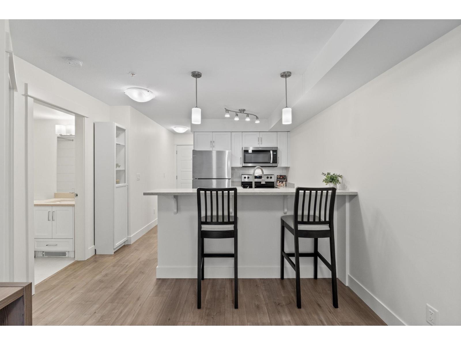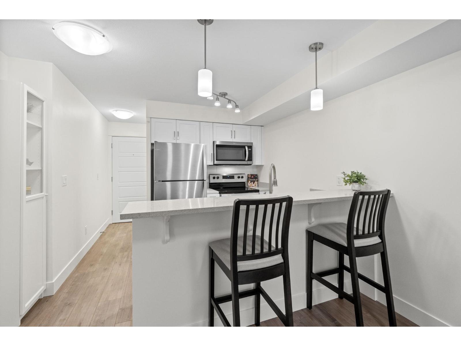 | Get the feel of a brand-new unit without the GST. Fully renovated in 2023, this beautifully updated home offers modern finishes throughout, including quartz countertops, a new backsplash, stainless steel appliances, new washer/dryer, laminate flooring, and fresh paint. Large windows fill the space with natural light, while the covered balcony extends your living area outdoors. Includes 1 underground parking stall, 1 storage locker, and access to EV charging in the building. With pets and rentals allowed and no age restrictions, this home is perfect for first-time buyers, downsizers, or investors. Enjoy a prime location just steps to Highstreet Mall, restaurants, and grocery stores, with quick access to Hwy 1. Modern, convenient, and move-in ready. (id:5347) | |||