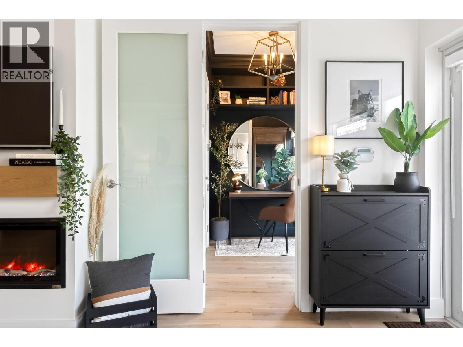 Kitsilano dream condo with private ground-floor access and an exclusive patio. Welcome to The Pulse on Maple Street. This exquisitely updated residence showcases refined décor, custom wainscoting, striking feature walls, and meticulously crafted millwork and flooring throughout. An elegant electric fireplace anchors the living area, complemented by a private office-ideal for today´s work-from-home lifestyle. Move-in ready with designer paint, curated lighting, and bespoke built-ins; simply bring your suitcase. Enjoy his-and-hers closets and a spa-inspired ensuite. Includes 1 parking, 1 storage, pet-friendly, and Amazon deliveries directly to your door. Only steps to cafés, boutiques, transit, and downtown-truly a rare offering. (id:5347)