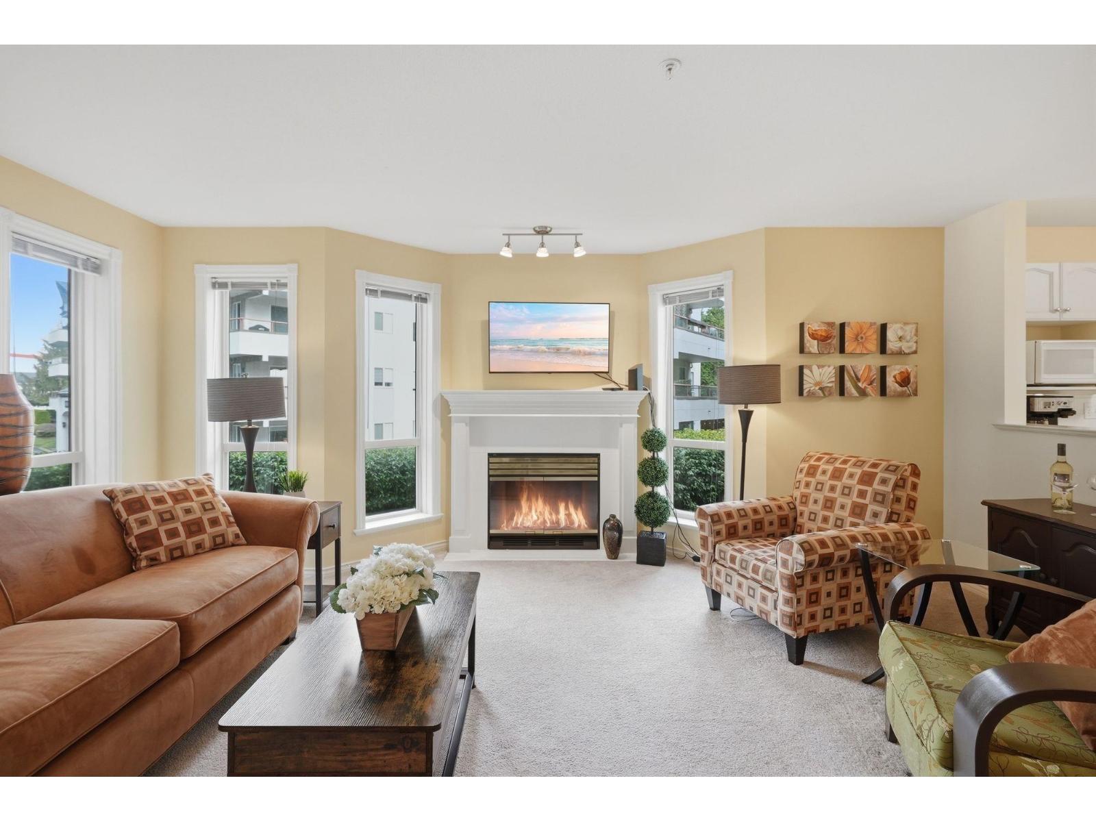 | Beautifully Maintained OPEN CONCEPT 2 Bed 2 Bath FACING QUIET side of Bldg. TONS of light in this UPDATED condo w/ GAS FIREPLACE and OVER 1,000 SQFT of peacefull living. HUGE Primary bedroom, big enough for KING SIZED BED, LARGE Kitchen w/ enough space for breakfast nook, THIS is what Condo Living is supposed to be. Right in the HEART of Abbotsford, STEPS from Mill Lake, WALKING DISTANCE to Sevenoaks and schools; but a serene space on your patio... you've got it ALL! Don't waste any time, this condo is READY for you. (id:5347) | |||