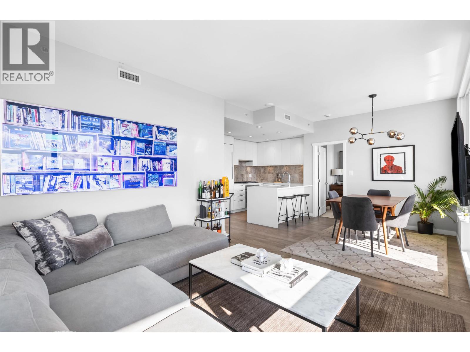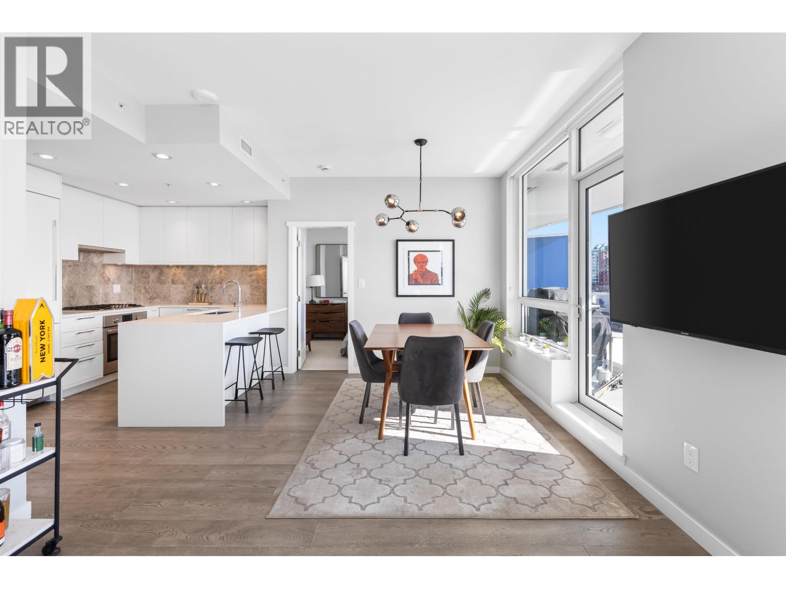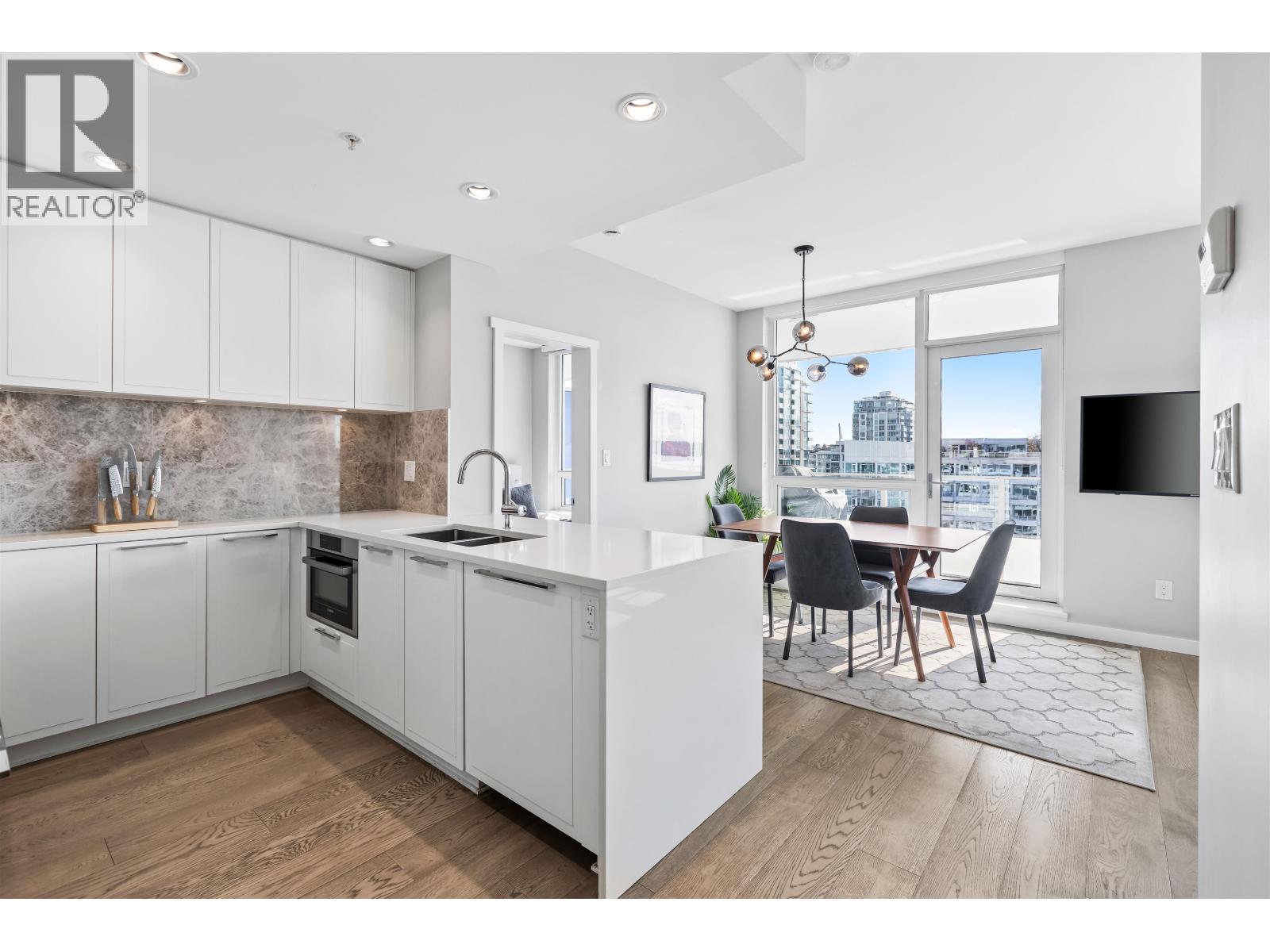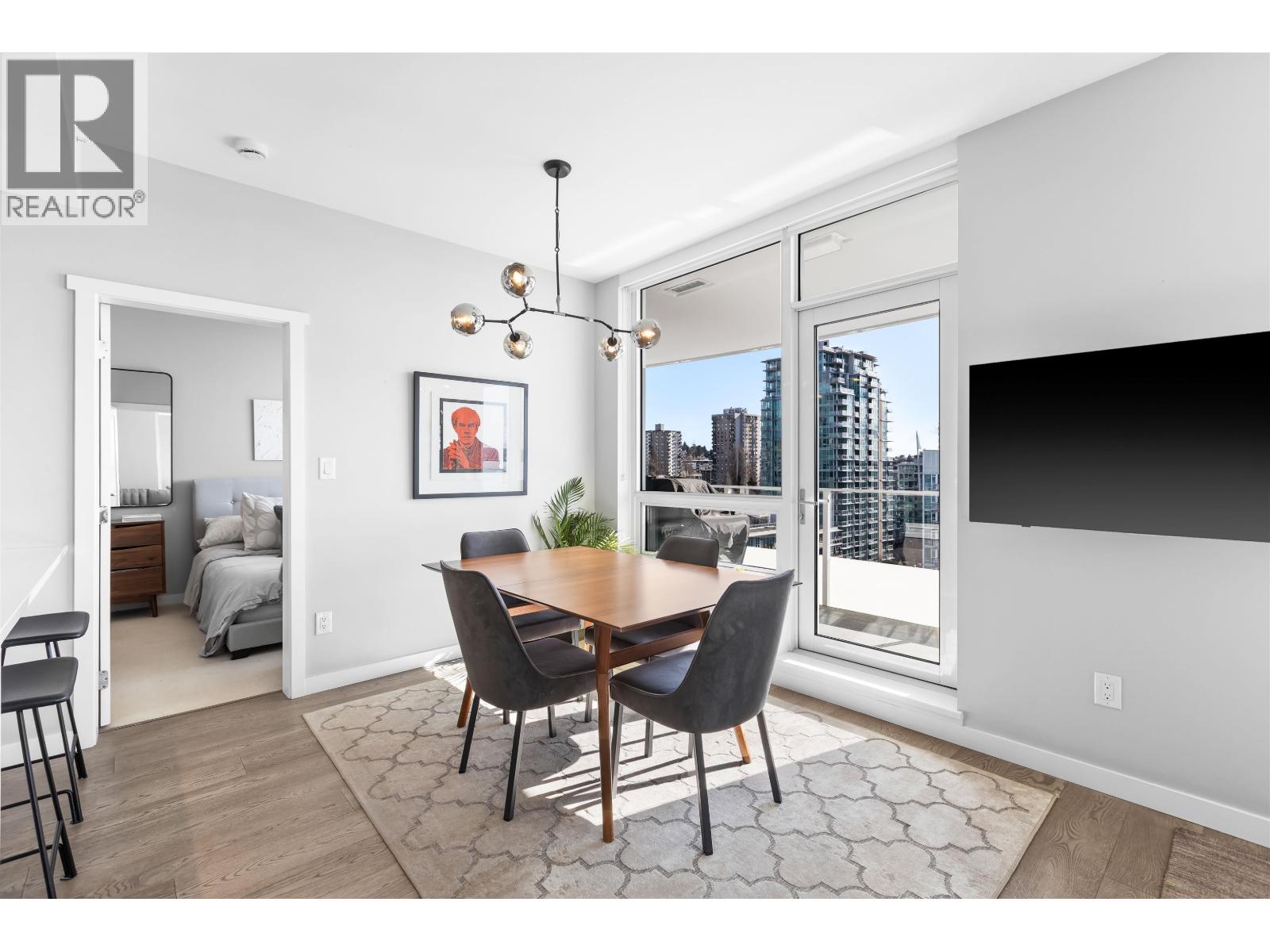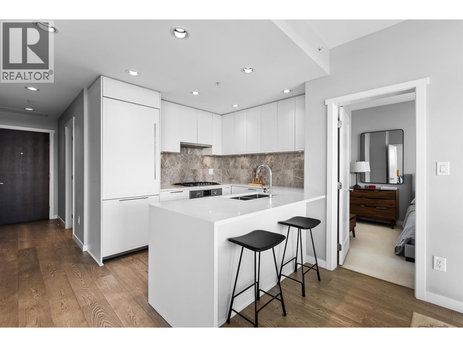 | Welcome to Promenade by Polygon in the heart of Lower Lonsdale. This rare waterfront-facing two-bedroom, two-bathroom home is one of the best positioned units in the building, offering incredible views and natural light. Features include engineered hardwood floors and a gourmet kitchen with integrated appliances, five-burner gas range, marble backsplash, and large eating bar. The spa-inspired ensuite includes marble finishes, rain shower, and built-in bench. Enjoy the almost 300 square ft covered balcony while taking in the views. Includes one parking and one storage. Amenities include concierge, air conditioning, gym, lounge, dog wash, and visitor parking. Just steps to the SeaBus, restaurants, and shops. (id:5347) | |||