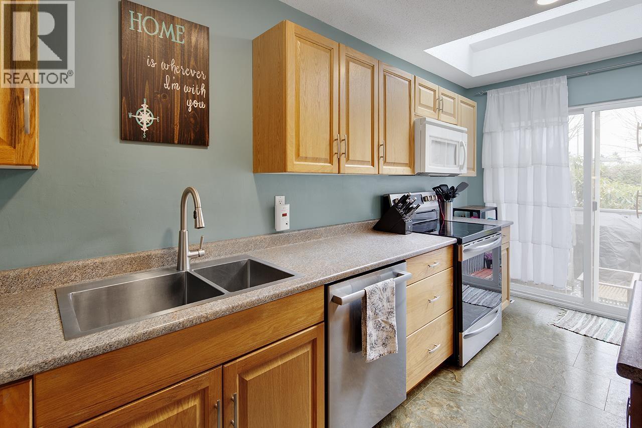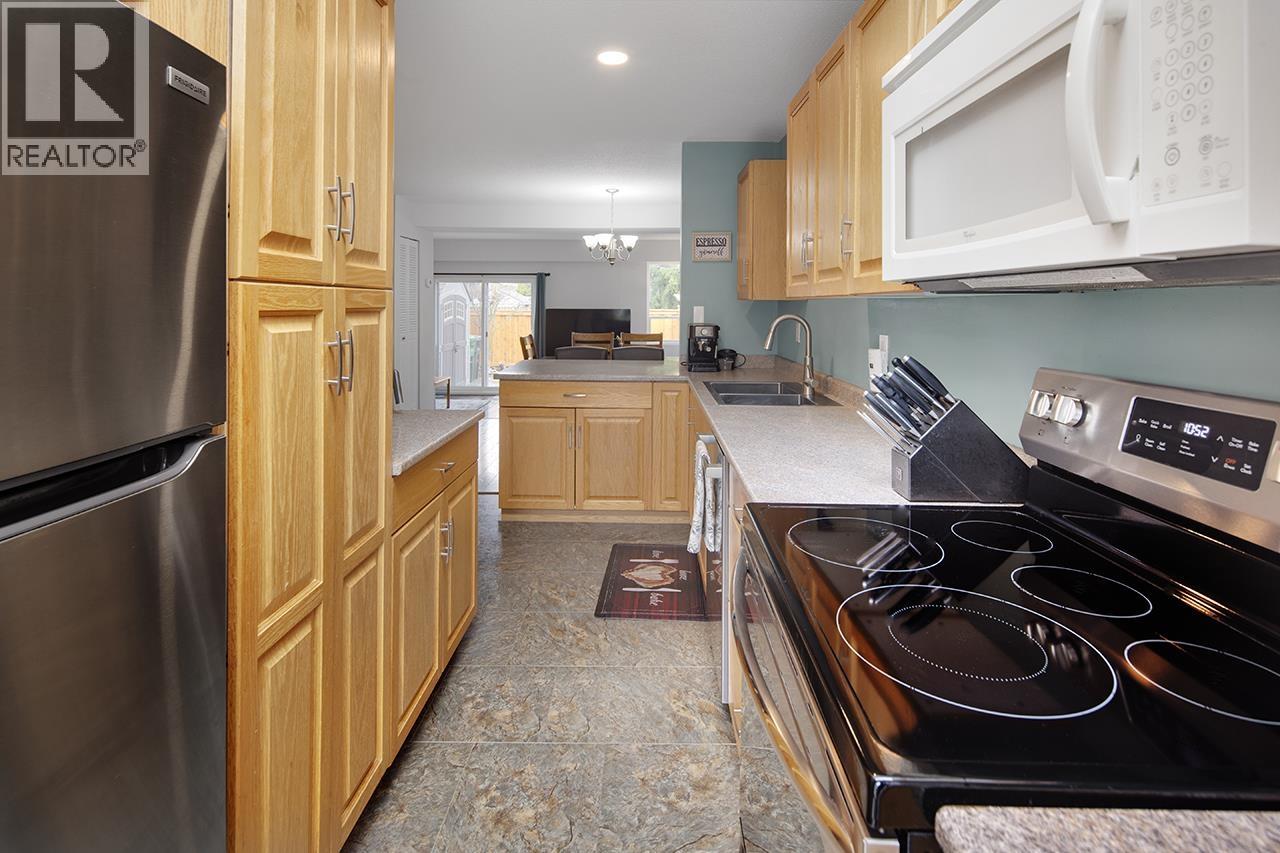 | This bright 3 bedroom, 2 bathroom, 2-storey townhome offers 1,340 sq. ft. of comfortable living space in a quiet 6-unit complex. Enjoy newer laminate flooring, soft designer paint tones and new carpet on the upstairs floor. The kitchen features blonde maple cabinets and stainless steel fridge, stove and dishwasher. Upstairs you'll find an updated 5-piece bath and a large primary bedroom with walk-in closet. Storage room and crawl space provide plenty of storage. Relax on the front deck or in the fenced backyard with large storage shed. Two parking spaces included. Roof and skylights replaced within 5 years, electrical upgrade 2021, new fencing 2025. Walk to elementary school, & rec centre. Short drive to sports fields and ice arenas. Open houses Sat. Mar. 21, 2-4, Sun. Mar. 22, 11:30-1:30. (id:5347) | |||