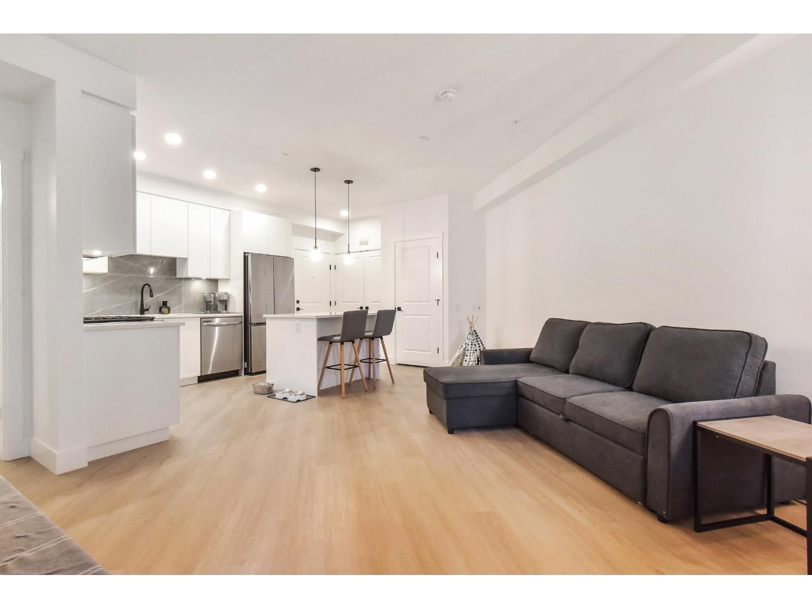 | Welcome to King + Crescent by award-winning Zenterra - a beautifully crafted 1-bed, 1-bath home in the heart of White Rock / South Surrey. This bright and spacious condo features air conditioning, 9' ceilings, oversized double-pane windows, and thoughtful design throughout. The kitchen is a showstopper with Caesarstone countertops, soft-close cabinetry, matte black Kohler fixtures, and a premium Samsung appliance package including a gas range. Enjoy access to a fully equipped fitness centre, storage locker, and secure underground parking. Perfectly located near Morgan Creek Golf Course, South Surrey Athletic Park, top schools, and premier shopping. Experience modern living in one of South Surrey's most desirable new communities! (id:5347) | |||