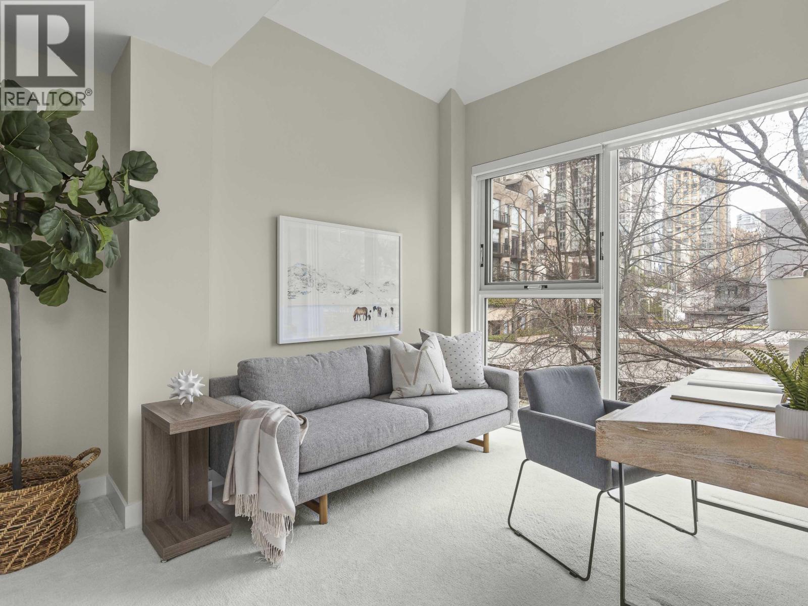 | Exceptional functionality and rare privacy - by Yaletown´s seawall. A remarkably secluded patio opens through lift-and-slide doors that fill the ample living & dining areas with natural light. The thoughtful layout offers 2 king-sized bedrooms with no shared walls, plus two generous office/den spaces, ideal for a WFH couple, crowned by dramatic vaulted ceilings, along with abundant storage. The modern kitchen features Bosch appliances & hardwood floors from Bosa´s 2013 refresh of Pacific Point; a $17M envelope renewal followed in 2021. High-end amenities include concierge, pool, gym, sauna & hot tub, befitting a residence with this superb location by David Lam & George Wainborn parks, Bluewater, Opus Hotel, Skytrain. Parking & storage included (2 EV in building, too). This home stands out. OPEN Sat/Sun 2-4pm (id:5347) | |||