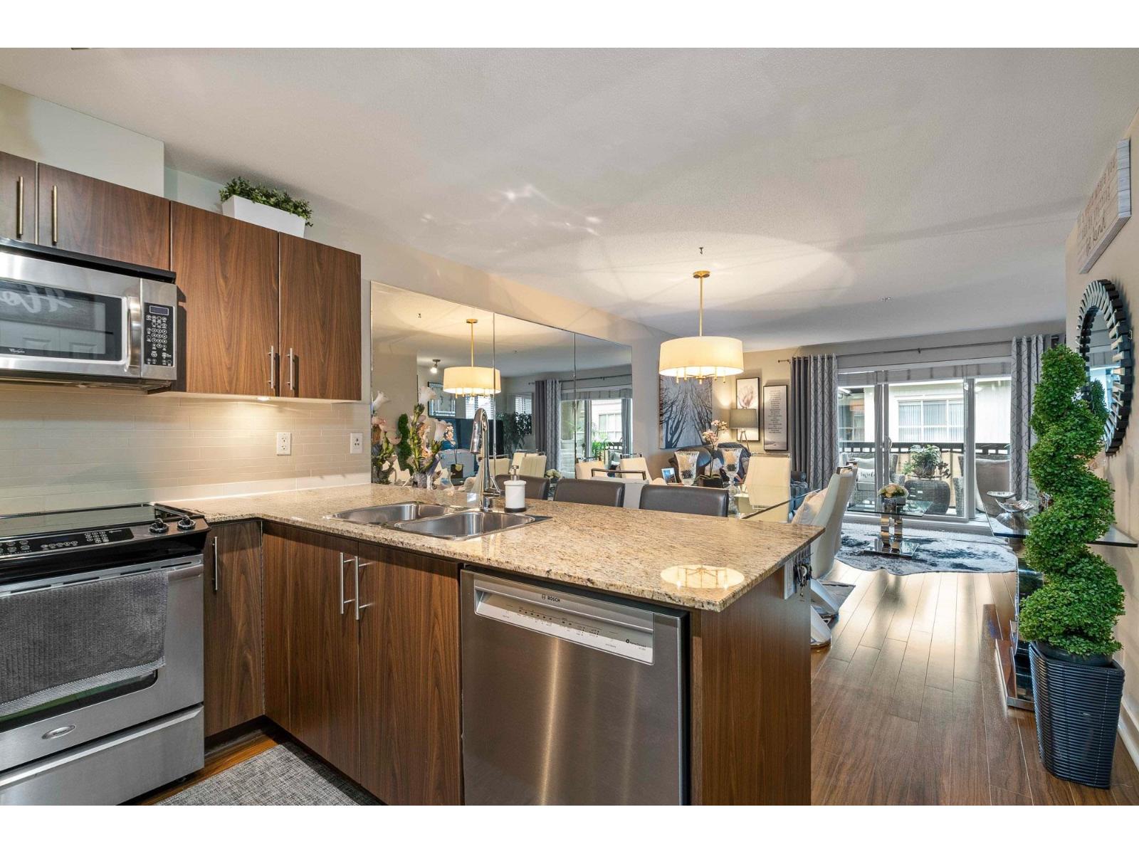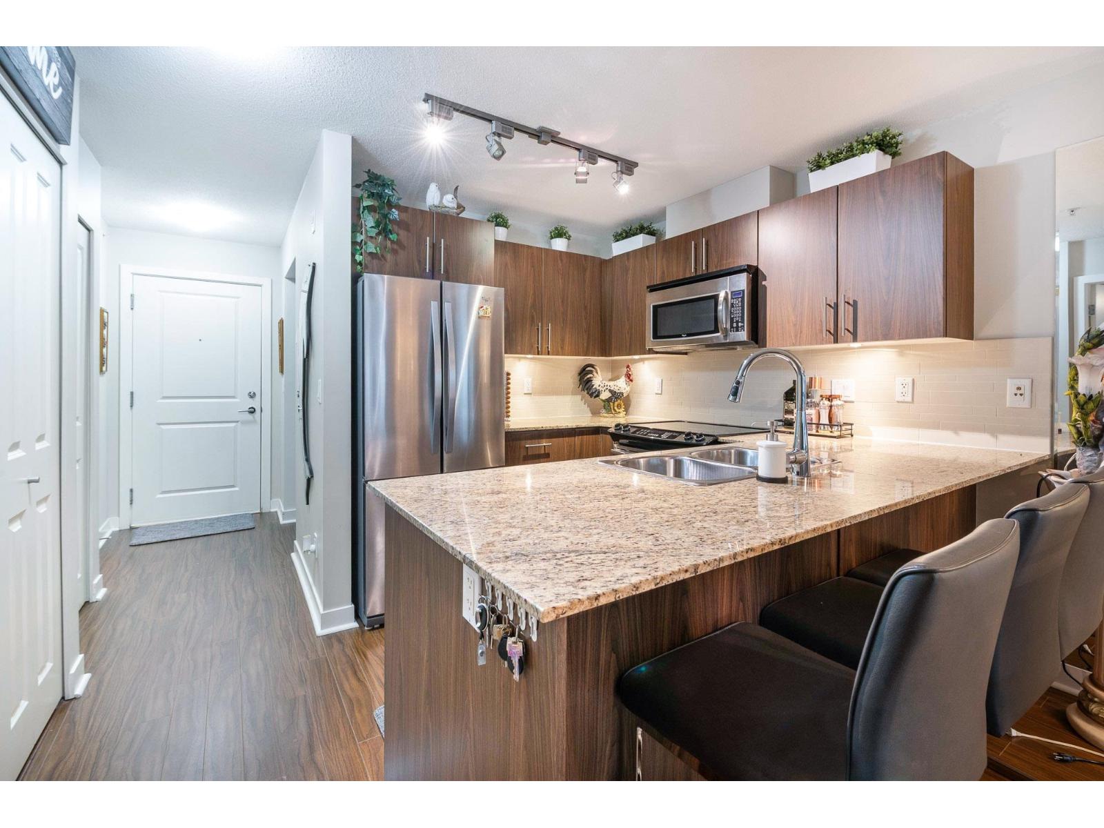 | Welcome to Hawthorne! This top-floor, 1 bed and large den corner unit, offers 760 sq. ft. of thoughtfully designed living space. Bathed in natural light, this home features an open-concept layout, granite countertops, stainless steel appliances and ample workspace-perfect for both everyday living and entertaining. The spacious living area centers around a cozy fireplace, creating a warm and welcoming atmosphere. Step outside to your expansive west-facing covered balcony-an ideal spot to relax and enjoy evening sunsets. Additional highlights include two parking stalls, a storage locker and a convenient location close to shopping, dining, transit, and everyday amenities. An excellent opportunity for first-time buyers, downsizers, or investors seeking comfort, style, and a vibrant lifestyle. Home is where your Storey begins! (id:5347) | |||