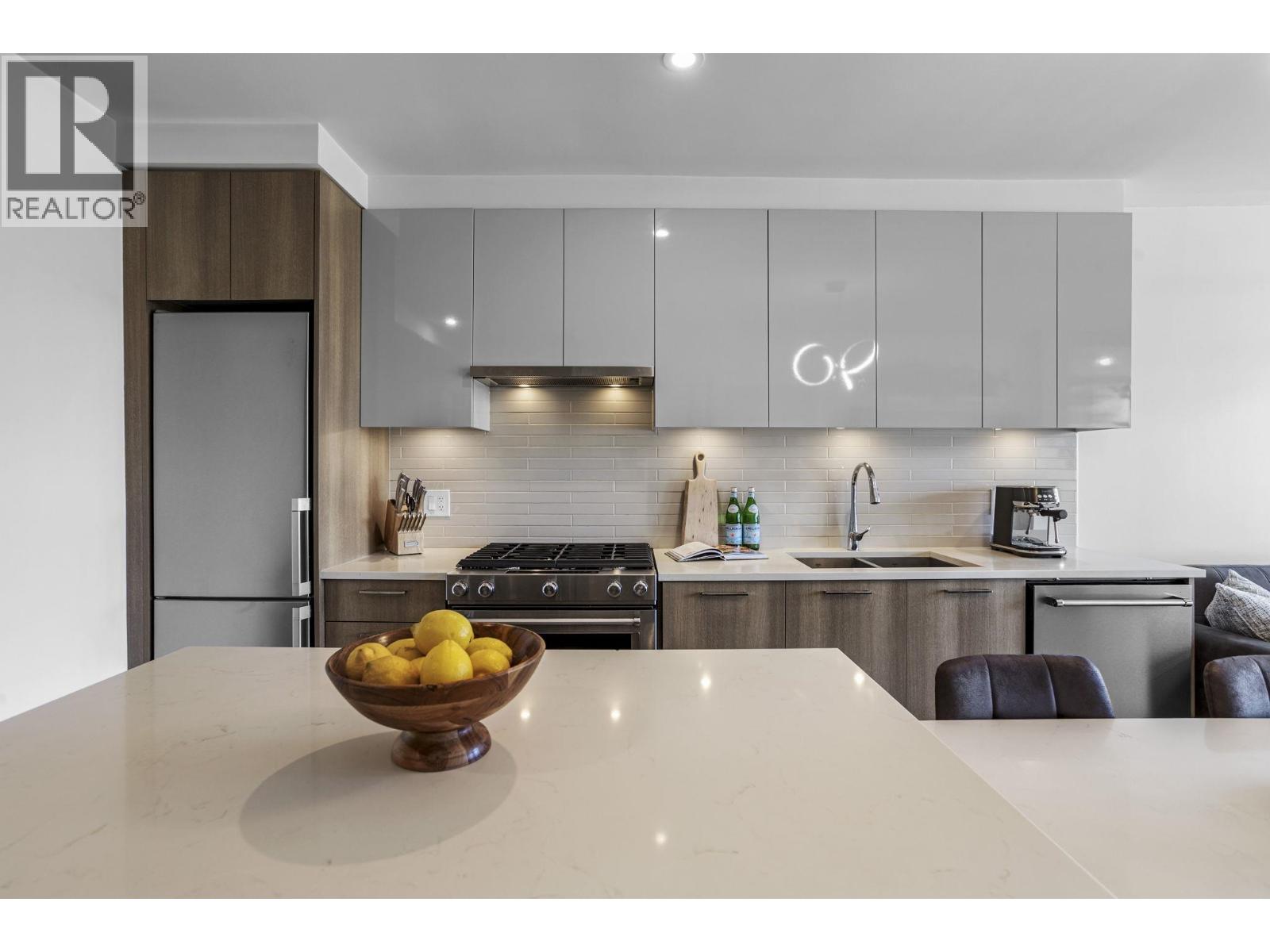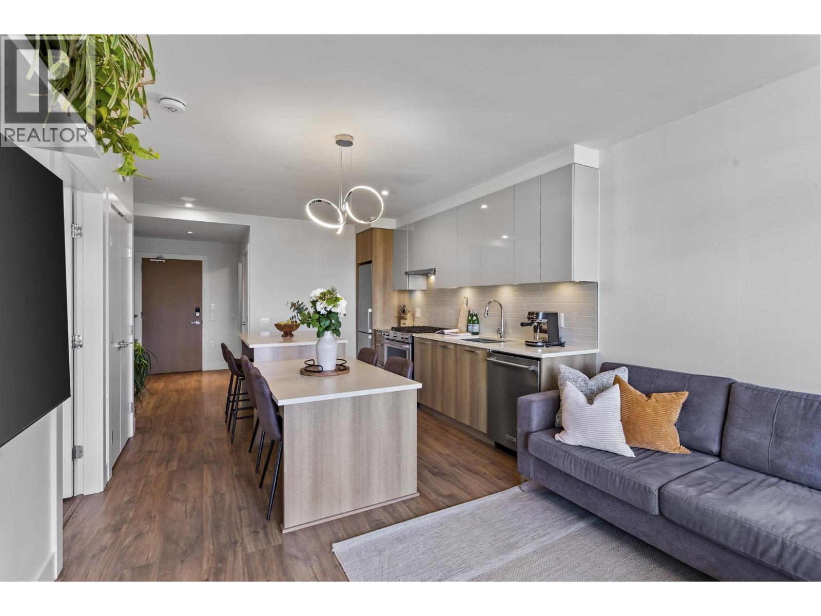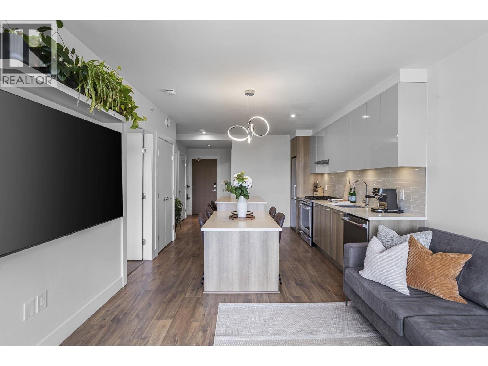 Welcome to this bright and super functional 1 bed + den home at The Columbia by Wesgroup in the vibrant Sapperton neighbourhood of New Westminster. This move-in ready home features an open layout with a spacious living area leading to a 100+ square ft covered patio on the quiet side of the building with city views. Modern kitchen with quartz counters, stainless steel appliances, and integrated dining table with entertainer´s island. Den with upgraded storage and sleek glass shower door in the bathroom. Located in the heart of the Brewery District, steps to SkyTrain, groceries, restaurants, and cafés. Includes 1 parking & large storage locker. Amazing amenities: full gym, stunning clubhouse, squash court, steam room, sauna, and dog run. (id:5347)