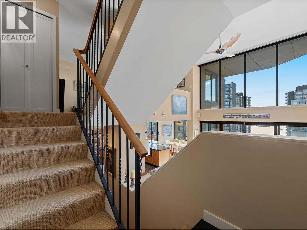 | THIS VIEW! One of the best vantage points in the city, with unforgettable sunsets and the mesmerizing waters of English Bay showcased right from your living room. Located in the iconic Alexandra Park, a boutique concrete building in the West End, this one-of-a-kind, two-level residence captures the very best of Vancouver. Soaring 16-ft cathedral ceilings and floor-to-ceiling windows fill the home with natural light, while the open-concept living and dining area flows to a private ocean-view balcony. Upstairs, the loft-style primary suite is a peaceful retreat, while a separate flex space can easily function as a second office, library, or quiet sitting area. Pet-friendly, with 2 parking and 1 locker. Perfectly positioned just half a block from English Bay and the Seawall. Open House SAT, MAR 18, 2-4PM (id:5347) | |||