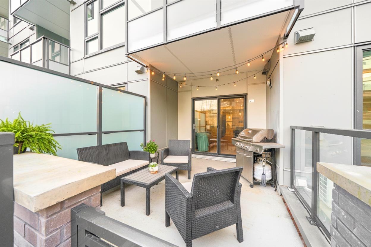 | Brand New 1 Bed + Den, 707 SQFT Ground level unit with private 122 SQFT walk-out patio!! Perfect for BBQ's, Pets & entertaining! This move-in ready home features a bright & open-concept layout, high ceilings, air conditioning, & gourmet kitchen with large island, gas stove, S/S appliances & clean modern finishes! The spacious bedroom includes a walk-through closet, and large Den provides flexibility of a home office or guest space. Building amenities include an indoor lounge, outdoor rooftop patio, putting green, gym & children's playground. Bordering White Rock & steps to Semiahmoo Mall, White Rock beach, transit, theatre, parks, coffee shops, hospital & more! Includes 1 large parking & 1 HUGE storage locker. Click link for virtual tour. *OPEN HOUSE: Saturday, March 21, from 2-4pm. (id:5347) | |||