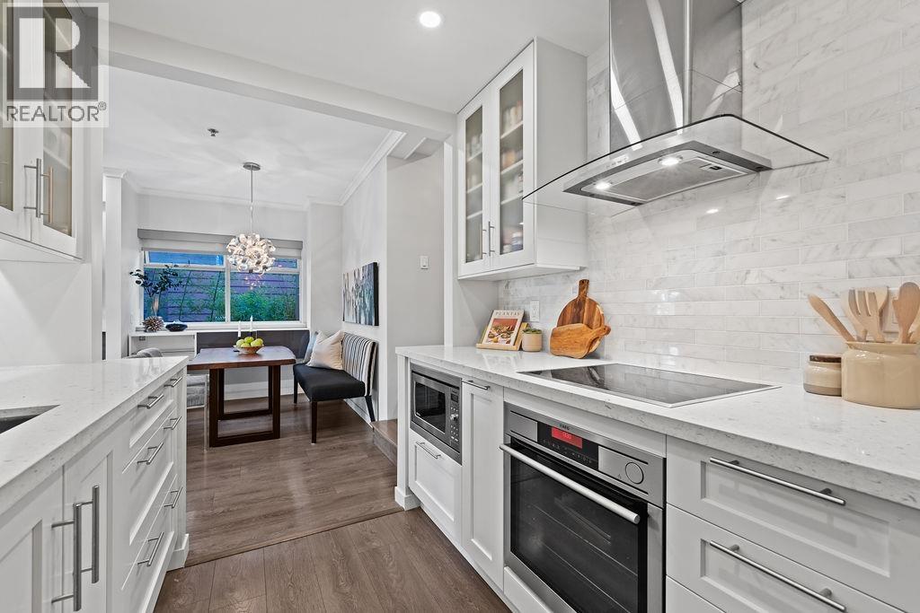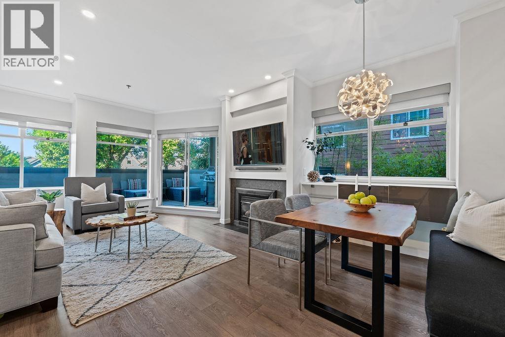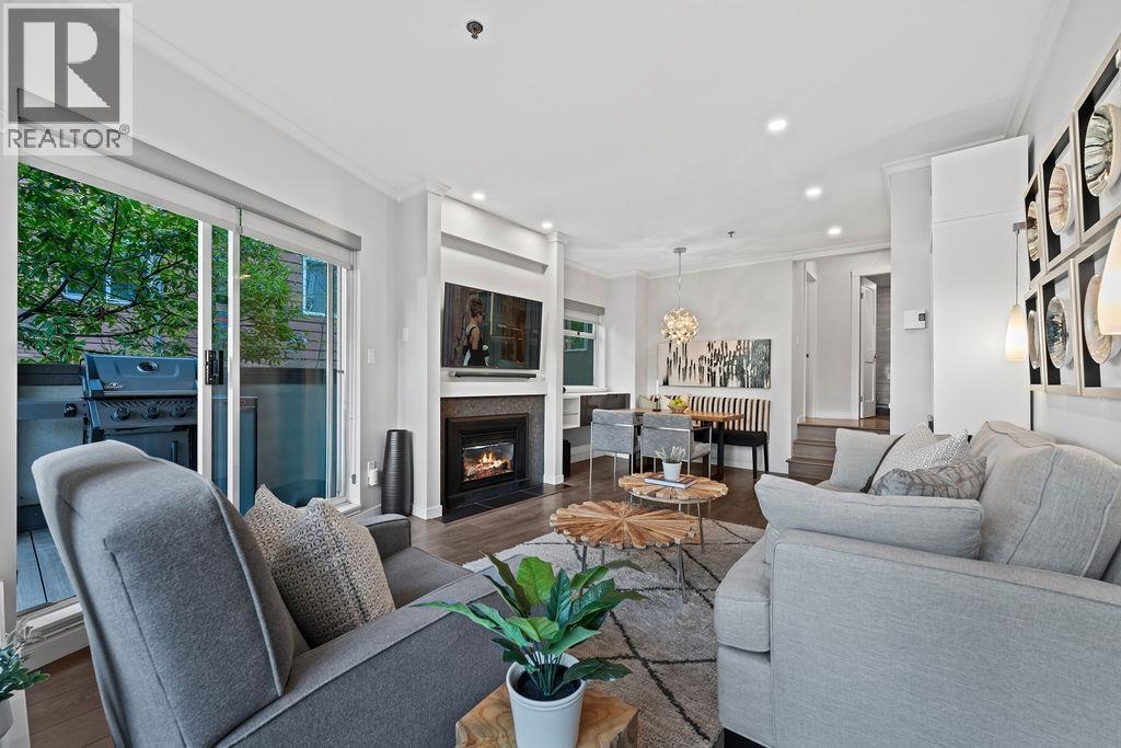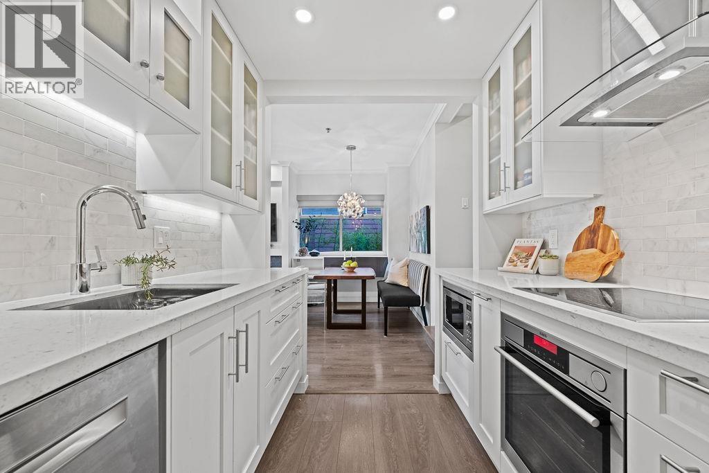 North of 4th Ave in Kitsilano is the place to be - location matters! This beautifully renovated large one bedroom one bath home with a generous private patio has what you're looking for. Designer Chef's Kitchen includes SS appliances (with steam oven and induction range), granite counters and storage for all your entertainment essentials. Open dining/living room with cozy gas fireplace and sliding double doors out to a large deck with space for relaxing and grilling. Living in the heart of Kits means you´re steps to all the local shops and bistros and only a few blocks to the best beach in the city. This home also includes one parking space, a storage locker and washer/dryer. Enjoy all the buzz, excitement and lifestyle of Kitsilano from this charming quiet home in the centre of it all. (id:5347)