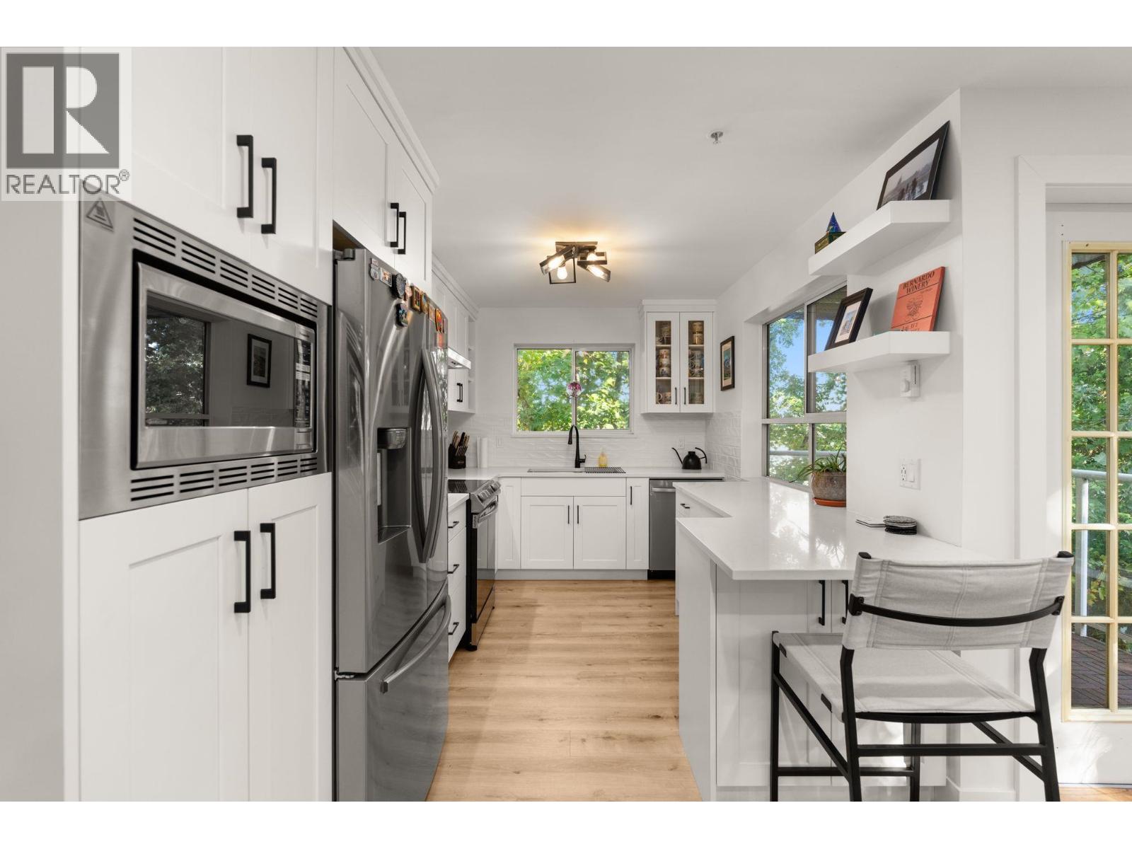 | Beautifully RENOVATED corner condo at Sunningdale in the heart of Ladner! This bright & spacious 2 bed 2 bath 1051 square ft suite features NEW kitchen, baths, paint & warm vinyl plank flooring throughout! Chef's kitchen boasts new appliances, cabinets & quartz counters. Great open plan with dining area overlooking living room with gas feature F/P & door to private deck! Bedrooms are separated by living space for privacy. Primary bedroom is spacious with spa inspired ensuite and 2nd bedroom is roomy and has updated full bath across the hall. In suite laundry room has full sized washer & dryer. Fees include secure underground parking, storage locker, gas & hot water - 1 pet is OK (dog or cat). Walk to quaint Ladner village, parks, recreation, schools & transit. OPEN SAT MAR 21ST 2-4PM! (id:5347) | |||