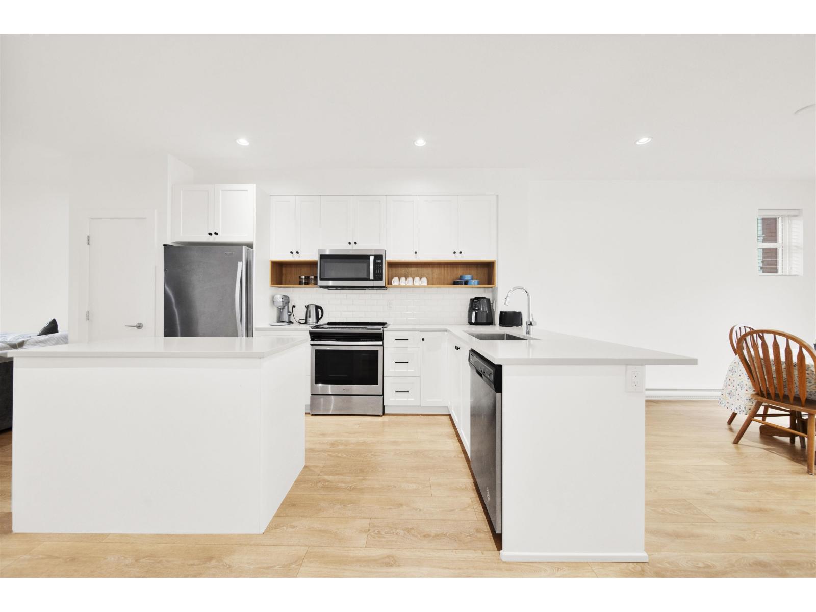 | End-unit in ROUNDHOUSE with 4 bdrms, 4 baths and the hard-to-find bonus of a bdrm and full bath on the ground level. Freshly painted and only 7 yrs young, this family-friendly home on the Aldergrove/Abbotsford border offers 1,550+ sqft, open-concept living, quartz counters, a sleek modern kitchen and a powder room on the main. 3 bdrms & 2 full baths up, including a primary bdrm that fits a king bed and an ensuite with his & her sinks. Ground level is ideal for in-laws, a home office or space for a teenager. Watch the kids play in the park below from your balcony. Double side-by-side garage plus street parking right outside your front door. Walk to FreshCo, mins to Highstreet, Cineplex and Aldergrove Community Centre with waterpark, pool, fitness centre, ice arena & indoor walking track. (id:5347) | |||