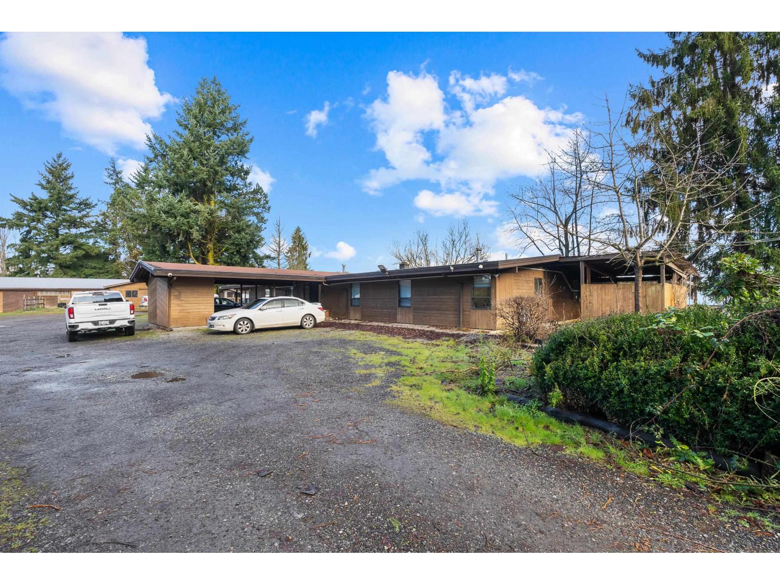 | 4.66 ACRE CORNER PROPERTY W/ 11,200 SQ/FT (70X160) BUILDING & 3000+ SQ/FT BARN! Property has 2600 SQ/FT sprawling rancher. The property has large frontage and driveway access on 16 Ave & 248 St. The previous indoor horse arena is 70x160 & would be great for your ideas. Featuring a gravel pad, property allows for 3 commercial vehicle parking. The home is a spacious private sprawling rancher. Or rebuild your dream 5400sq/ft (with potential for larger with walkout floor) and secondary 968 sq/ft home. The 3000+ barn was previously 7 stall barn. RU-2 Zoning allows for a variety of uses & in the ALR. Easy access via 16 Avenue to Hwy 99, Surrey, Abbotsford. Located minutes from Fraser Hwy, USA & Canada border. DO NOT ENTER WITHOUT APPOINTMENT. (id:5347) | |||