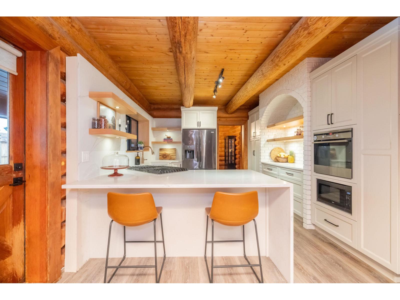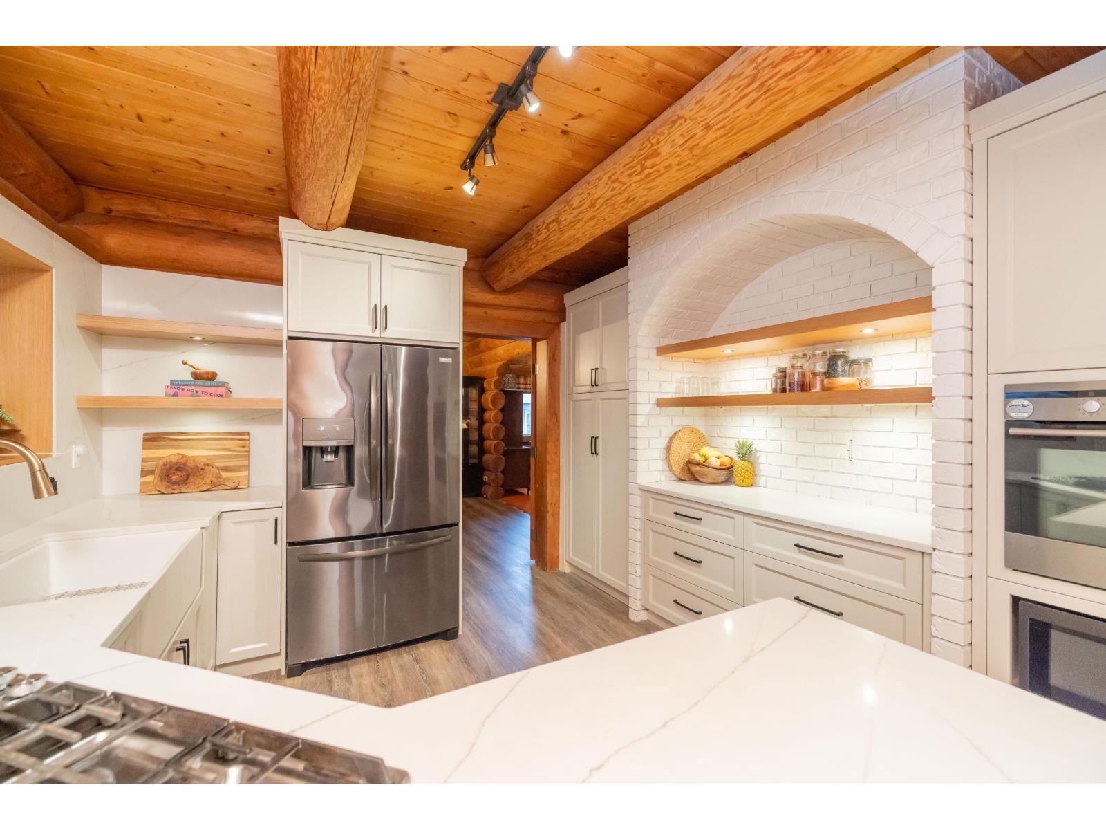 | A rare architectural contrast. Traditional log home warmth meets modern architecture, featuring a 3 storey ICF addition built for comfort, quiet, & longevity. The original home offers a main flr bed, kitchen, dining, living & family rooms with vaulted ceilings. Upstairs features 3 more beds, including a spacious primary w/ large closet spaces & an impressive ensuite with heated flooring. Private backyard with garden beds & a covered hot tub area. The modern addition provides flexible space ideal for Airbnb (STR), a professional office, or studio, capturing sweeping valley views. Additional highlights include extensive garage space/storage, potential 1-bed suite, RV Parking, over 7,300 sq. ft lot, & an indoor swimming pool. Located in the popular family neighbourhood of Promontory Estates. (id:5347) | |||
