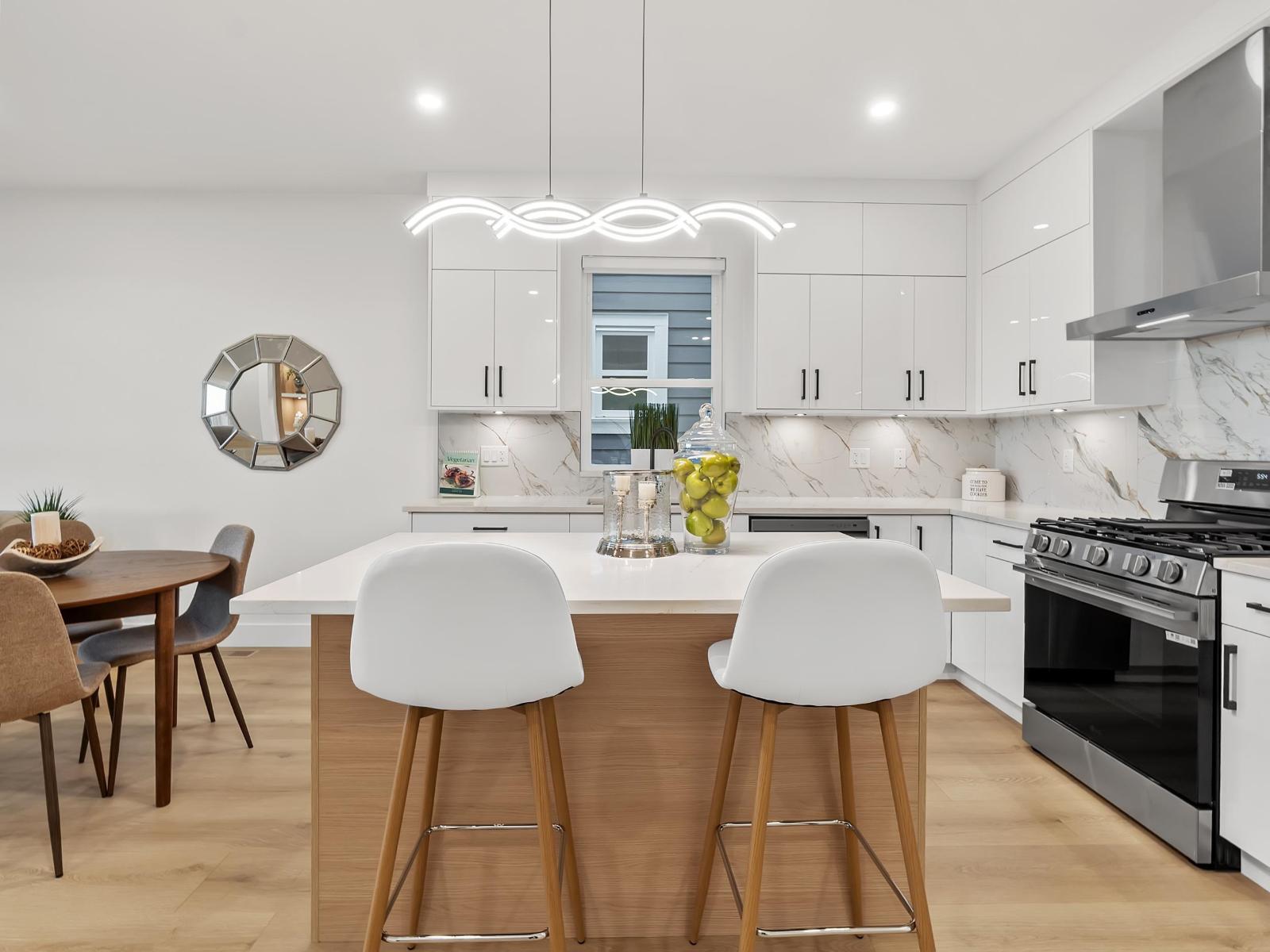 | Presenting ALARA II by Symbolic Construction Group. This exclusive collection of front and back duplex homes offers luxury living without the burden of STRATA FEES. Each FRONT unit is a 4 bed, 4 bath residence, thoughtfully crafted w/high end finishes, featuring 9ft ceilings throughout, expansive windows for abundant natural light,quartz countertops, premium appliances, built in entertainment unit & Security, AC, & energy efficient natural gas heating built with STEP CODE 4 in mind. Tiled baths & elegant accent wall add a sophisticated, modern touch.Enjoy 3 spacious levels of living,complete w/a large recreation room, a full bathroom, & an additional bedroom BELOW-perfect as a mortgage helper! The detached garage is equipped EV CHARGER Don't miss the chance to secure your dream home! (id:5347) | |||