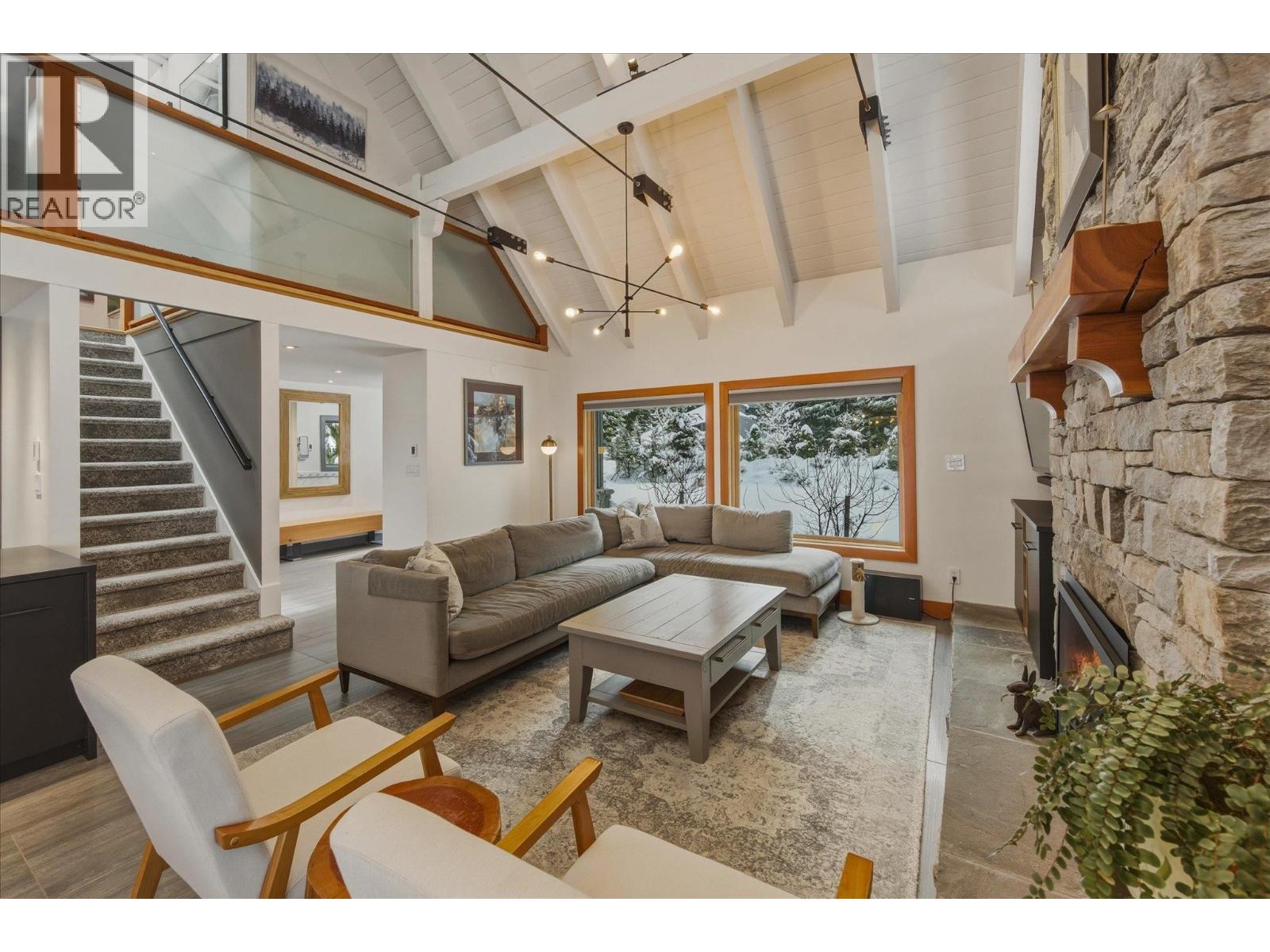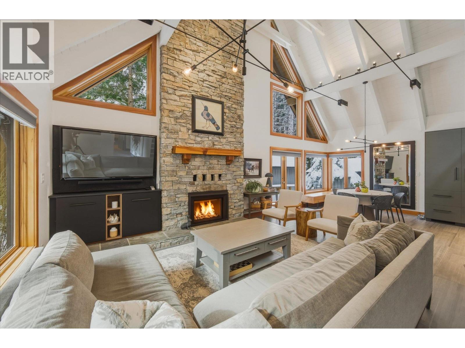| Discover this beautifully appointed chalet nestled in the highly desirable neighborhood of Whistler Cay. Surrounded by trees, this private mountain retreat sits on a large 10,435 sq. ft. lot featuring gorgeous landscaped gardens. The home boasts a thoughtful design with modern finishes throughout, perfect for entertaining friends and family. Enjoy the spacious open-plan living area, vaulted ceilings, floor to ceiling fireplace and an expansive wrap around deck, complete with hot tub and sauna. This coveted location offers convenient private beach access to Alta Lake just a short stroll away, along with proximity to the Whistler Golf Club, valley trail, elementary school and Whistler village. An ideal choice for a year round residence or serene weekend getaway. (id:5347) | |||