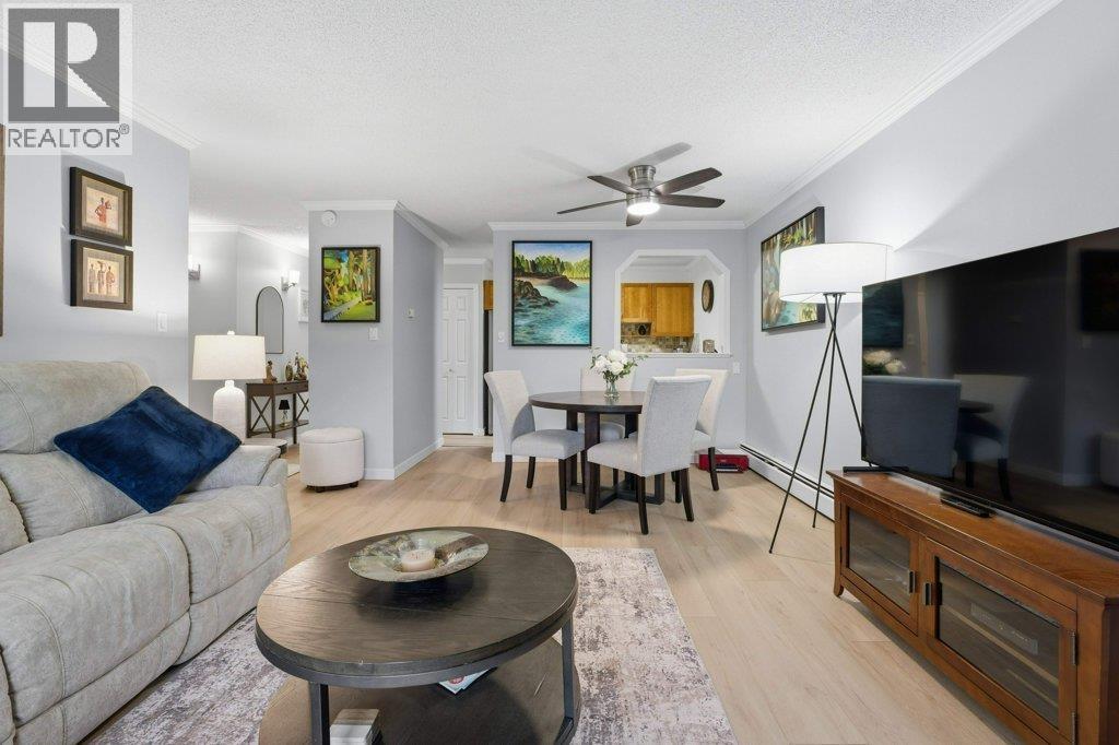 | Stornoway, Nicely renovated 2nd floor 1 bedroom, 1 bath condo with 750SF of super spacious living with in-suite laundry! This south facing home features a remodeled kitchen, stainless steel appliances, nice back splash, laminate floors throughout, updated bathroom with extra large shower, electric fireplace, crown moldings lots of storage and large balcony off the living room. The huge bedroom can even easily accommodate a home office. 1 parking. 1 locker. All this in a well-run building with 2 outdoor pools, saunas, new vinyl windows / patio doors, new elevators and meticulous grounds. Excellent quiet location that´s just steps to South Arm Park & Community Centre, Whiteside Elementary, McRoberts Secondary, buses & Broadmoor Village Mall. OPEN HOUSE SUNDAY MARCH 29, 2-4pm (id:5347) | |||