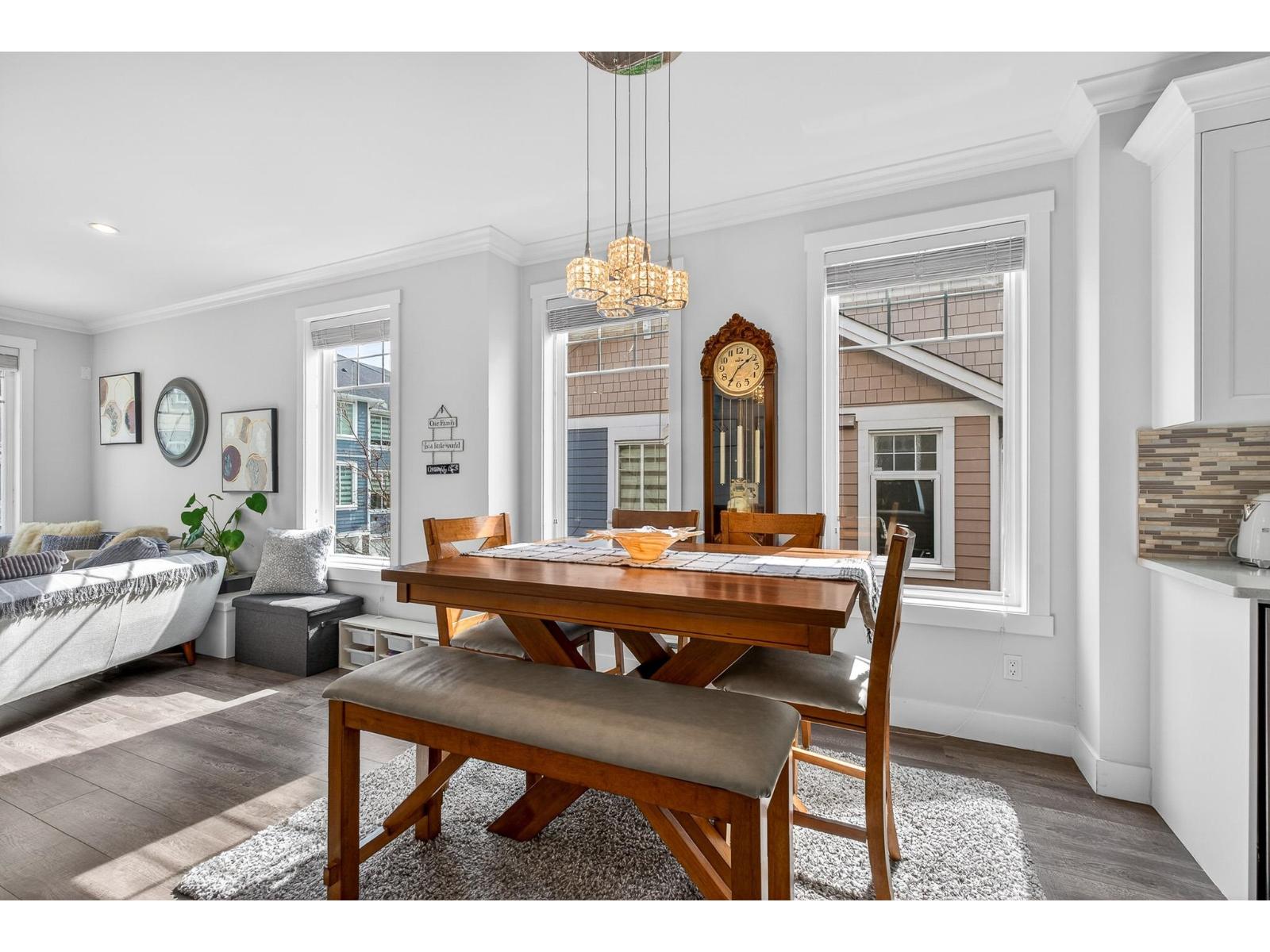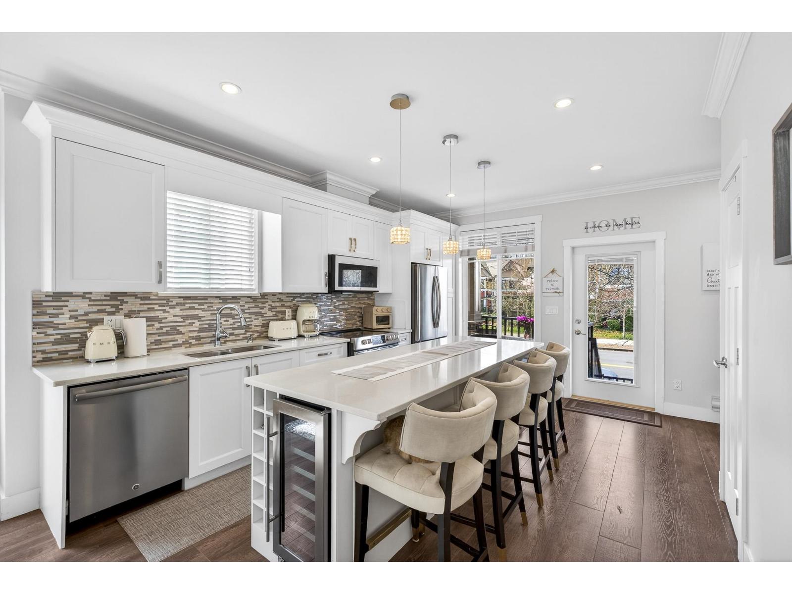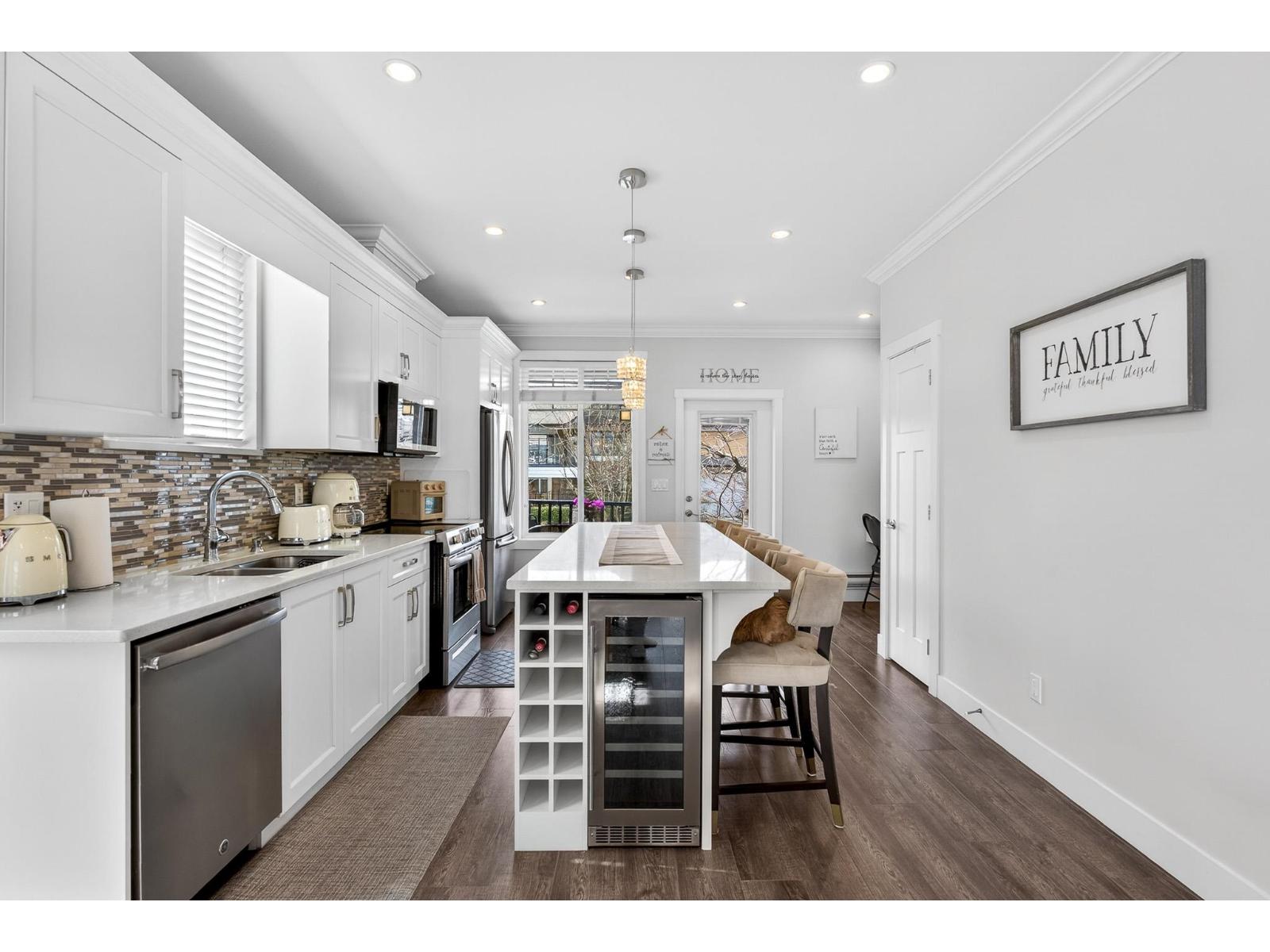 | Welcome to Joi Living, a well-maintained 2015-built corner unit offering over 1,800 sq.ft of functional living space. This 4 bedroom, 3.5 bathroom home features a bright open-concept layout with laminate flooring throughout and an abundance of natural light. The modern kitchen is equipped with quartz countertops, stainless steel appliances, a generous island, and a built-in wine fridge-perfect for everyday living and entertaining. Upstairs offers three spacious bedrooms, including a primary with a private ensuite. The lower level features a versatile 4th bedroom with a full bathroom, ideal as a large rec room, guest suite, or home office. Located across from an off-leash dog park and steps to the Clayton Community Centre, this home offers comfort, flexibility, and convenience. (id:5347) | |||