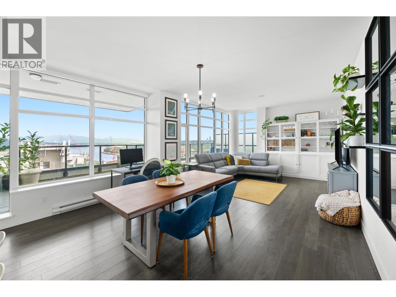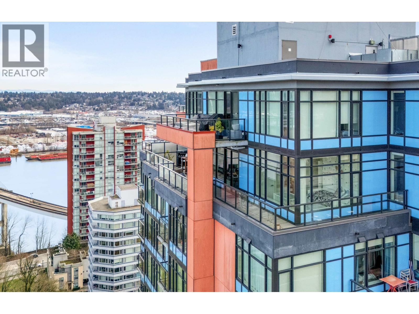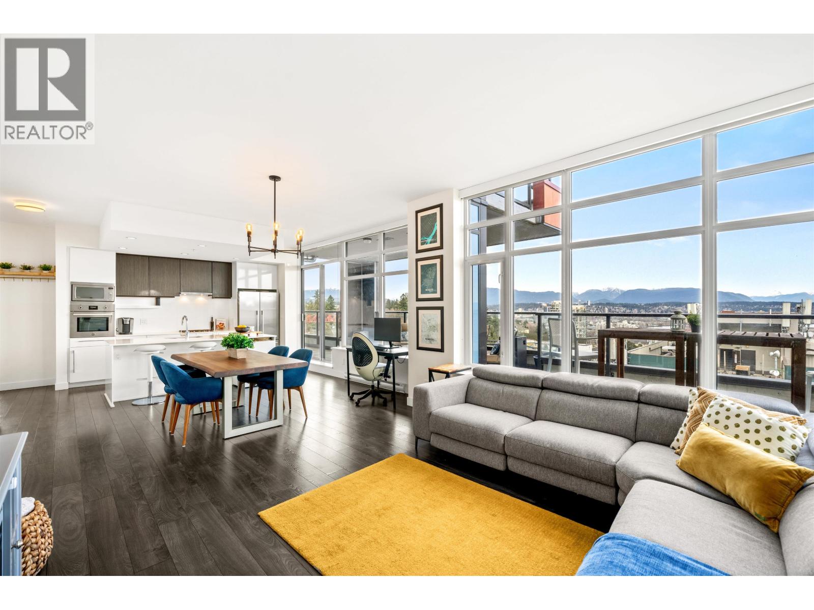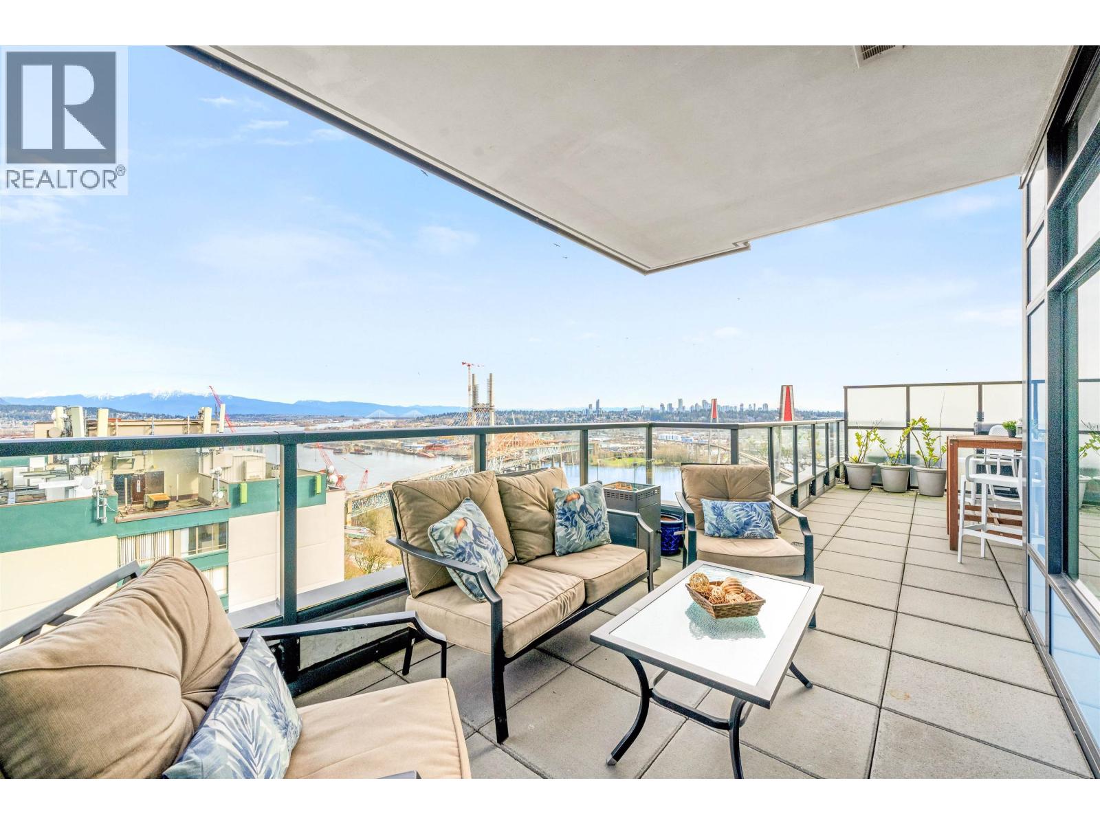 | Stunning sub-penthouse high above downtown New West, this corner unit at Elliot Street offers panoramic views from the North Shore mountains, to the Fraser River & Mt Baker. Huge wrap around semi-covered patio, great for entertaining, over 300sf, enjoy morning sunsets & north, east & south facing views! Open floor plan, 1,154sf of living space, with 2 bedrooms, 2 bathrooms, open-concept living/dining/kitchen area with 10´ ceilings, large kitchen with island, high-end European appliances, gas range, and modern cabinetry. Located on the east side of Downtown New West, backing onto Albert Crescent park, tucked away from city noise and a close walk to Columbia Skytrain, Restaurants, Shopping and Pier Park. Includes 1 parking & 1 storage. (id:5347) | |||