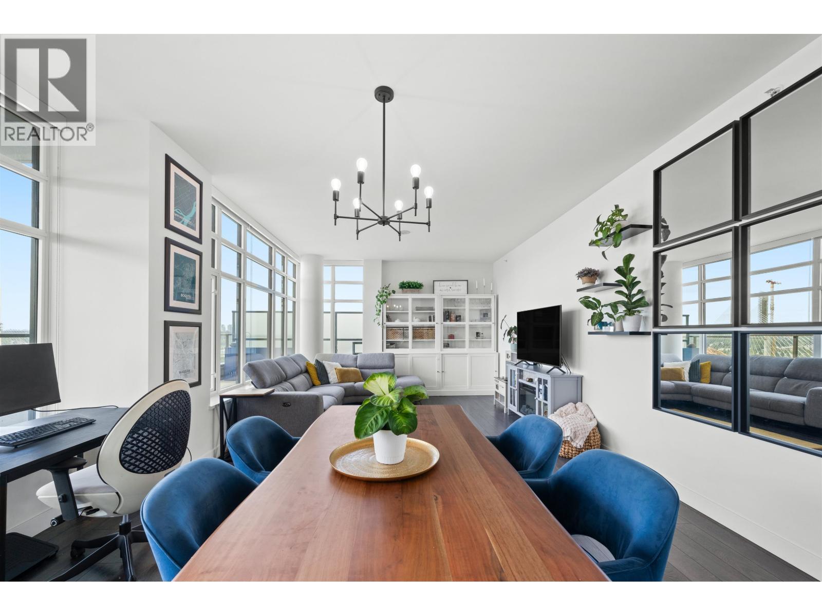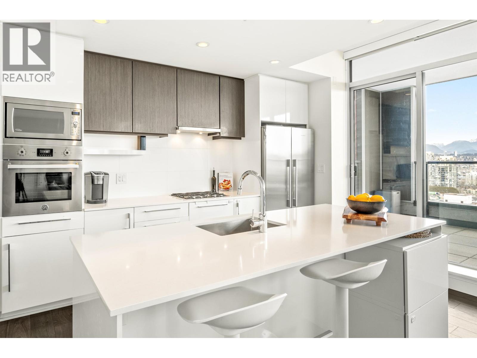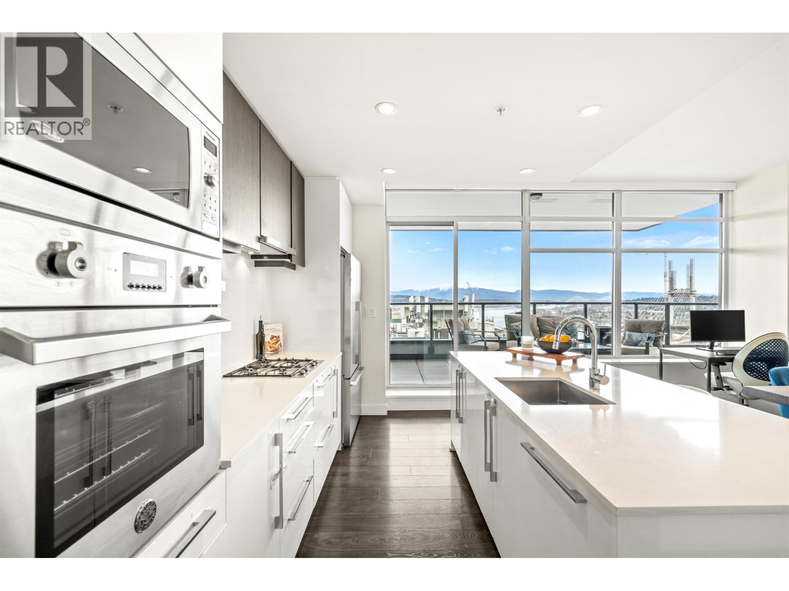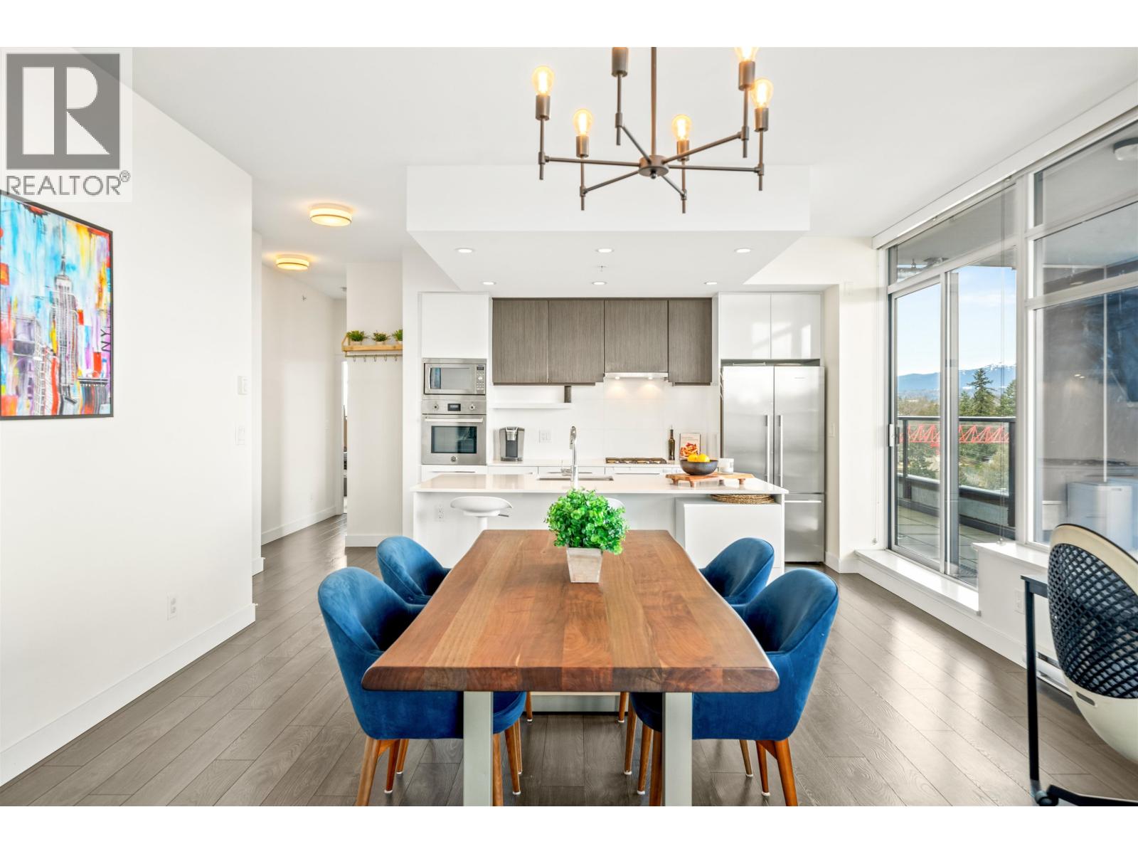 | Stunning sub-penthouse high above downtown New West, this corner unit at Elliot Street offers panoramic views from the North Shore mountains, to the Fraser River & Mt Baker. Huge wrap around semi-covered patio, great for entertaining, over 300sf, enjoy morning sunsets & north, east & south facing views! Open floor plan, 1,154sf of living space, with 2 bedrooms, 2 bathrooms, open-concept living/dining/kitchen area with 10´ ceilings, large kitchen with island, high-end European appliances, gas range, and modern cabinetry. Located on the east side of Downtown New West, backing onto Albert Crescent park, tucked away from city noise and a close walk to Columbia Skytrain, Restaurants, Shopping and Pier Park. Includes 1 parking & 1 storage. (id:5347) | |||