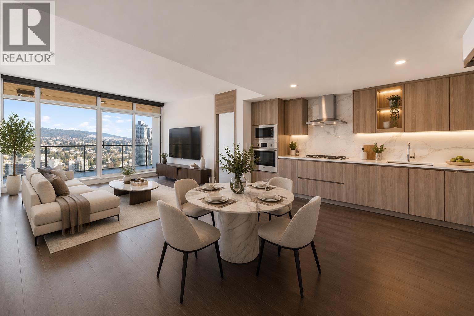 | Two bedrooms plus Den home located in Concord Brentwood Hillside East master-planned community by Concord Pacific in Burnaby. Breathtaking view of north shore mountains from the expansive balcony. Home features a functional layout with high-end stainless steel appliances, quartz countertops, laminate wood flooring, central A/C, and custom window coverings throughout. Completes with radiant ceiling heaters and porcelain tile flooring for year-round comfort. Resort-style amenities include 24/7 concierge, gym, yoga studio, entertainment and piano rooms, pet grooming room, and car wash. Just a short walk to Brentwood Town Station and Brentwood Shopping Center. Includes 1 EV ready parking and 1 bike locker. Must see! (id:5347) | |||