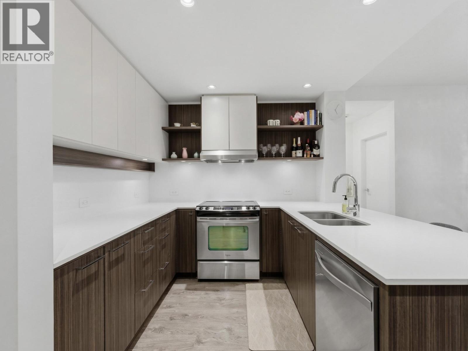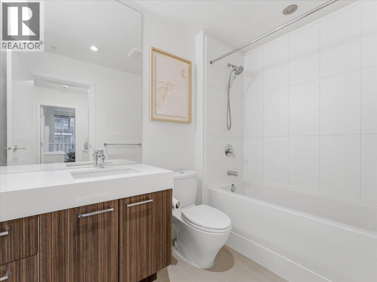 | Foster by Mosaic. Bright and open layout. Spacious 2 Bdrm and 2 Bath. 9' ceilings offer loads of natural light in this 2nd floor unit that looks out onto a quiet treed courtyard. Georgian-inspired exterior, modern living spaces & elegant materials. Large open living room and adjoining dining area with dedicated built-in works space, kitchen with stainless steel appliances, soft close drawers, bar stool seating & natural stone topped counters. Both of the bedrooms are located on either side of the unit apart from each other features large windows. Wheelchair accessible unit with switches located lower for ease off accessibility. One parking stall included. Walking distance to Skytrain station, Lougheed Mall & Burquitlam Plaza. Close to all type of amenities and shopping experience. (id:5347) | |||