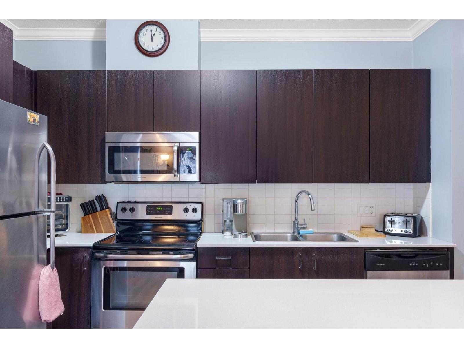 | This one bedroom plus den at The Serenade offers the flexibility of a two-bedroom style layout, with a well-sized den that can easily function as a second bedroom. With 955 square feet of interior space and a sunny south-facing balcony with park and mountain views, it's one of the largest floorplans in the building. The open living and dining area connects seamlessly to a polished kitchen with quartz counters, quality stainless appliances, and fresh updates including new flooring, paint, and carpet. Located next to Douglas Park and steps to Langley's best restaurants, cafés, shopping, and transit. A fitness centre and residents' clubhouse round out a home that works for real life. (id:5347) | |||