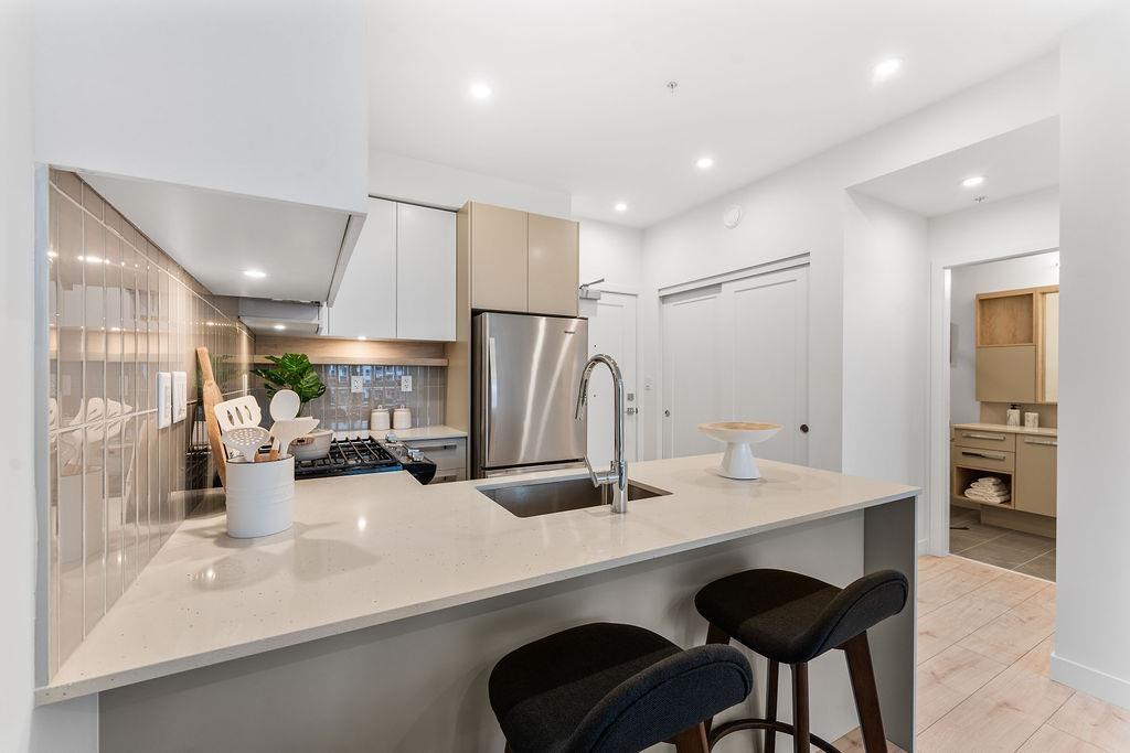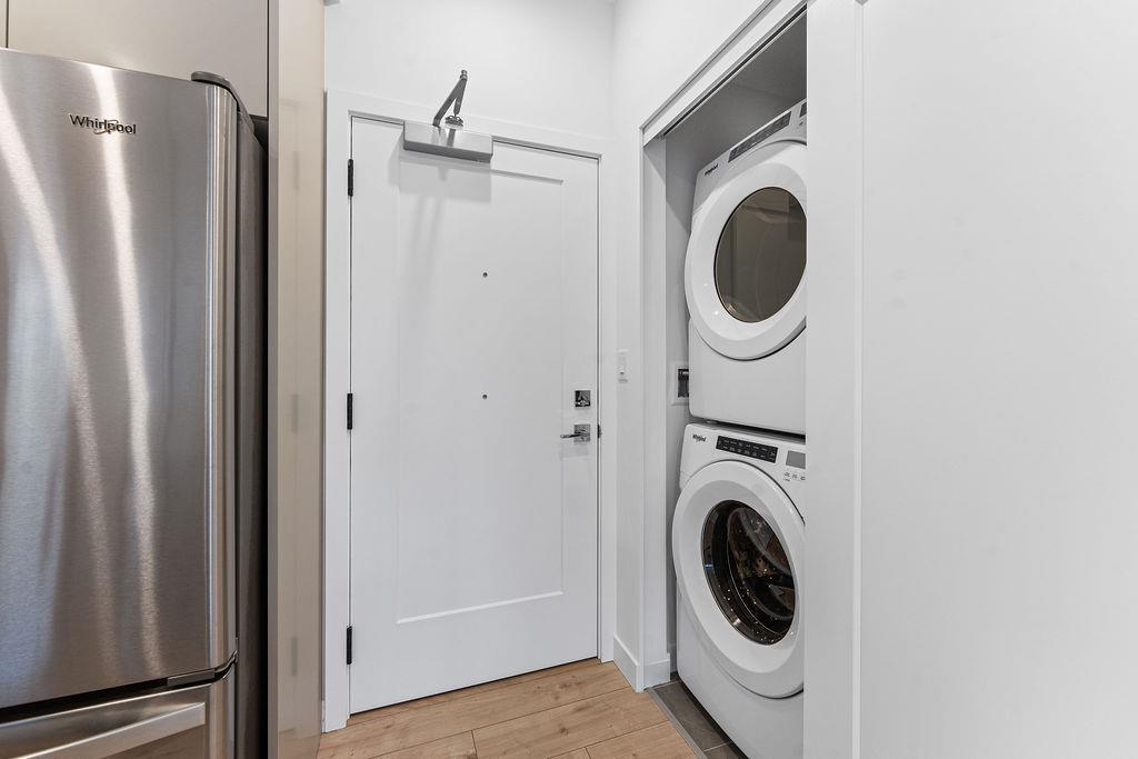 | Welcome to Silva, where everything you love is close to home. This brand new home is in an inviting new community of Surrey's most vibrant neighbourhood, East Newton. Featuring a beautiful design, thoughtful layout, 9' ceilings, durable laminate flooring, gas range, stainless steel appliances, as well as both Air Conditioning, AND a large enclosed solarium balcony (62sf) for year round enjoyment - that even has a gas bbq hookup! Enjoy your weekends playing some Bocce in the courtyard, working out in the expansive fitness center, or relaxing in the teahouse after walking the dog in the nearby park. We even have a dog wash for your furry friend! Surrounded by greenspace, this community is extremely walkable; close to transit, shopping, recreation, parks, schools, and so much more! (id:5347) | |||