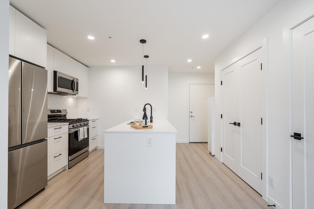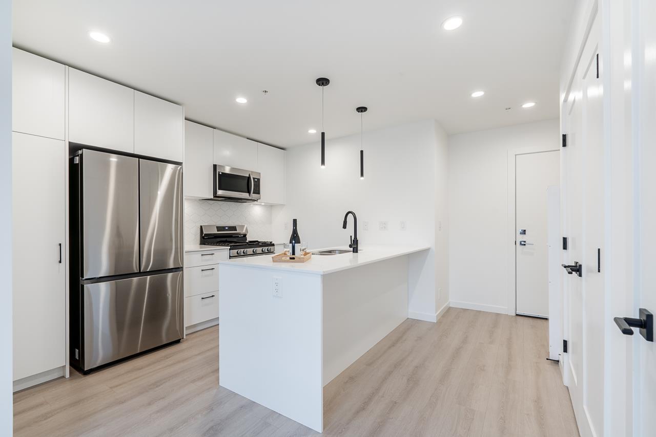 | Welcome to one of the most sought-after locations in vibrant Latimer Village, Willoughby! This rarely available home features 9' ceilings and an expansive 400+ sq ft wrap-around patio with desirable south-east exposure, perfect for outdoor dining, relaxing, and entertaining. The bright open-concept layout offers a contemporary kitchen with full-sized S/S appliances, gas cooktop, and a large island ideal for everyday living. Rare corner unit. Includes 1 parking stall and 1 storage locker. Prime central location close to Carvolth Exchange with easy access to Highway 1 and convenient commuting. Enjoy modern living, exceptional outdoor space, and unbeatable convenience. ***O.H April 25/26 (SAT & SUN) 2-4PM*** (id:5347) | |||