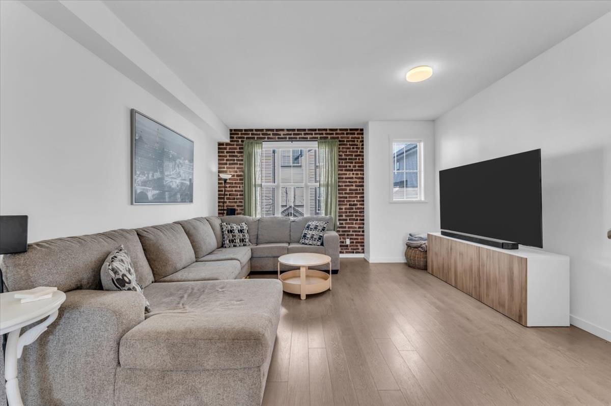 WELCOME HOME! This beautifully maintained 3 bed, 2 bath townhouse boasts over 1,364 sq. ft. of living space. The open-concept layout features a SPACIOUS living room w/ large windows, a dining area, & a modern kitchen w/ granite countertops and SS appliances. Enjoy modern convenience w/ smart light switches & smart thermostats, enhancing comfort & energy efficiency throughout the home. Relax in SPACIOUS bedrooms, including a private ensuite. The LARGE tandem garage + extra storage space. Filled w/ natural light, this home is PERFECT for hosting family & friends both indoors & outdoors in your walk-out, fully fenced private backyard w/ a GREENSPACE view! Located in a quiet, family-friendly community, you're just STEPS from shopping, schools & transit. WELL-MANAGED STRATA WITH LOW FEE'S ! (id:5347)