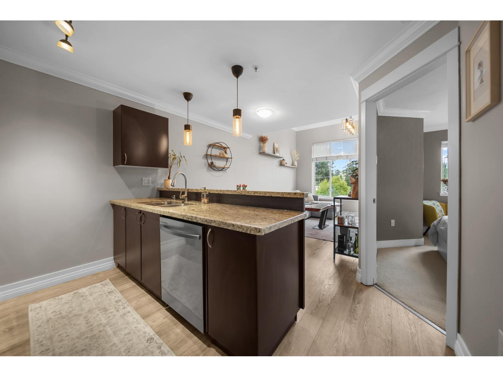 | TOP FLOOR living and just a short stroll to Historic Downtown Abbotsford! One bedroom plus den and move-in ready with fresh paint and in great condition. Situated nicely with Southern exposure and not overlooking other balconies! You will appreciate the vaulted living room ceiling, tasteful flooring, crown molding, electric fireplace and balcony. No problem with parking here as you have two dedicated parking stalls! Lots of visitor parking as well! Viva on Park is a well run stata welcoming your dog (some breed restrictions) or 2 cats! Great proximity to shops, grocieres, Recreation center (ARC), freeway access and more. (id:5347) | |||