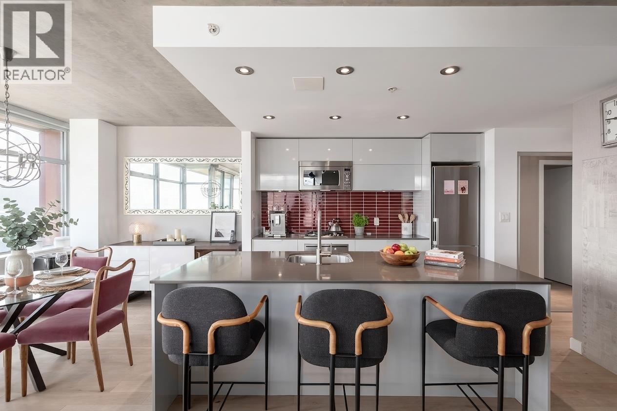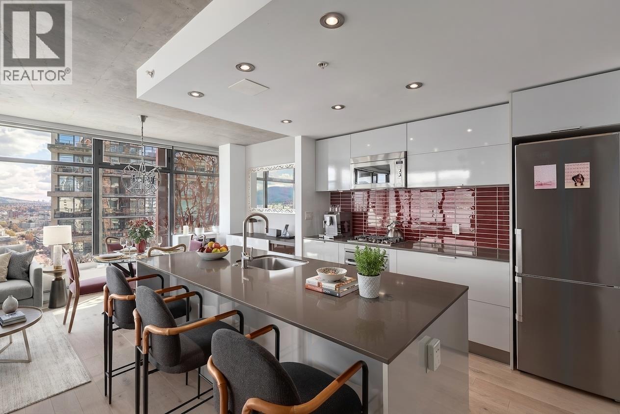 | Experience elevated urban living in this bright northeast CORNER 2 bed, 2 bath residence at the iconic Woodwards. Flooded with natural light and showcasing stunning water, mountain and North Shore views, this thoughtfully updated home features new flooring, modern lighting, and refreshed countertops throughout. Both bedrooms offer excellent separation and include custom closet organizers for optimal storage.The open-concept layout is perfect for entertaining, while the well-appointed kitchen flows seamlessly into the living and dining areas. Enjoy the convenience of 2 TANDEM PARKING stalls. Residents have access to world-class amenities including a 24/7 concierge, fully equipped fitness centre, and a stunning rooftop terrace complete with hot tub and panoramic views.Located in the heart of Gastown, steps to some of the city´s best dining, shopping, and transit this is downtown living at its finest. Air Bnb friendly, making it a perfect opportunity to get this unit just in time for the World Cup! (id:5347) | |||