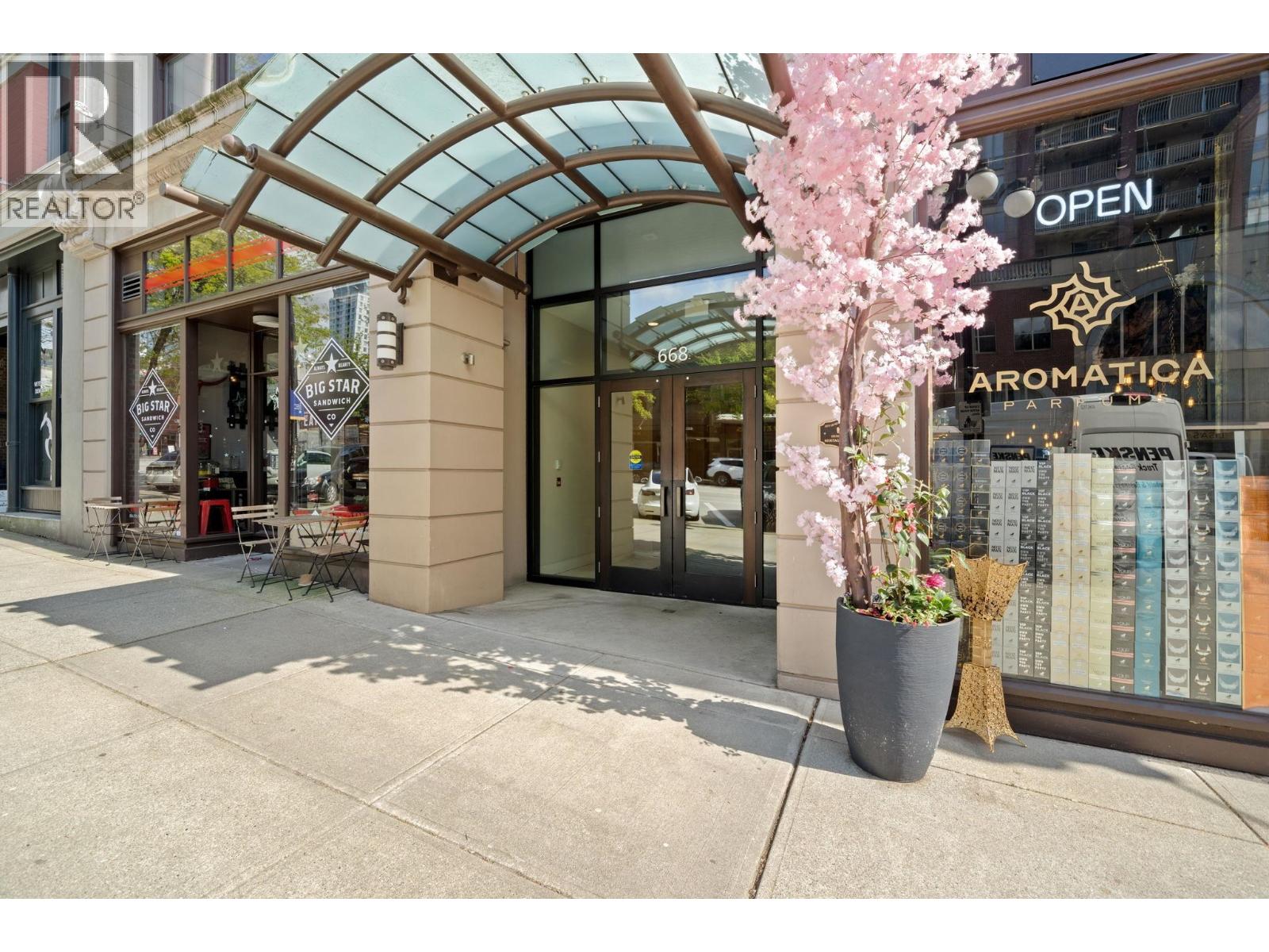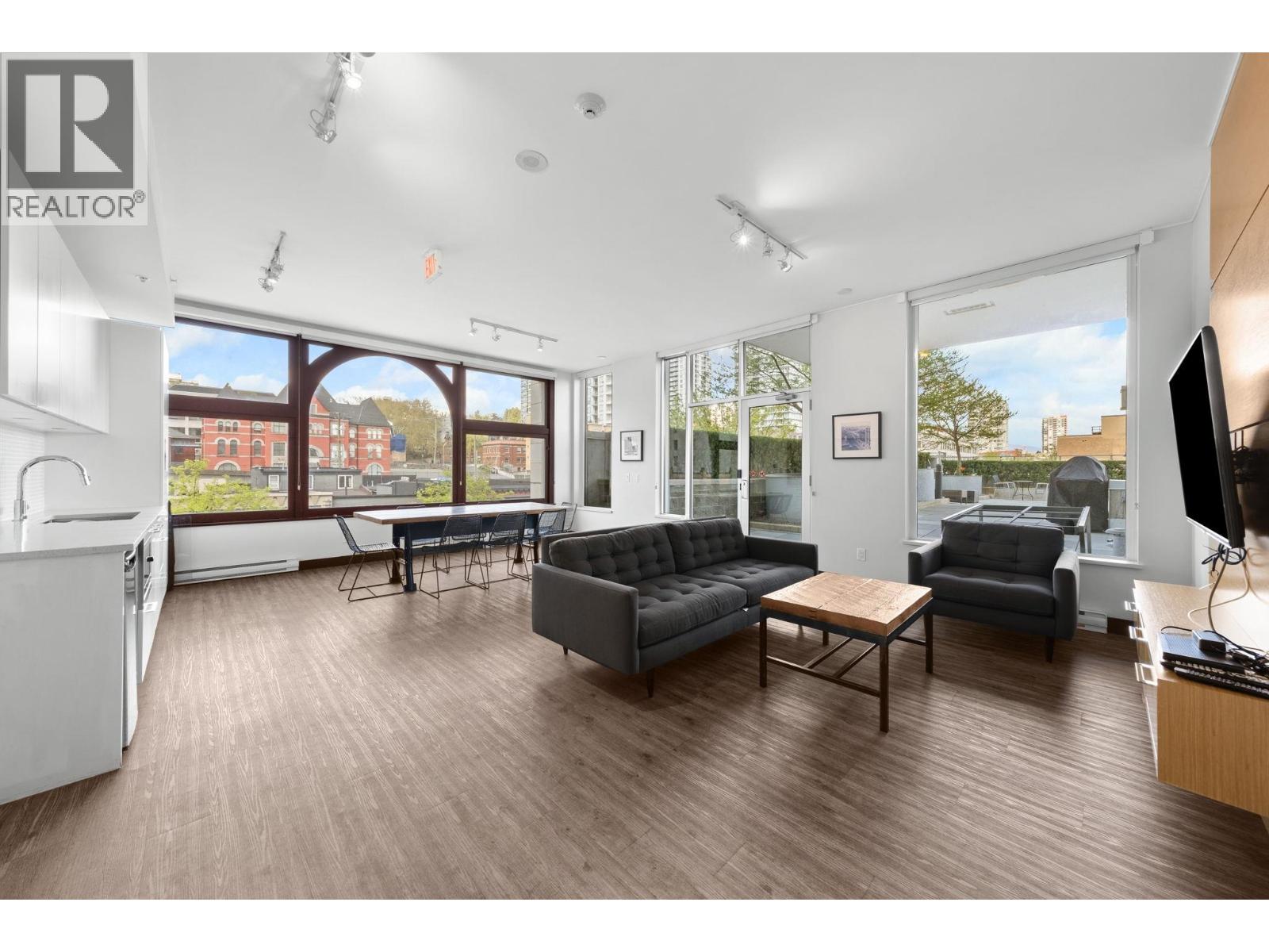 | Welcome to Trapp + Holbrook. LARGE 1 Bedroom floorplan with WATER & CITY VIEWS, in the heart of Downtown New Westminster - steps from the Quay! Featuring 10 FOOT CEILINGS. Modern Features include: NEW flooring, quartz countertops, glass tile backsplash, built-in appliances & in-suite laundry. Steps away from Coffee Shops, Restaurants and the Columbia SKYTRAIN station. MASSIVE 111 sq.ft BALCONY perfect for coffee in the morning and entertainment at night. Comes with 1 Parking, 1 Storage and access to several amenities - gym, party room and garden deck. Perfect for first-time homebuyers and investors. OPEN HOUSE: Apr 26 - 2-3PM. (id:5347) | |||
