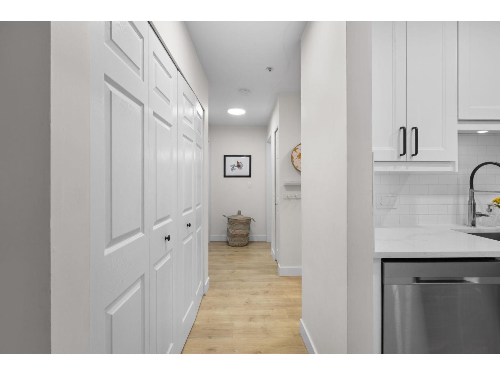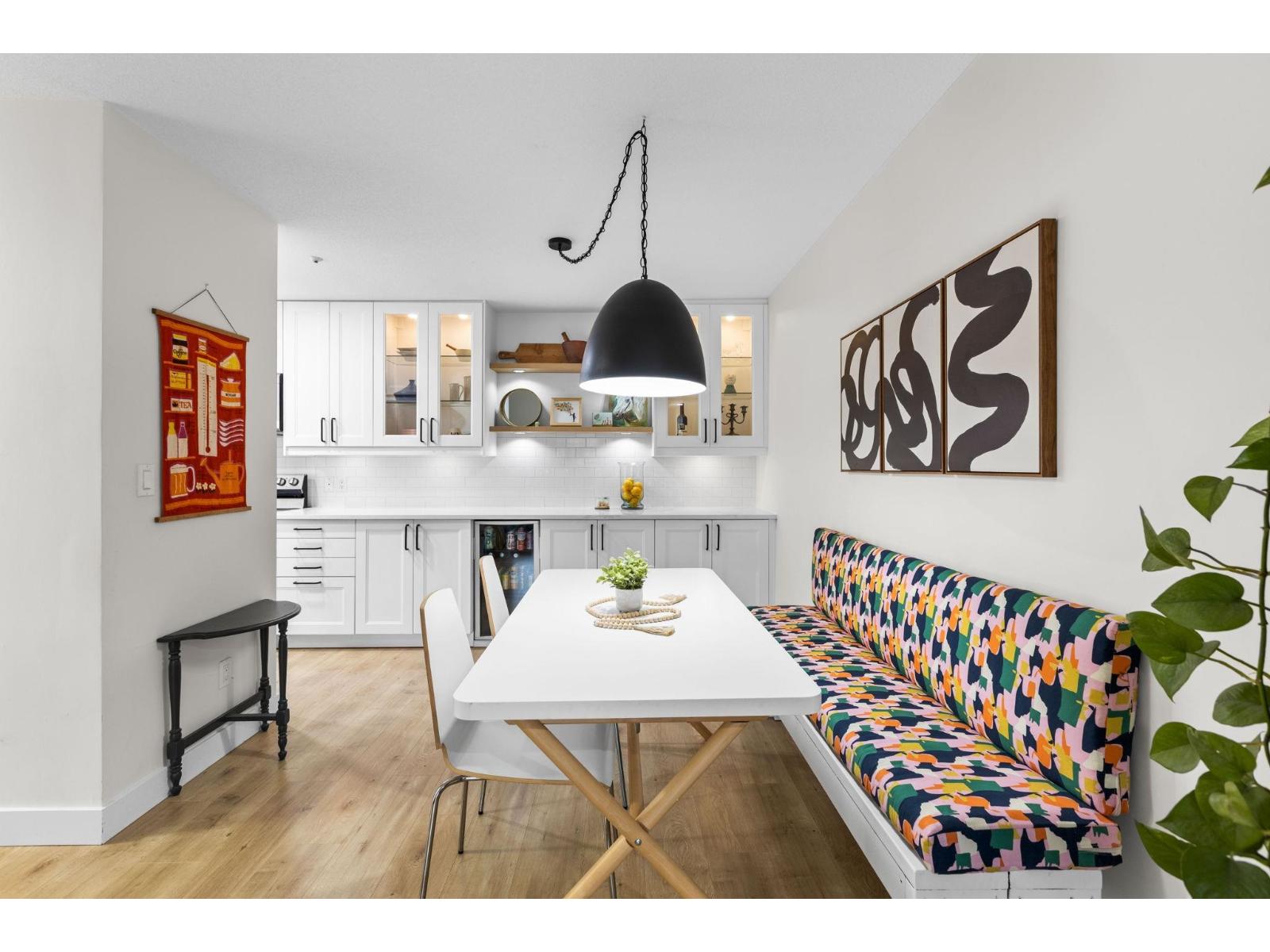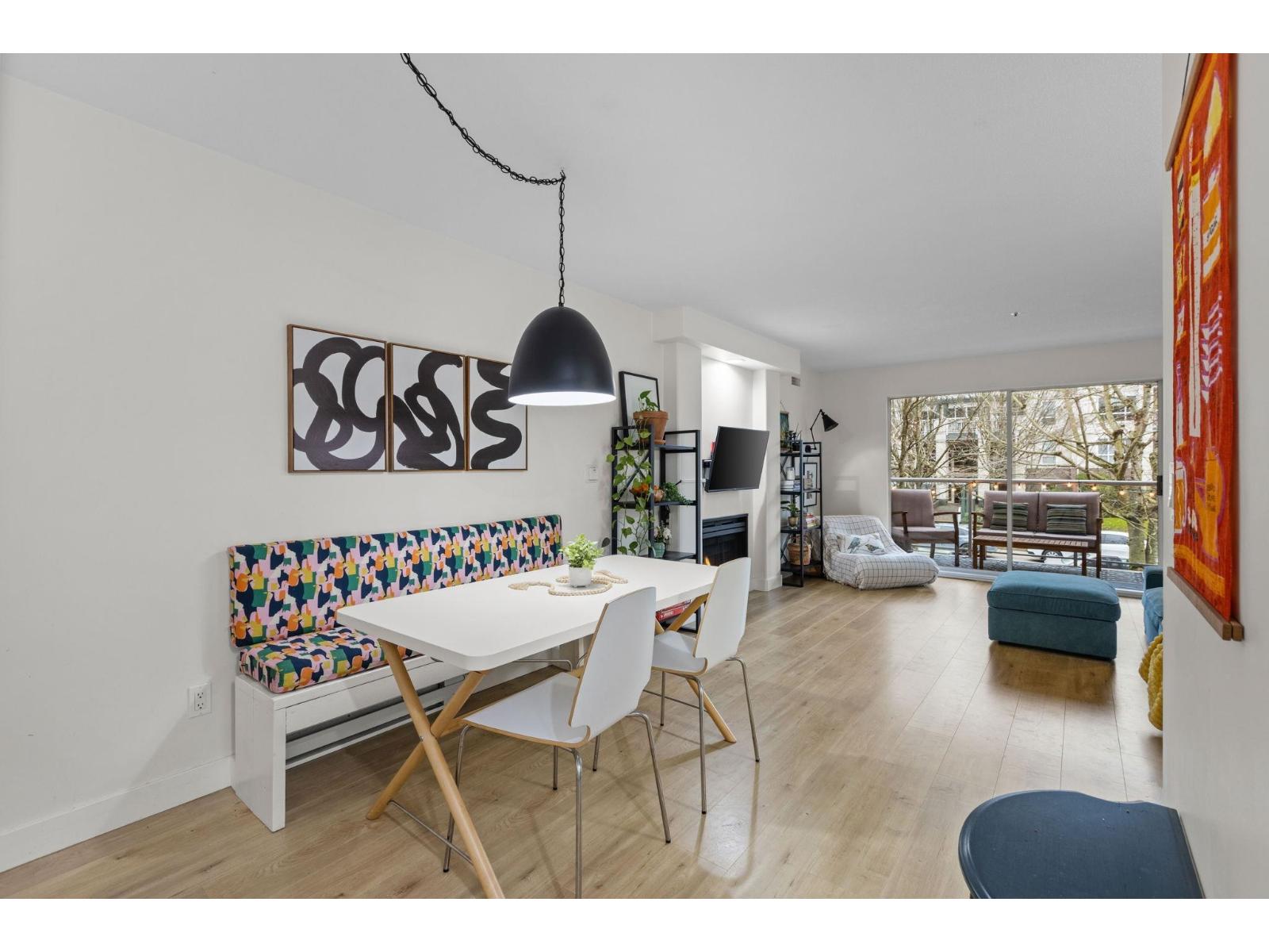 | Step inside and fall in love. This bright 2 bed, 2 bath corner suite has been thoughtfully upgraded. The kitchen shines with expansive quartz counters, a custom coffee bar with floating shelves and bar fridge, sleek white shaker cabinets with soft close doors and under mount lighting, plus stainless appliances including a 4 door fridge. Oak laminate flooring and custom lighting carries through the home for a warm, elevated feel. The open living and dining space is perfect for relaxing by the gas fireplace or stepping onto your sunny south facing balcony. Enjoy views of mature trees from every room. Both bathrooms feature quartz counters and deep soaker tubs. Full size laundry adds convenience. Seller is willing to offer a credit for 6 months of strata fees. (id:5347) | |||