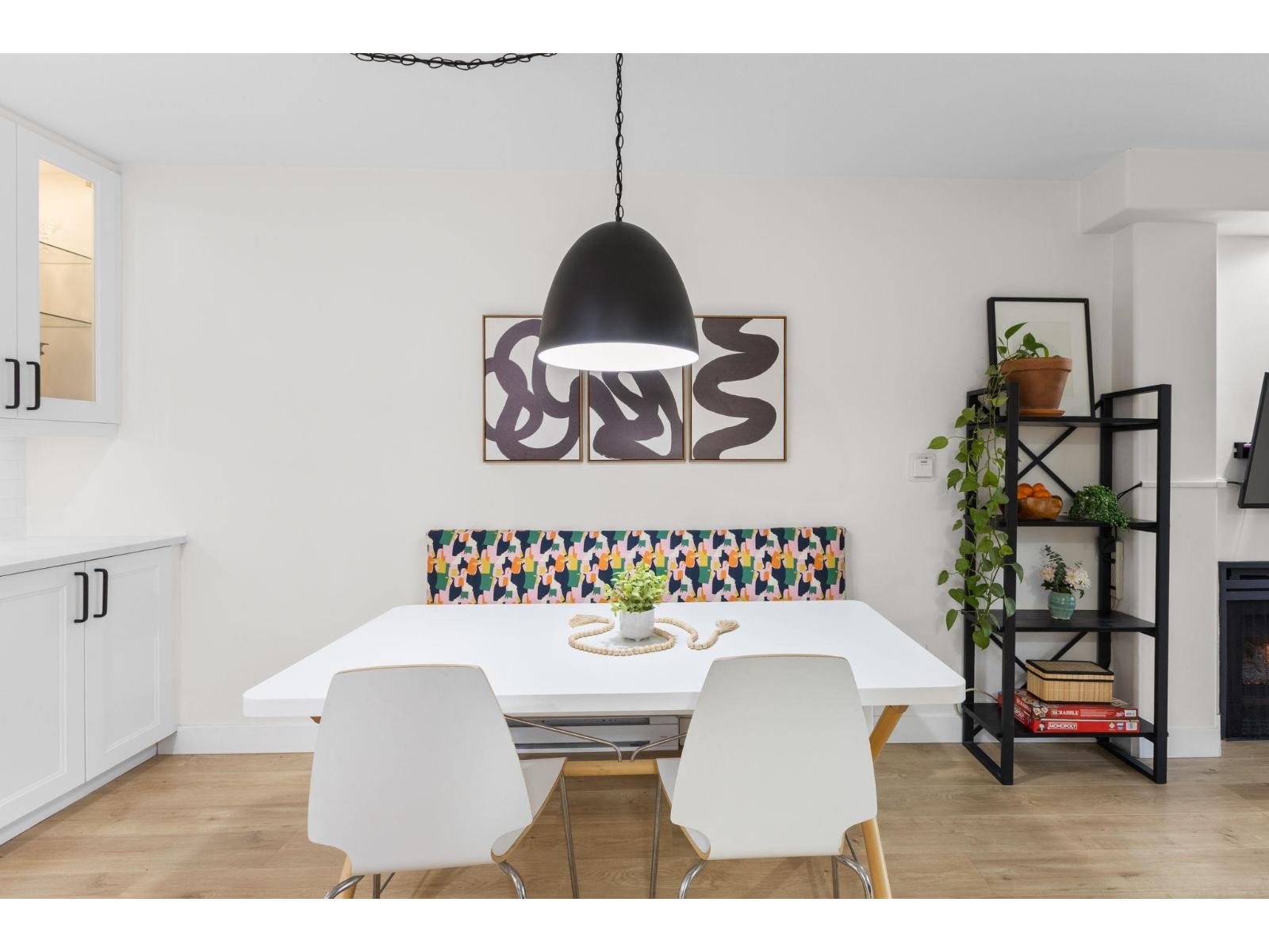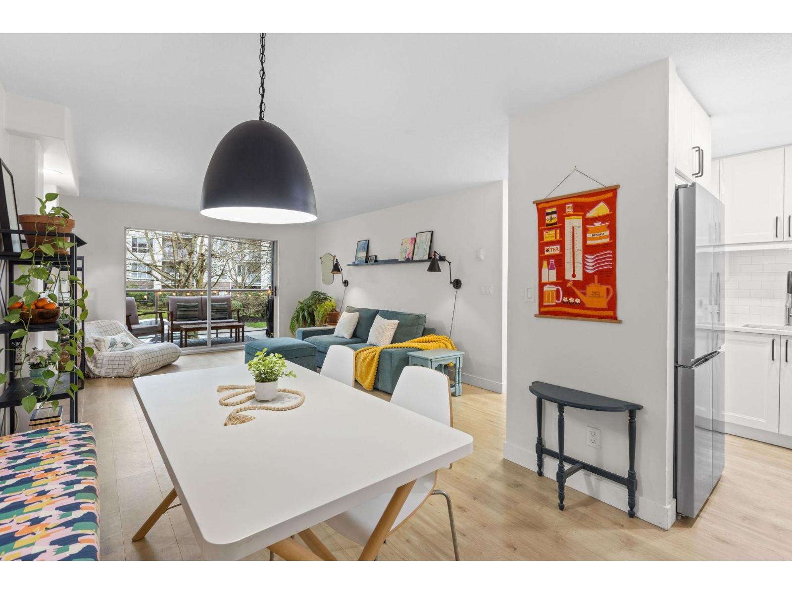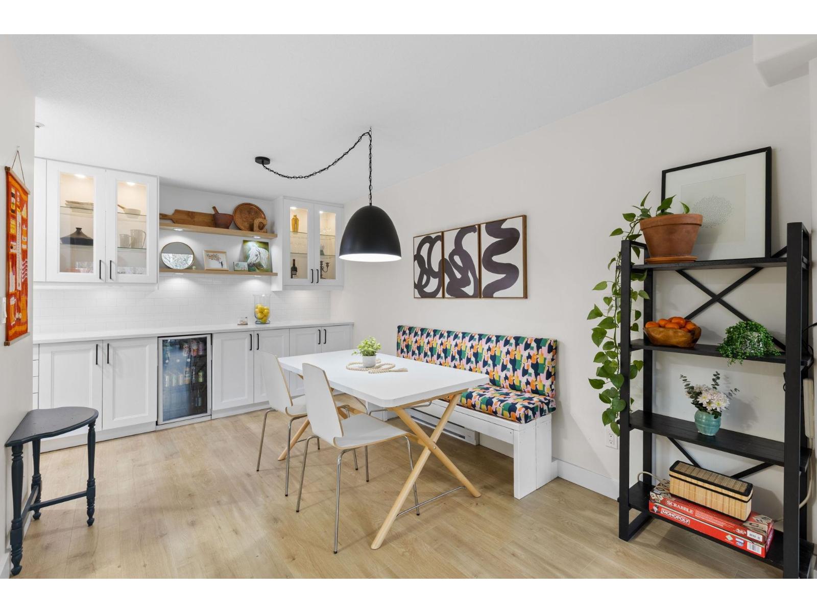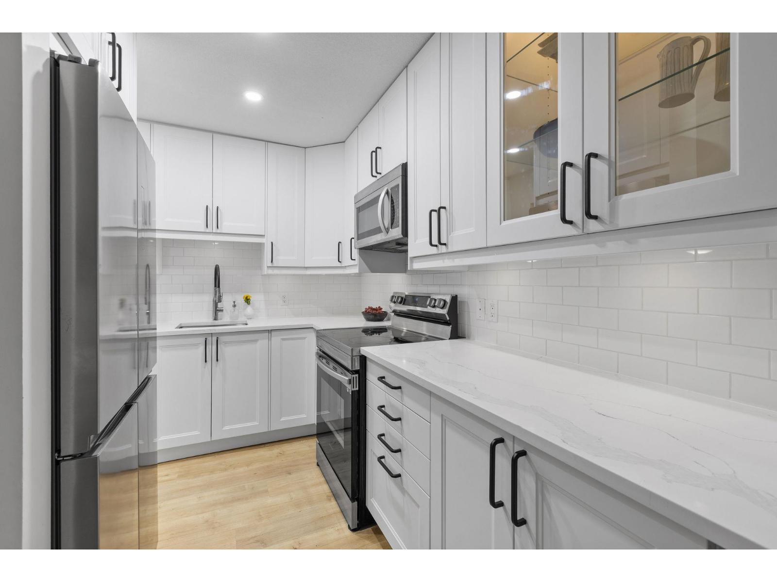 | Step inside and fall in love. This bright 2 bed, 2 bath corner suite has been thoughtfully upgraded. The kitchen shines with expansive quartz counters, a custom coffee bar with floating shelves and bar fridge, sleek white shaker cabinets with soft close doors and under mount lighting, plus stainless appliances including a 4 door fridge. Oak laminate flooring and custom lighting carries through the home for a warm, elevated feel. The open living and dining space is perfect for relaxing by the gas fireplace or stepping onto your sunny south facing balcony. Enjoy views of mature trees from every room. Both bathrooms feature quartz counters and deep soaker tubs. Full size laundry adds convenience. Seller is willing to offer a credit for 6 months of strata fees. (id:5347) | |||