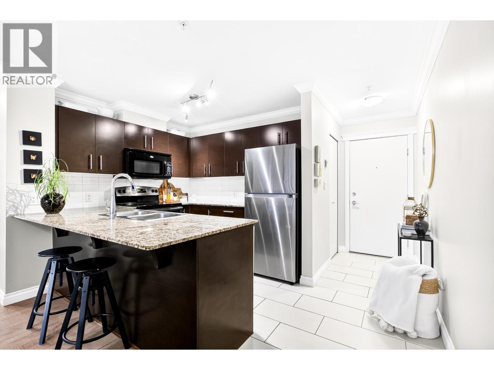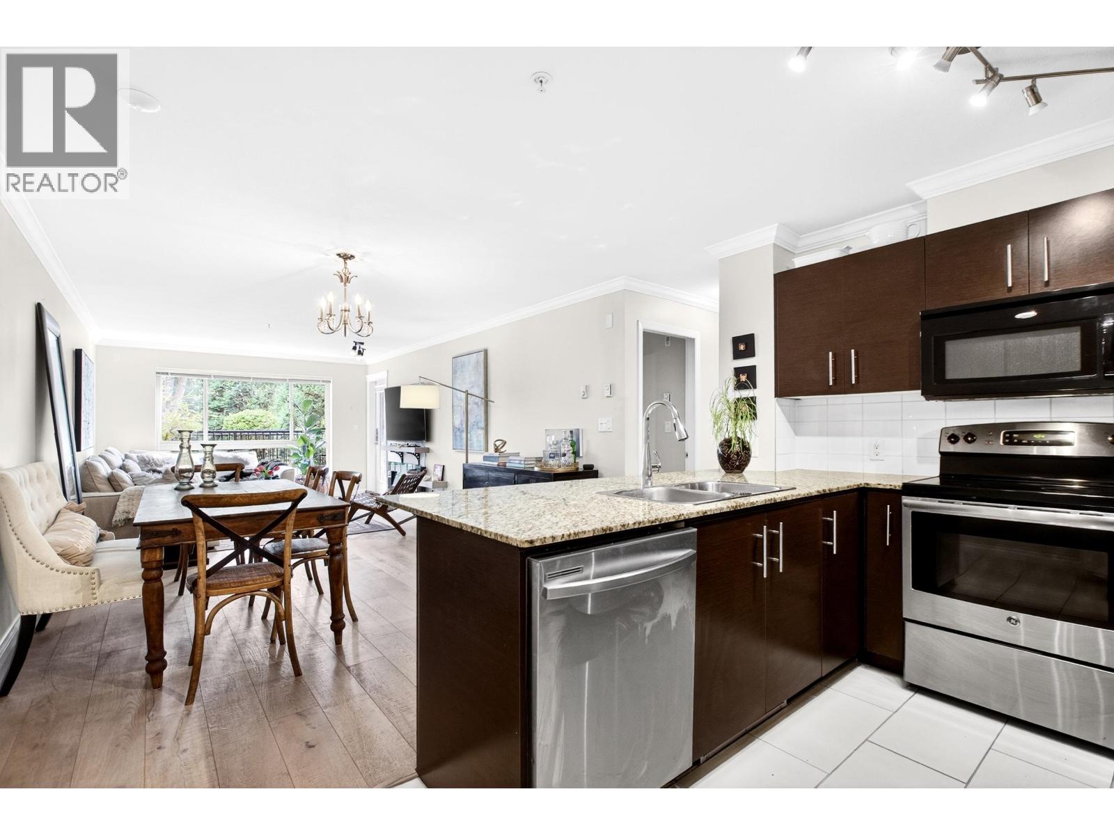 | Bright and spacious 1,279 square ft 3 BEDROOM plus DEN, 2 bathroom apartment overlooking peaceful green space & park. Also featuring a quiet, private patio perfect for relaxing. The open-concept kitchen, dining, and living area is filled with natural light, offering great wall space for artwork and a warm, inviting atmosphere. Enjoy beautiful wide plank engineer hardwood flooring, fresh paint, stainless steel appliances in kitchen, & cozy carpet in all bedrooms. Comes with 2 parking spots. The building also has a nice gym. Great for someone who wants a spacious apartment or a young family's first home. This rare layout offers both functionality and comfort, ideally located within walking distance to shopping, parks, and the West Coast Express. (id:5347) | |||
