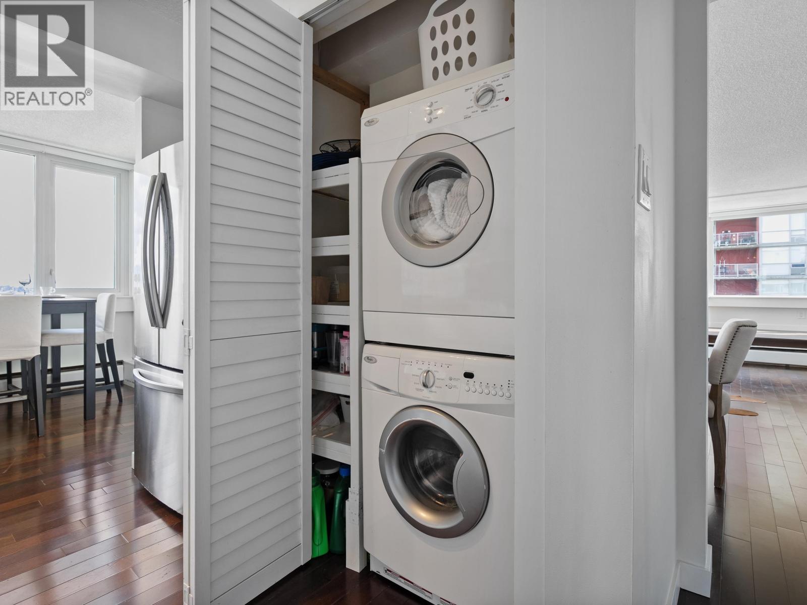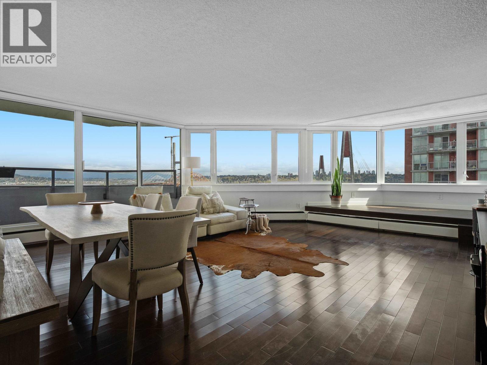 | Spacious penthouse living with stunning 180-degree views in downtown New West! One of only 3 top floor units offering panoramic water, mountain and city views with sought-after southwest exposure. Updated home features two balconies, engineered hardwood floors, upgraded stainless steel appliances and in-suite laundry. Spacious primary bedroom offers two large closets, while the second bedroom functions perfectly as a home office or guest room. Heat and hot water included in strata fees. Well-managed strata with major updates (2002-2026) such as: windows, balconies, roof, repiping, parking membrane and common areas. Steps to shops, parks, the Quay, schools, Yorkville University, and SkyTrain. Move in as-is, or bring your decorating ideas. (id:5347) | |||