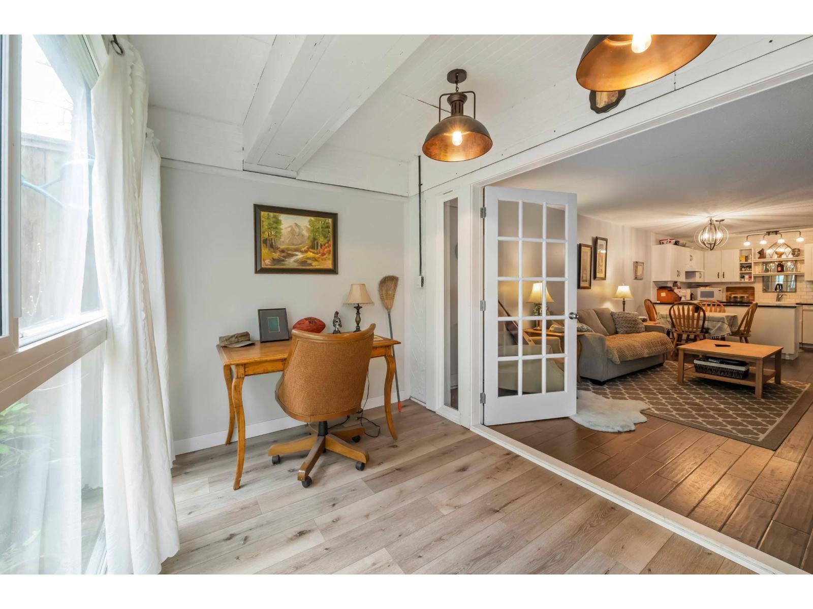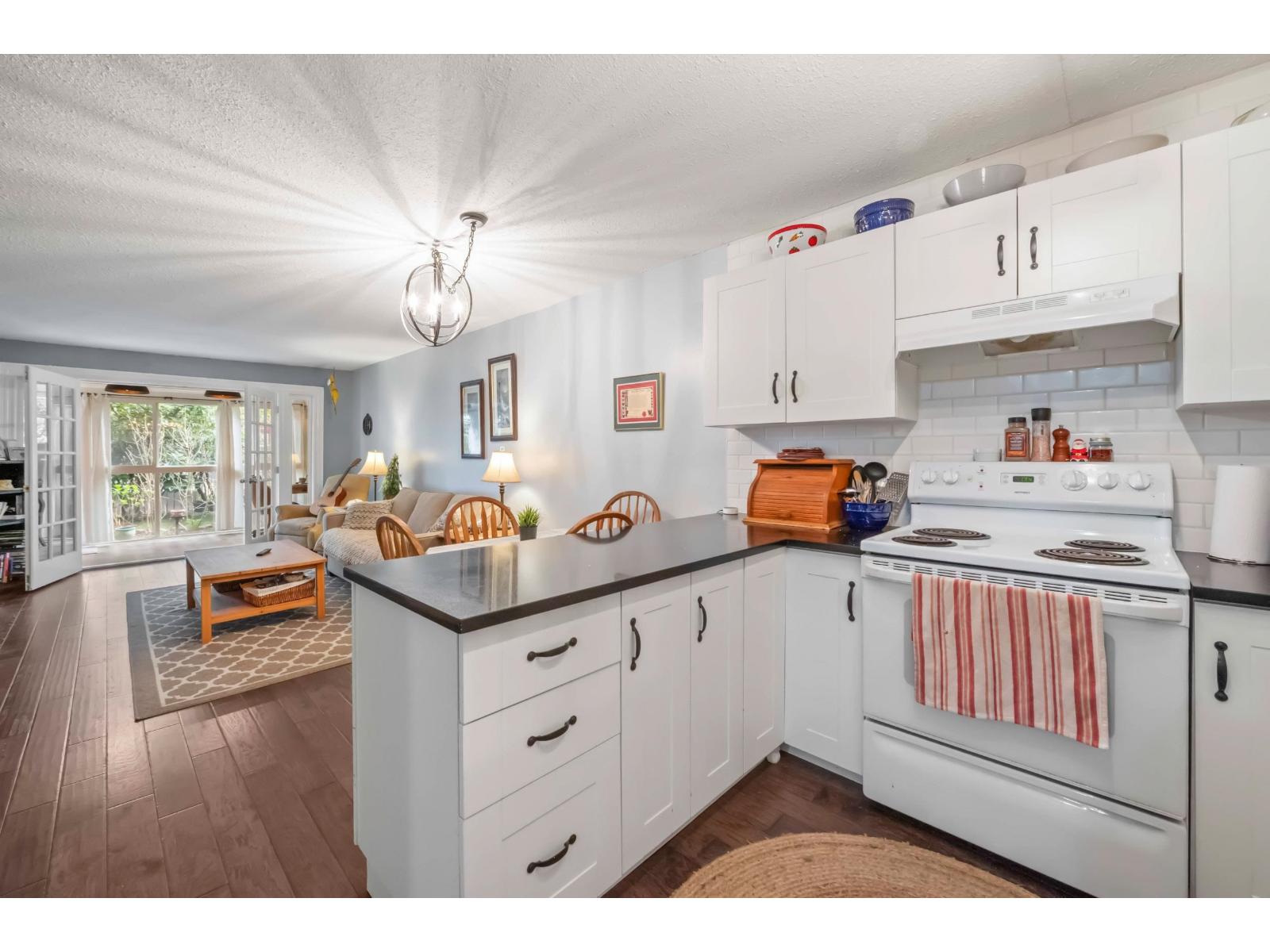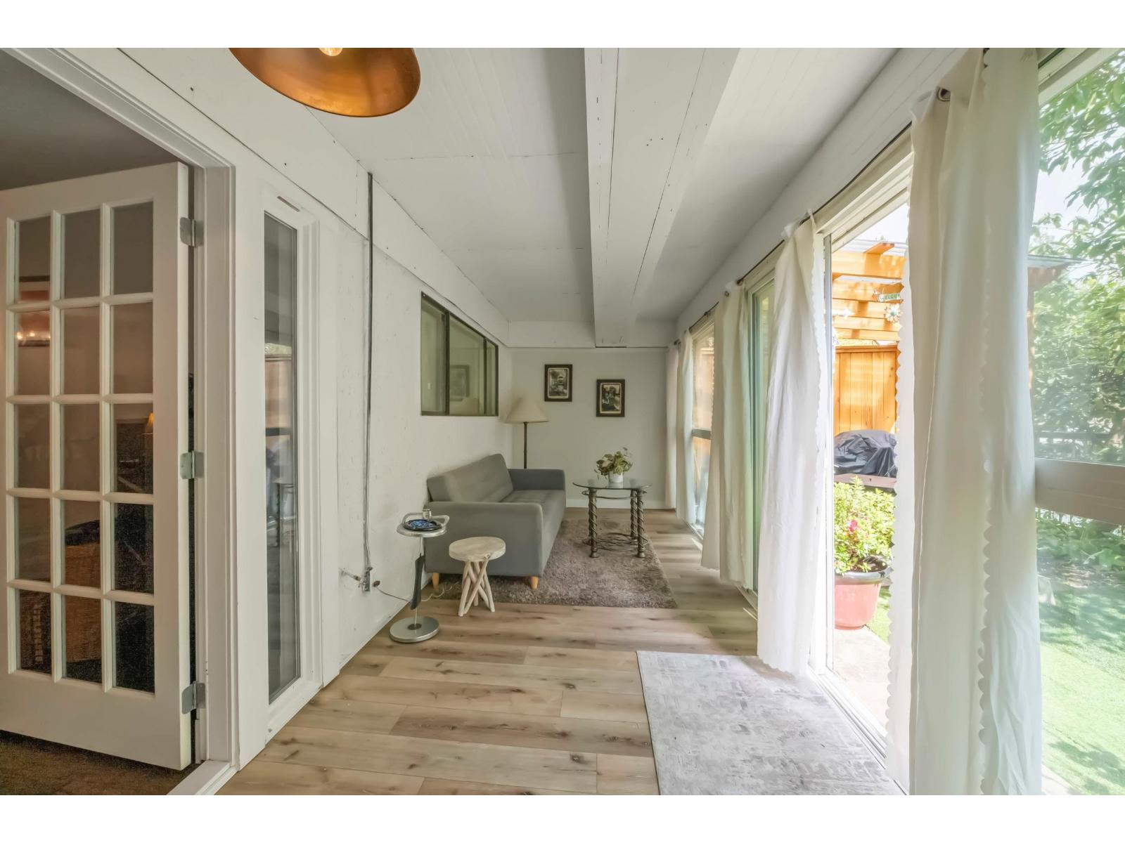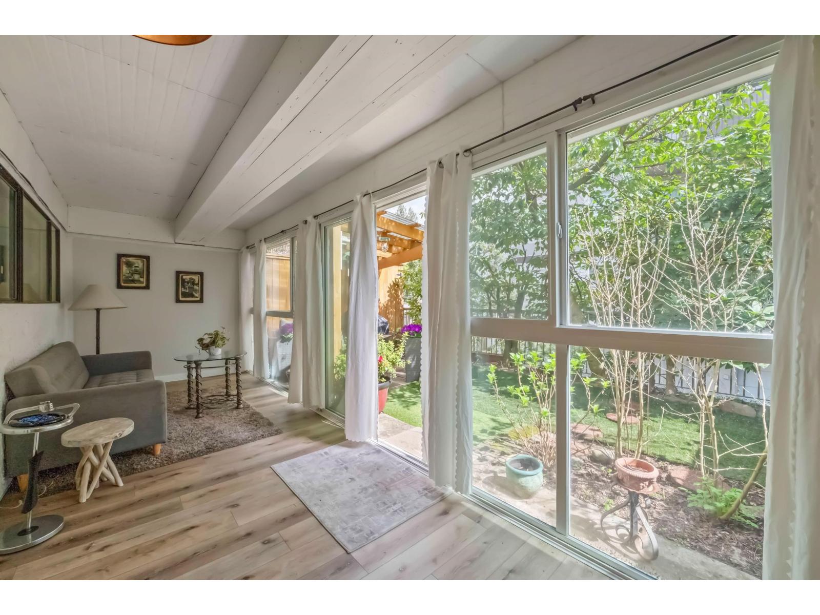 | lThis centrally located one bedroom garden home with huge flex-room facing the garden is unique with its fully fenced private yard. Elevated above ground level, keeping it nice and bright. Ideal for BBQ'S and entertaining with the wooden pergola patio cover... enjoy the outdoors throughout the year! Updated kitchen and bathroom makes this pretty much move in ready! In-suite laundry! Hot water included! This 55+ building is well cared for and a really nice community. One parking stall and storage locker. Close to transit, shopping and recreation. Pet friendly! (id:5347) | |||
