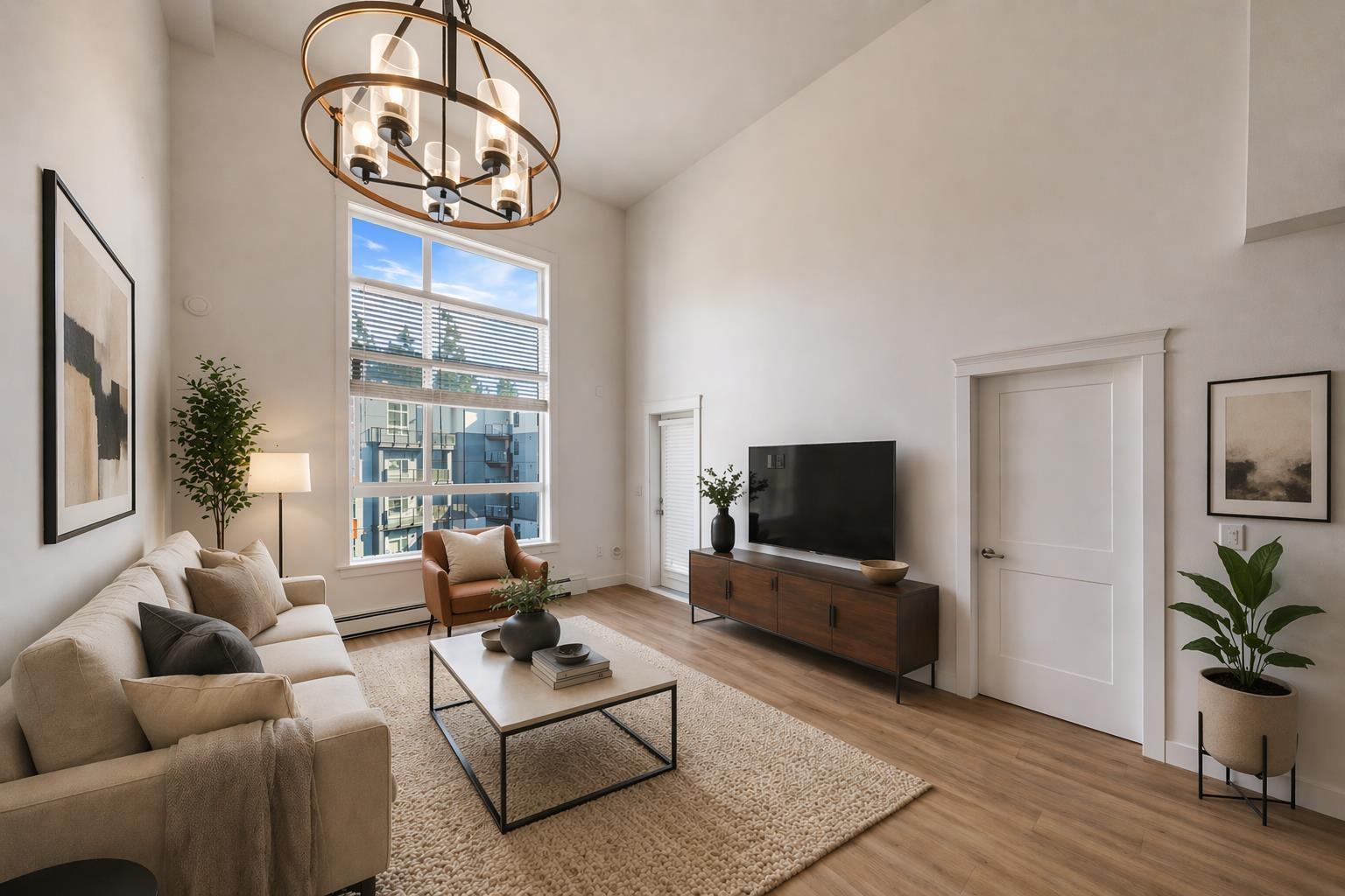 | Welcome to Ledgeview by Quadra Homes, a stunning sub-penthouse unit in Surrey's vibrant downtown. This bright 2-bed, 2-bath home features 15ft ceilings living-room, oversized windows. The gourmet kitchen offers stainless steel appliances, a 5-burner gas range, dual-fuel oven, quartz countertops, and white shaker cabinets. Enjoy upgrades like heated bathroom floors, crown moulding, and A/C rough-in. Relax on your private patio with gas BBQ hookup. Amenities include a 5,000 sq. ft. gym, meeting space, and rooftop lounge with garden and playground. Steps to Gateway SkyTrain, SFU, and shopping. Strata includes hot water and gas. Book your showing today before it's too late! Open House Sunday Apr 26, 1-4pm. (id:5347) | |||