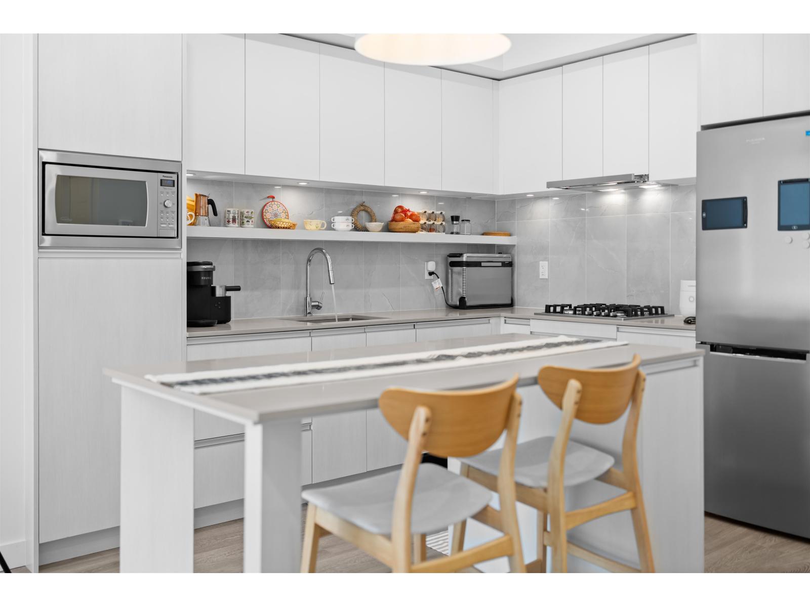 | 2 BED | 2 BATH | 273 SQFT WALKOUT PATIO. Modern living meets outdoor freedom at UNISON. The oversized walkout patio offers seamless street access, perfect for pet owners and effortless grocery unloading without the wait for elevators. The interior boasts a gourmet kitchen with gas appliances and a patio gas hookup, both included in strata fees. The home includes 2 parking stalls, a locker, and access to a large bike room. Building amenities feature a dedicated coworking office and a very spacious party room with a full kitchen. You are minutes from Surrey Central transit and Guildford Town Centre's premier shopping and dining. Experience townhome-style convenience with condo affordability in a prime North Surrey hub. (id:5347) | |||