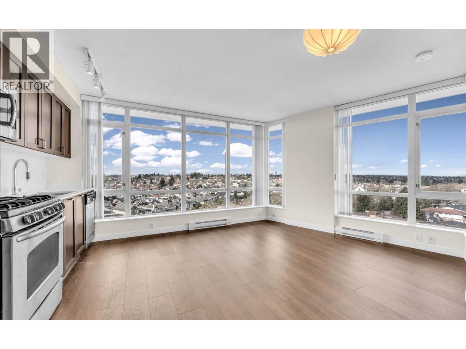 | Move-in ready 1 Bed + 1 Bath corner unit with stunning North Shore Mountain & sunset views! This well-maintained home features a bright northwest exposure & floor-to-ceiling windows that fill the space with natural light. Well-maintained-Recent upgrades included new flooring & fresh paint throughout. The kitchen is equipped with quartz countertops & stainless steel appliances, including new fridge. Enjoy built-in storage in bedroom & direct balcony access. Includes in-suite laundry, parking & storage. Building features fully-equipped gym & on-site building manager. Pets welcome. Exceptionally convenient location, steps away from T&T, Shoppers, countless dining options & transit! (id:5347) | |||